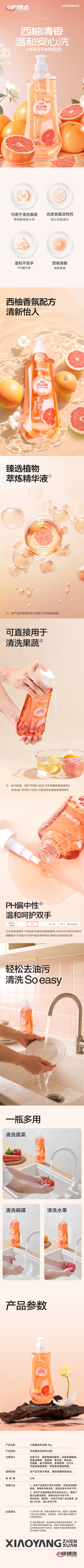 【小杨臻选】西柚清香高效去油污中性洗洁精1kg*2瓶