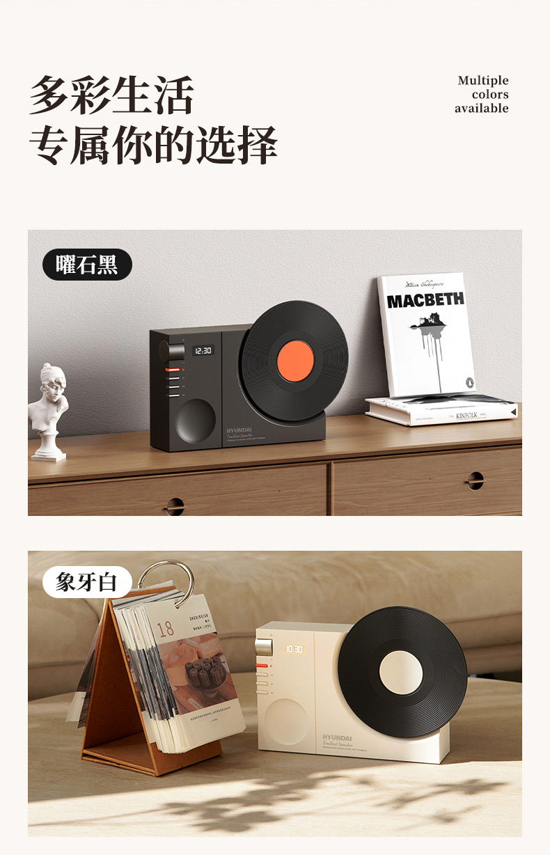 韩国现代(HYUNDAI) 时光黑胶唱片时钟蓝牙音箱 YH-F170
