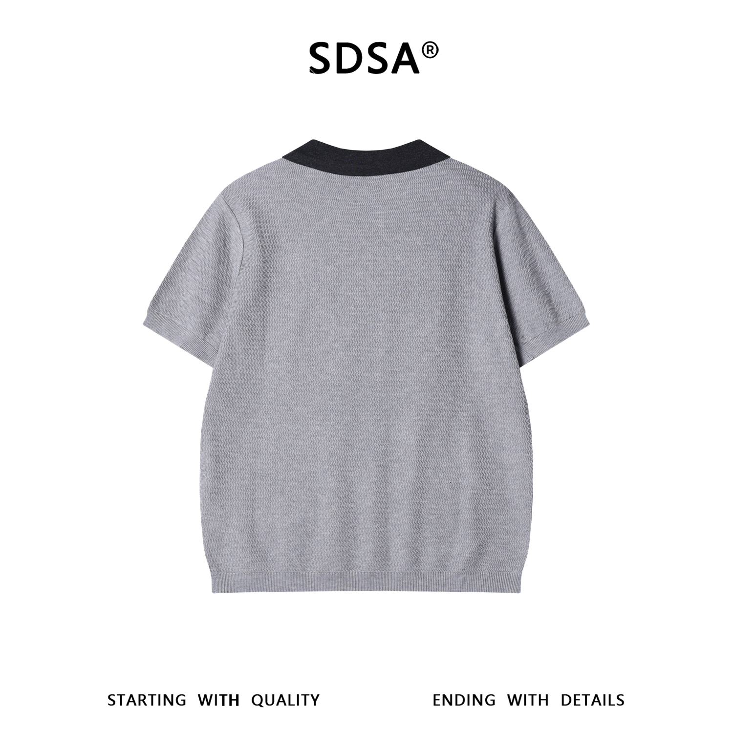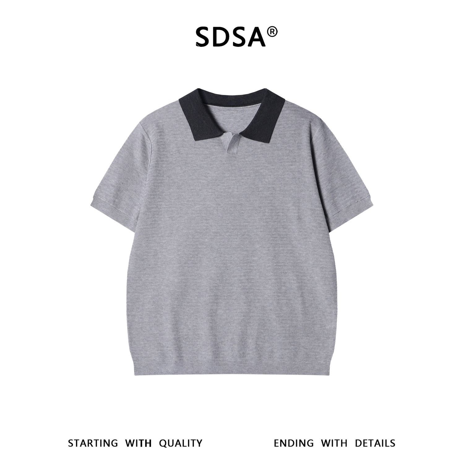 262537SDSA男装2026新款高贵轻奢老钱风撞色翻领短袖tT恤百搭时尚上衣
