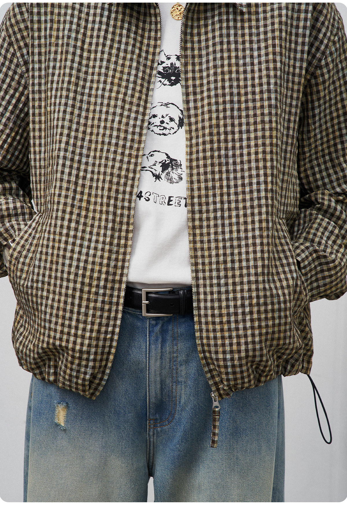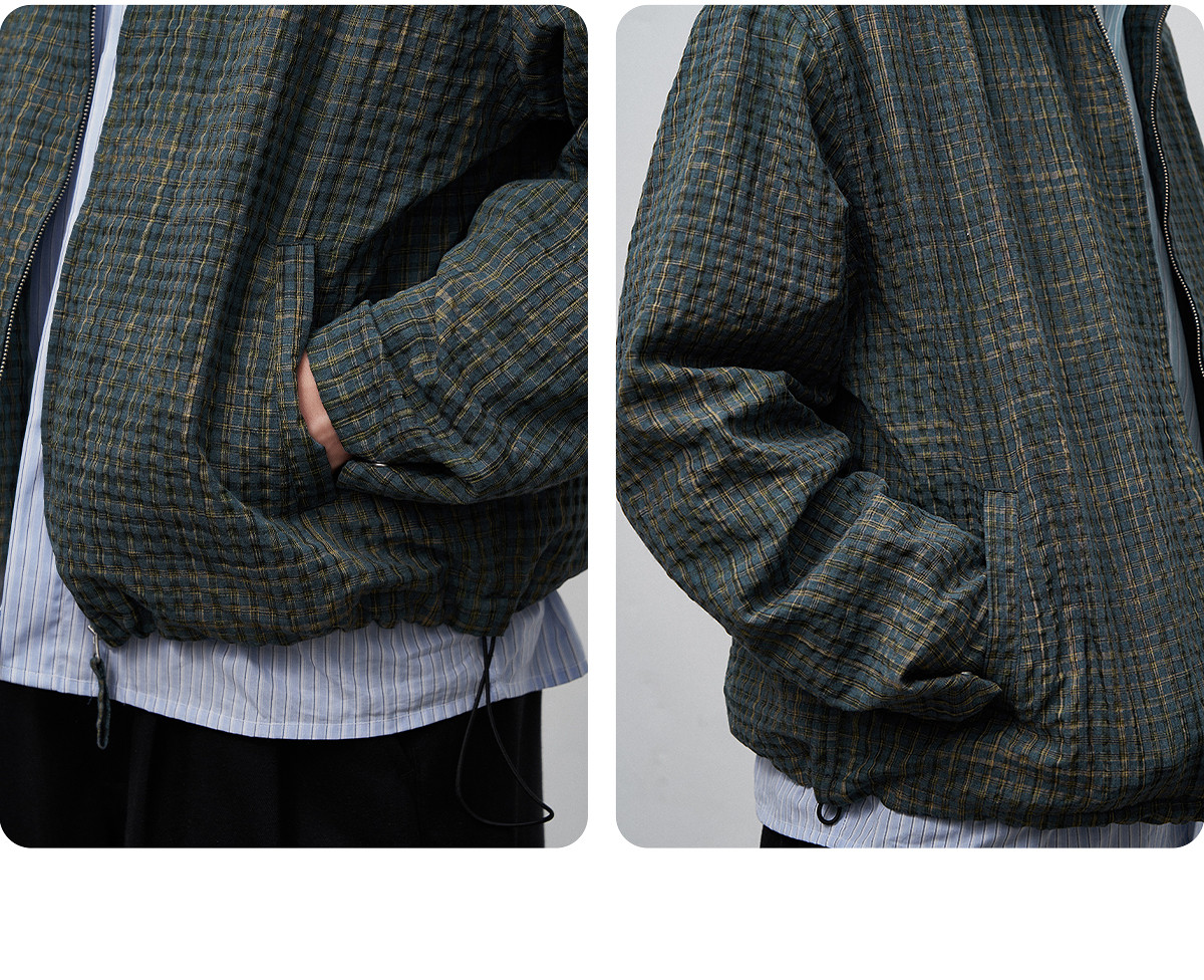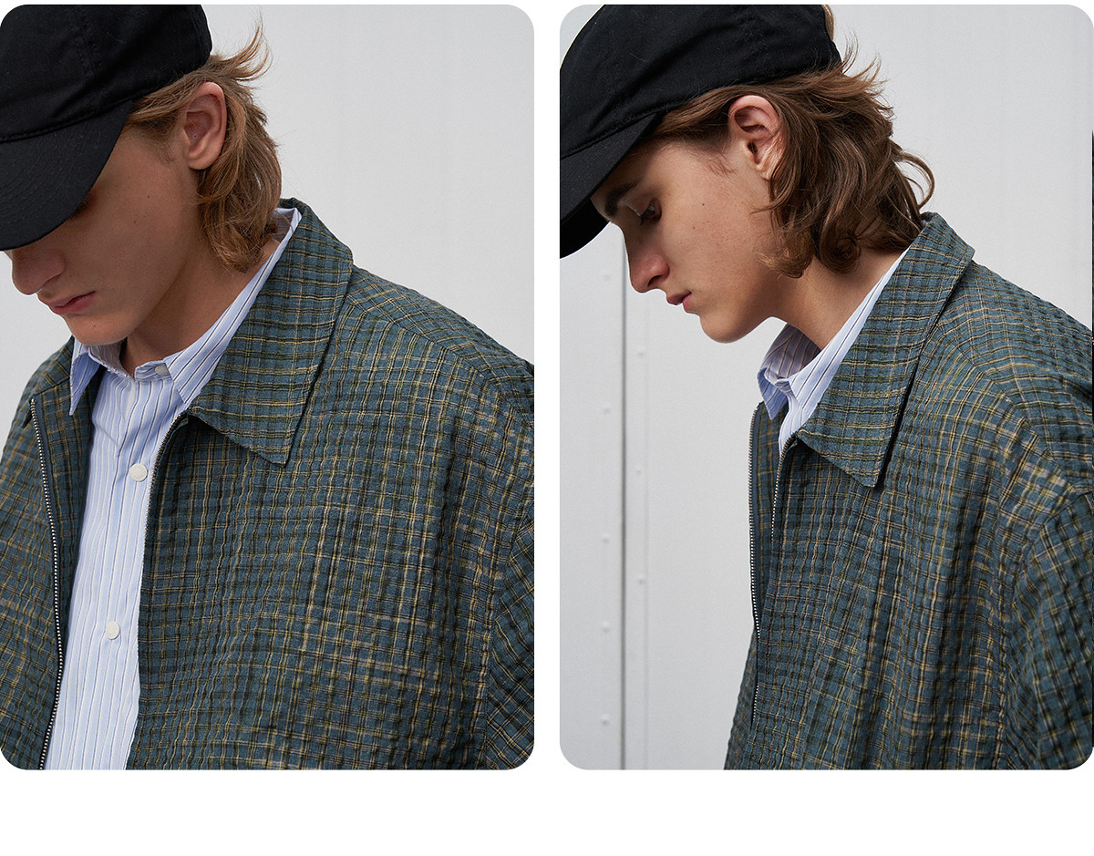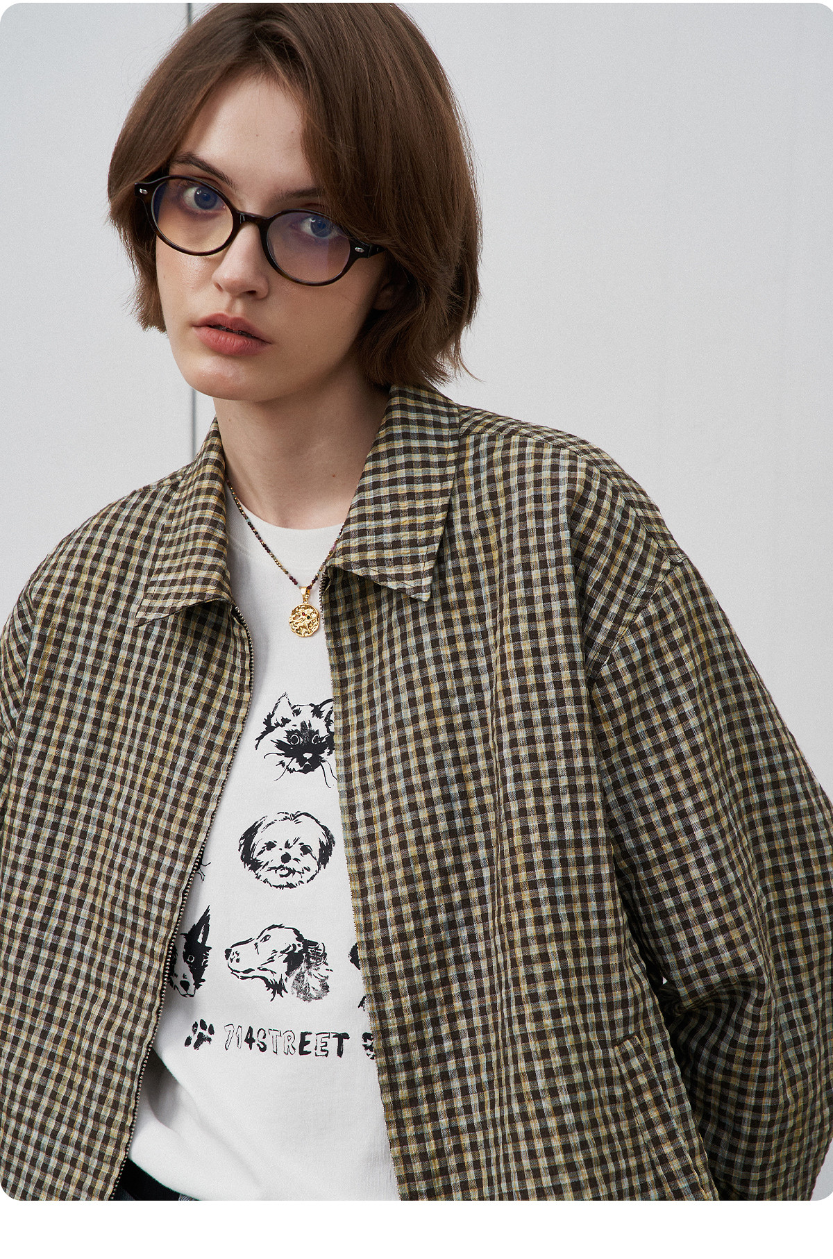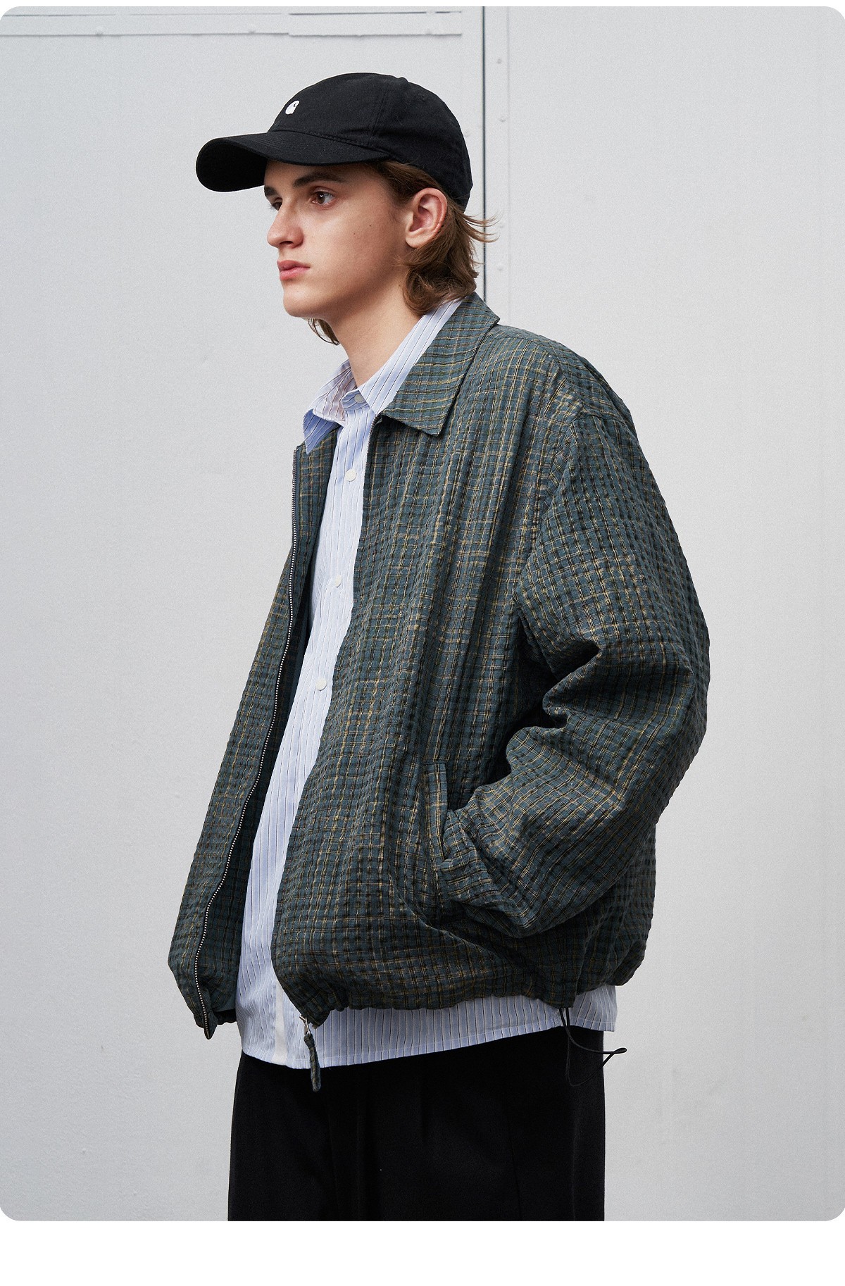 714street美式复古微皱泡泡纱格子翻领夹克男25春款宽松轻薄外套