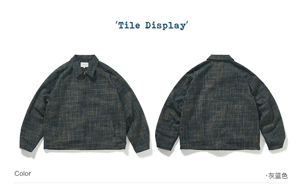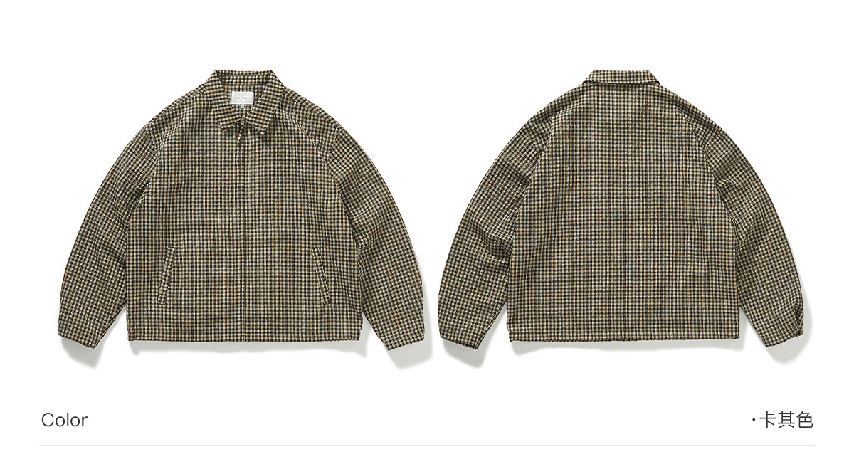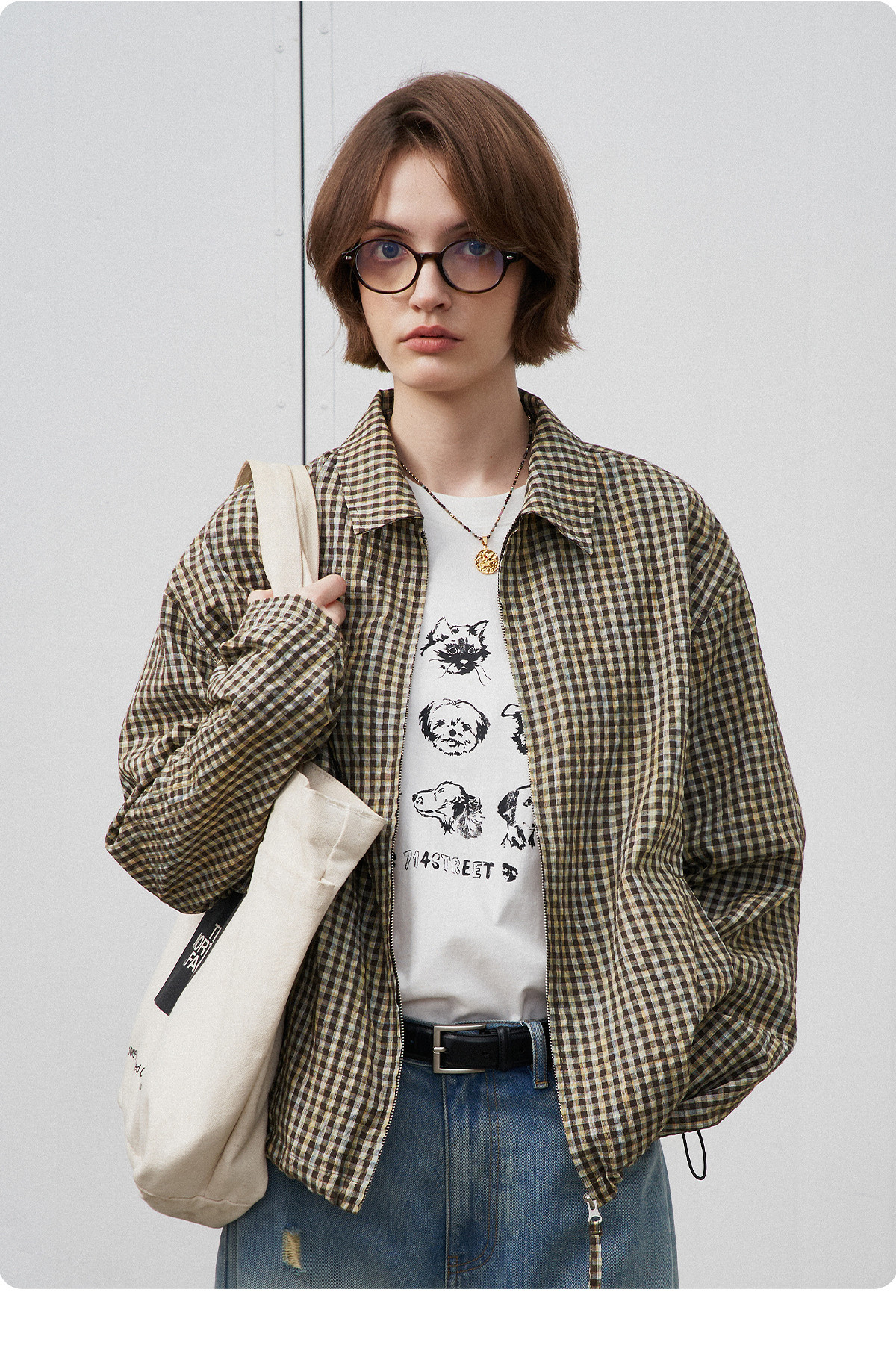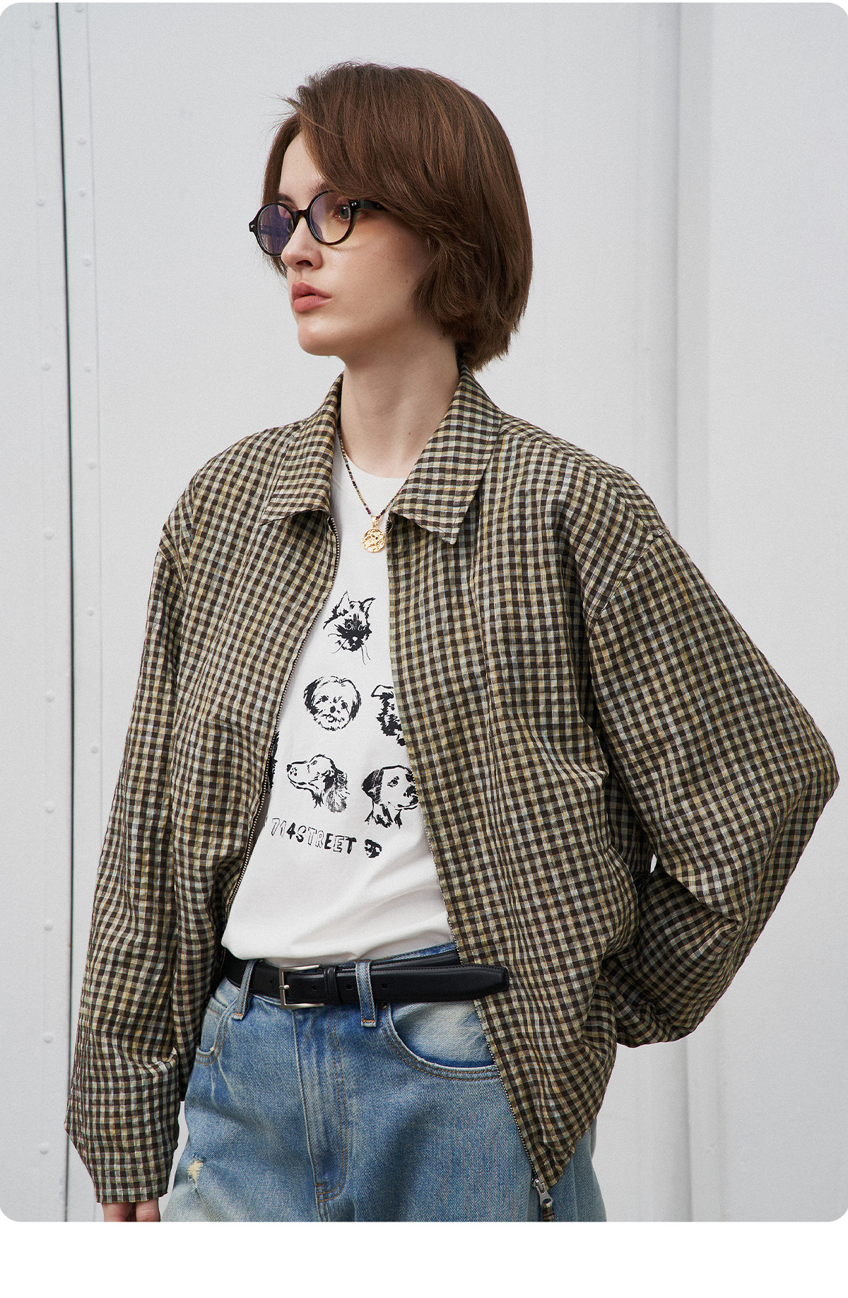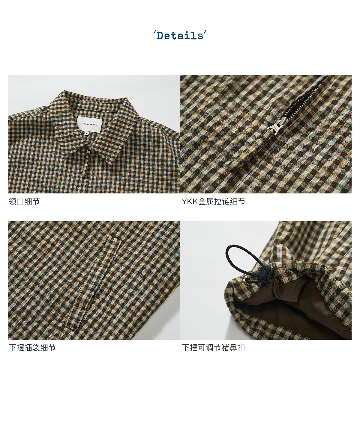 714street美式复古微皱泡泡纱格子翻领夹克男25春款宽松轻薄外套