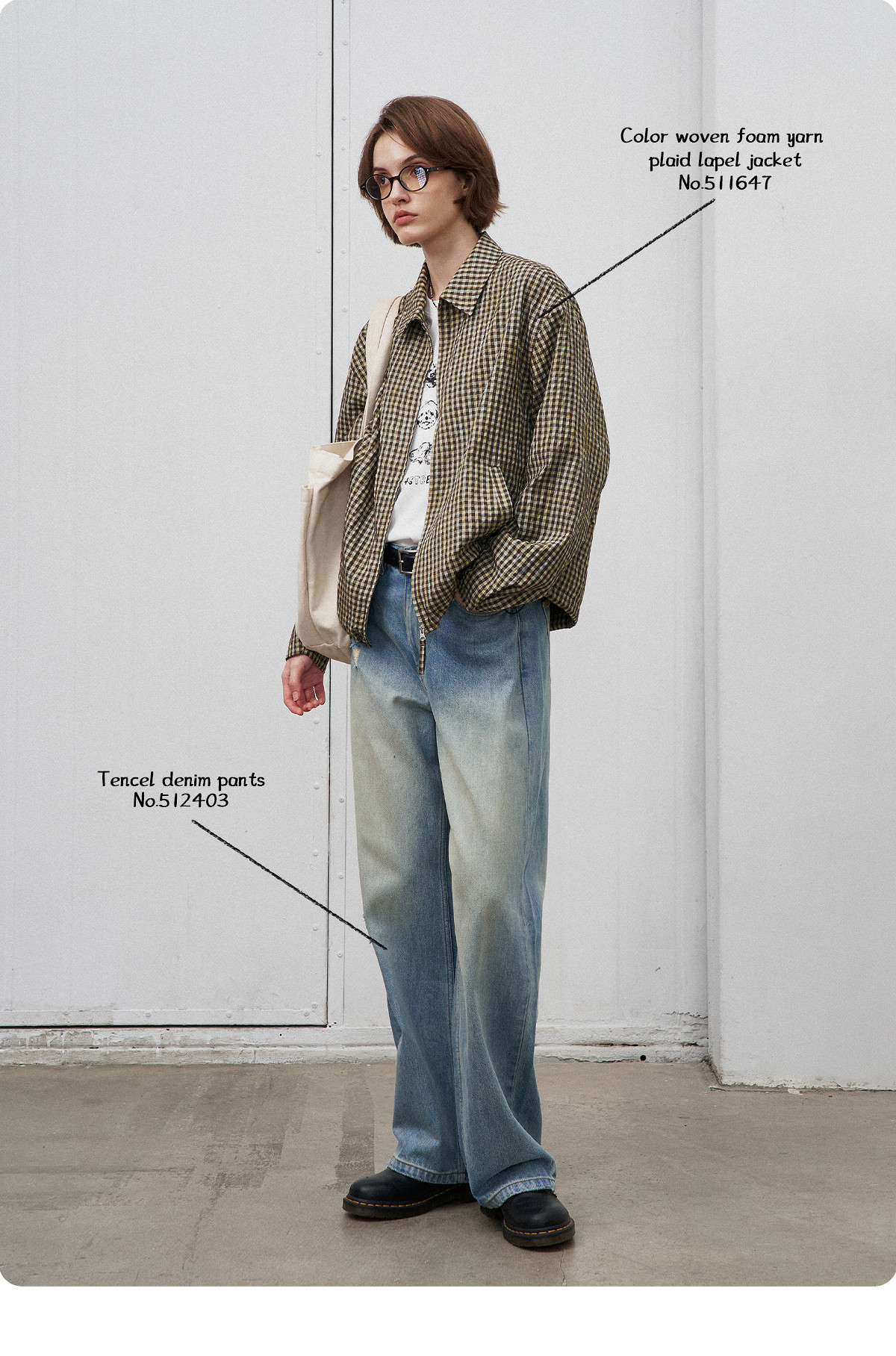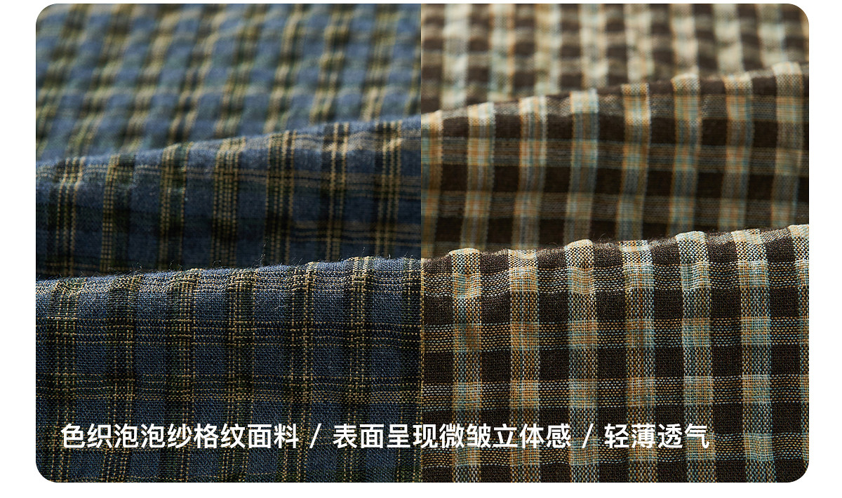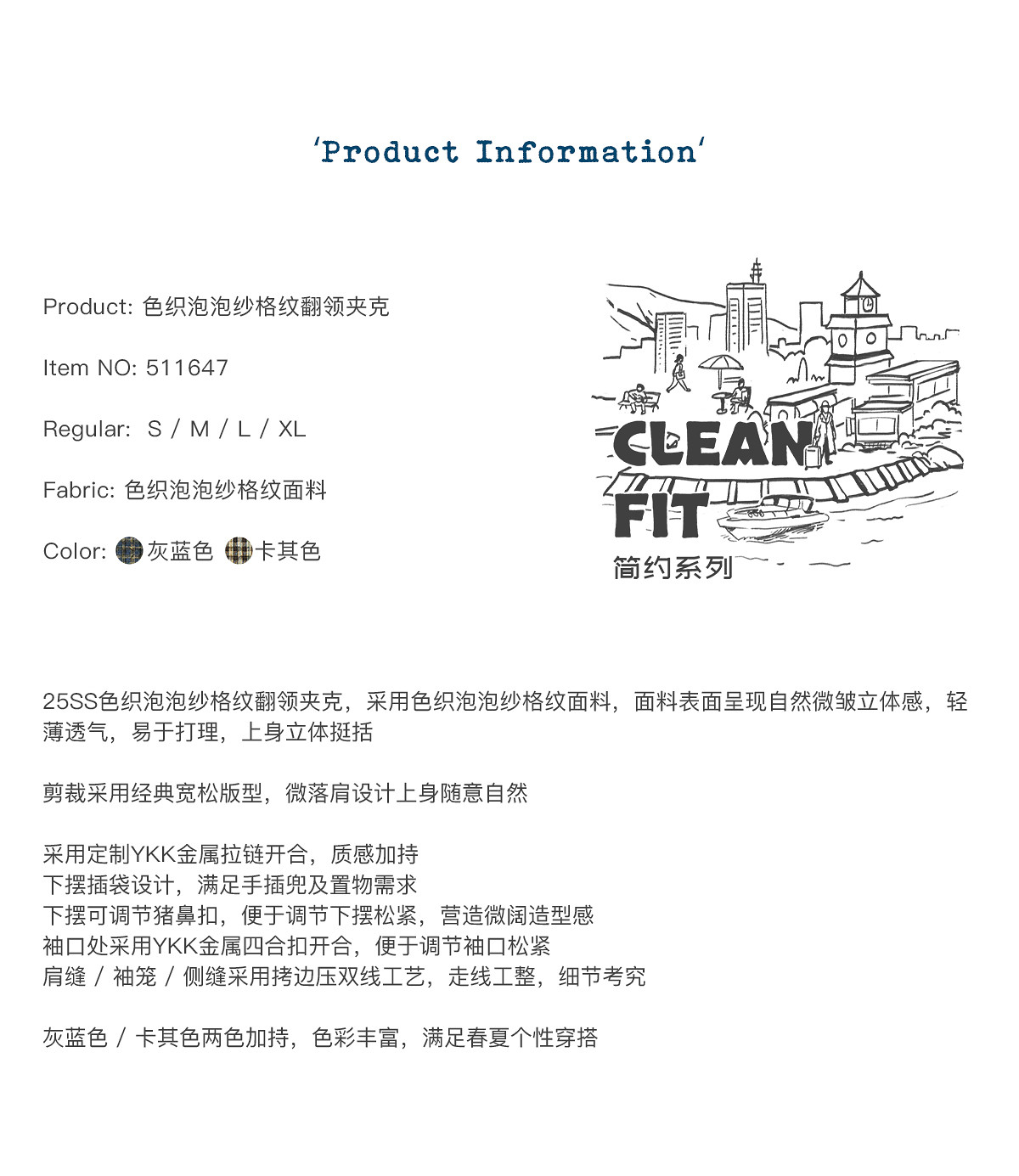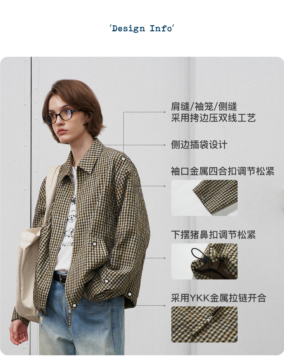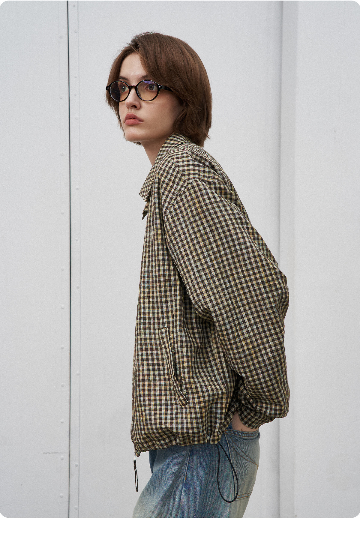 714street美式复古微皱泡泡纱格子翻领夹克男25春款宽松轻薄外套