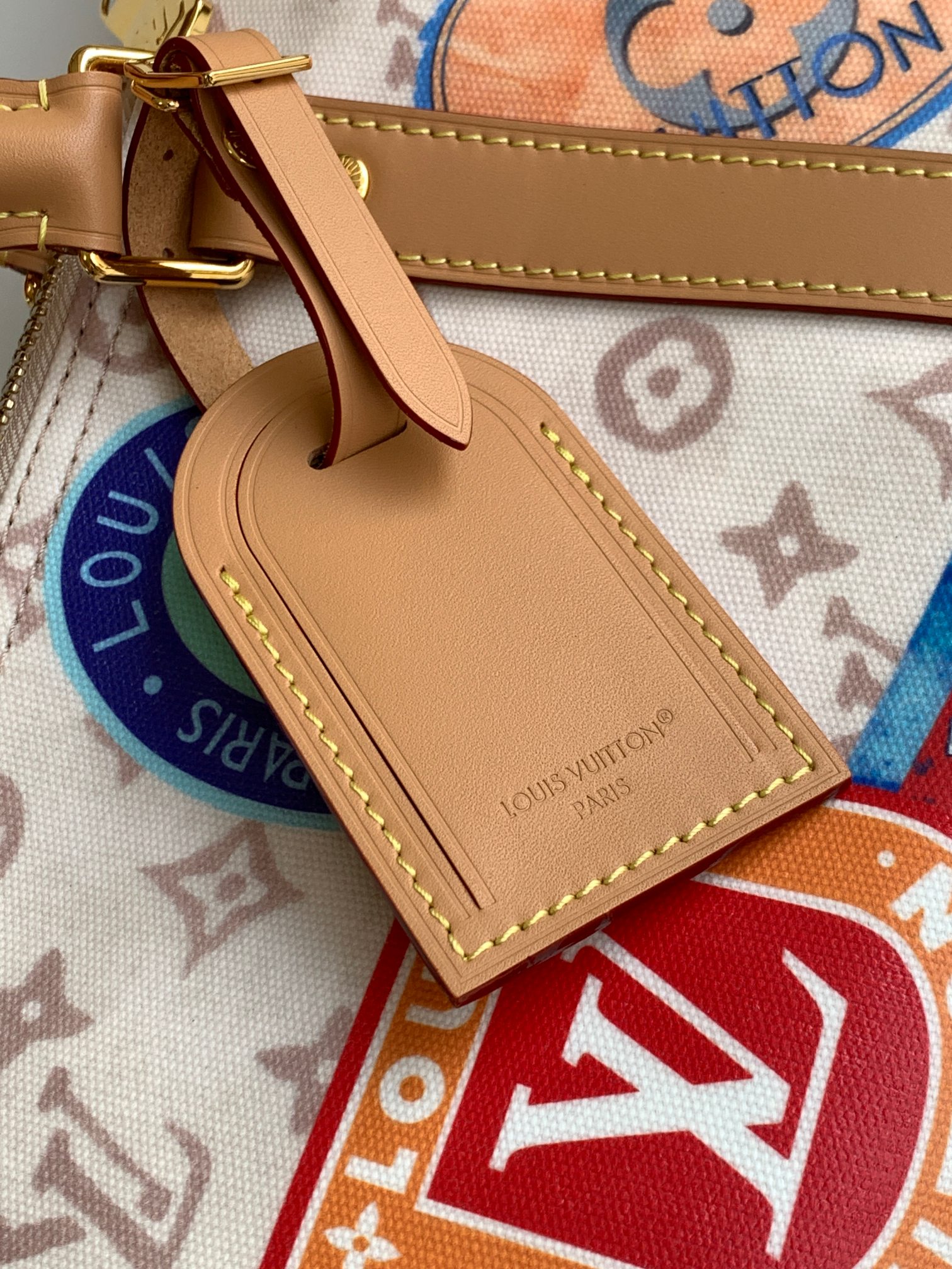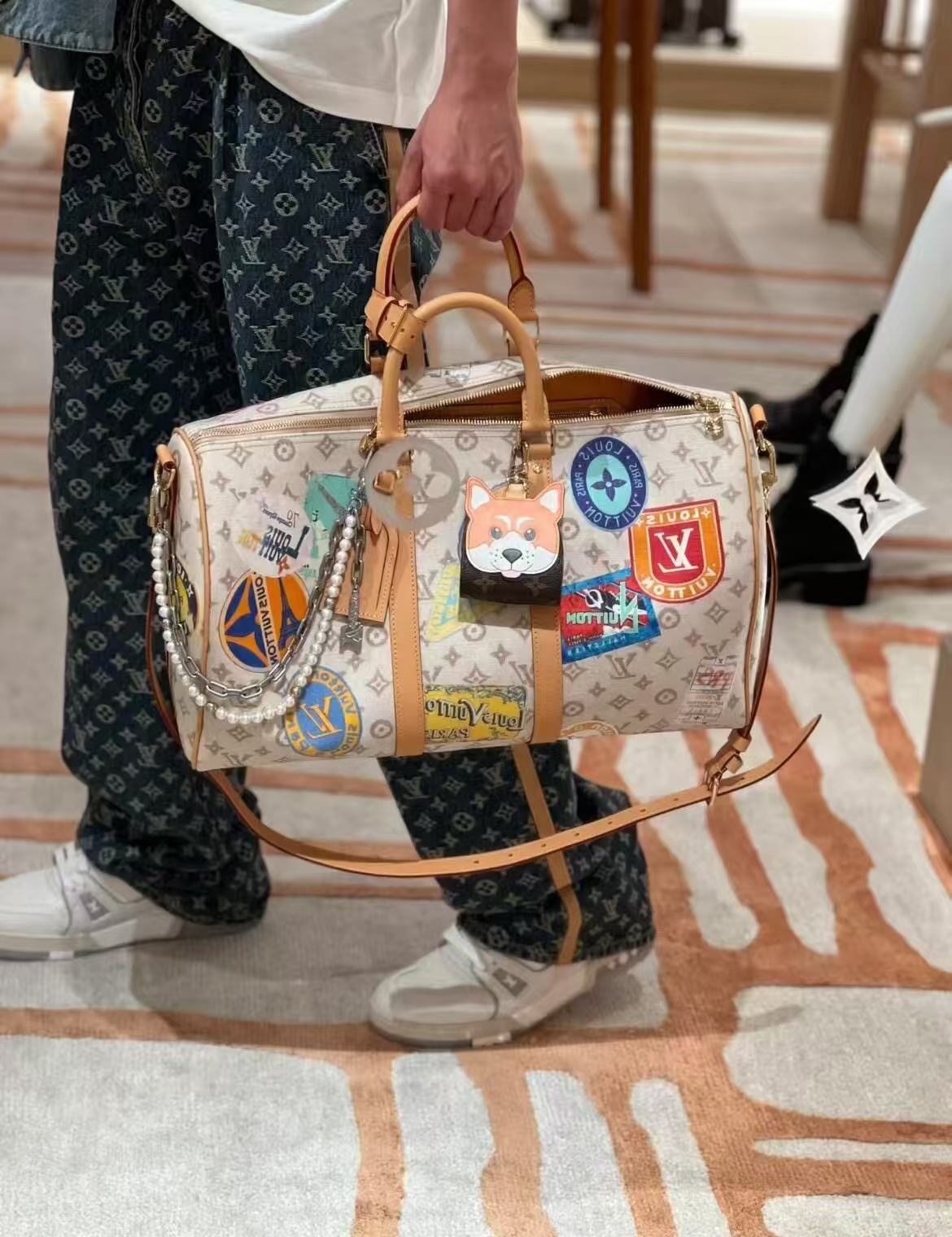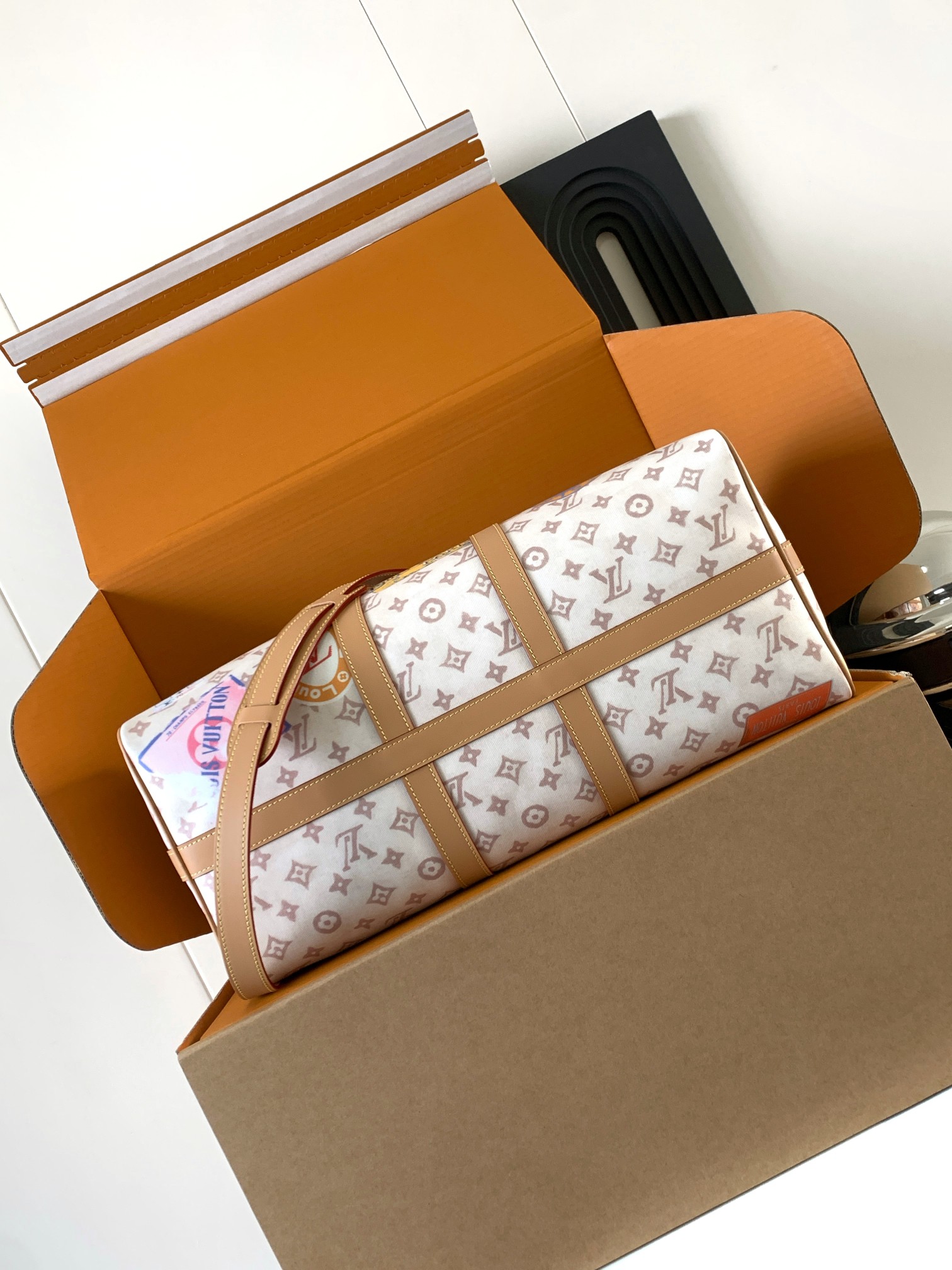 LOUIS VUITTON keepallBandoulière 45 复古印花设计 Monogram Dune 织物 单肩斜挎旅行包 男女同款情侣款 米色