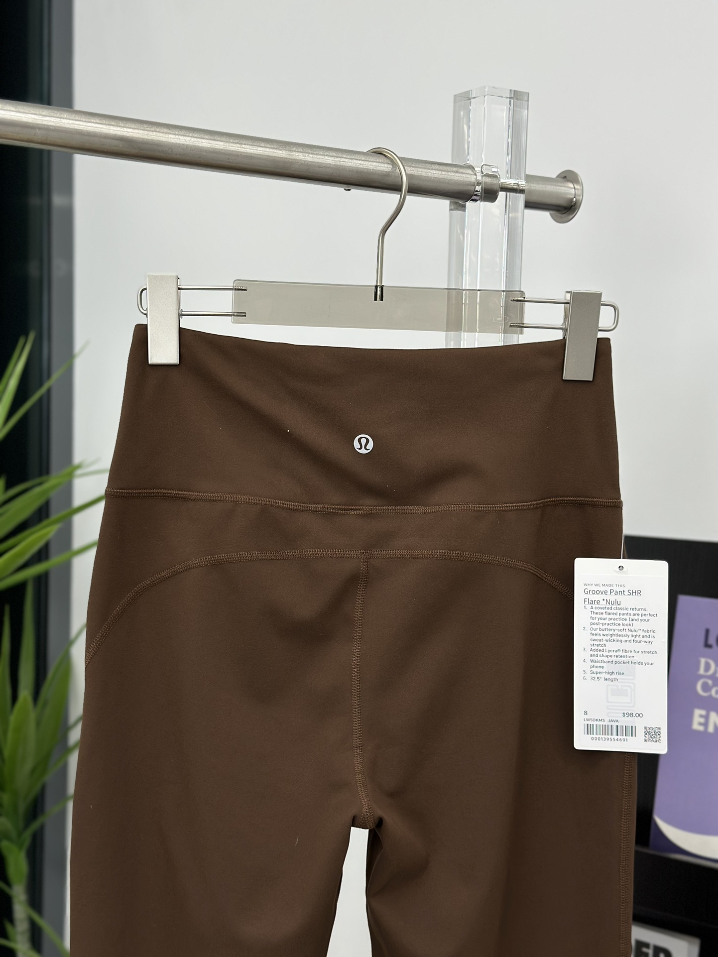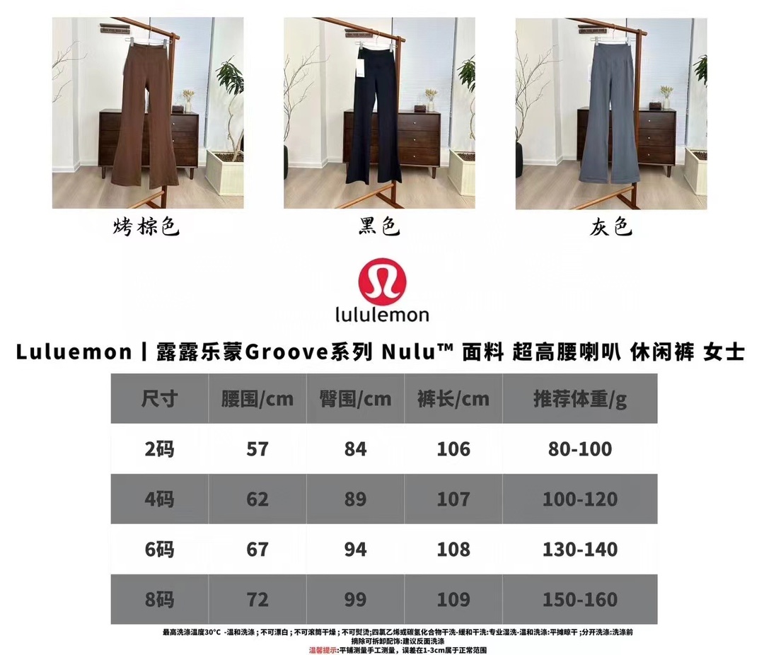 Lululmon Groove女士运动裸感高腰喇叭裤 设计理念: PRODUCT BASIC INFORMATION经典回归;这款喇叭裤伴你专注瑜伽习练,也伴你在习练后展现别致风格 面料+特点: ✅轻盈柔滑的Nulu面料排汗良好,带有四面弹力 ✅添加Lycra氨纶,舒适伸展,不易变形 ✅后侧便捷口袋 ✅超高腰版型 对腿部线条进行了修饰 ✅适合亚洲人群 工艺: ✅整体做工采用4针6线的工艺,缝线采用高士的Seamsoft缝纫线,够柔软不刮肉不紧勒,与贴身的瑜伽服绝配,可以随面料随意拉伸,四面舒展,更加舒适自如。 设想一款缝纫线,它用于缝制贴身衣物,虽有线迹却让人感受不到它的存在,当肌肤触碰到它时,感受到的是阵阵无限舒适的柔软抚慰力量。 想象很美好,但要把这种极具柔软且不失高强力性能的绝非易事。