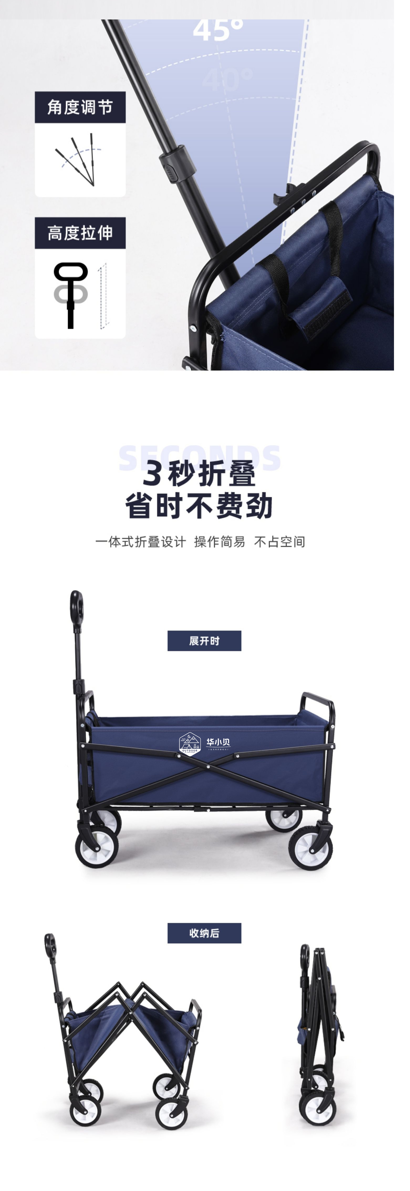 【产品名称】:华小贝多功能可折叠露营车(铁款轮款)