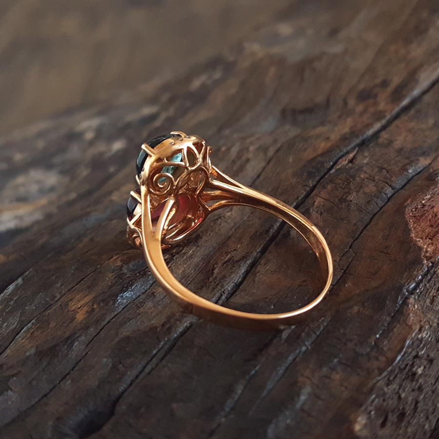 【天然正品】AU750玫瑰金镶钻镶天然葫芦造型(福禄平安)双色碧玺戒指16.1*11.7*7.7MM(皆取最大值)17号(戒圈可改)女士031125TJ34