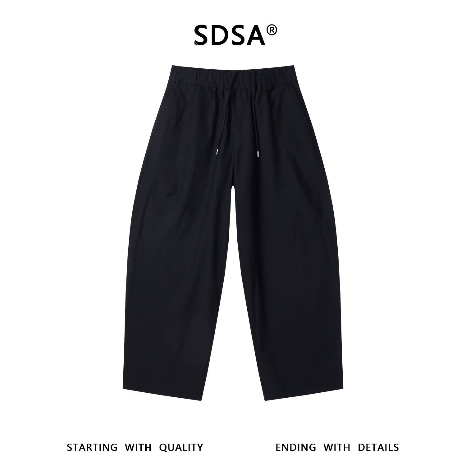 SDSA男装2026新款高贵轻奢日系纯色抽绳腰头阔腿休闲裤百搭裤子