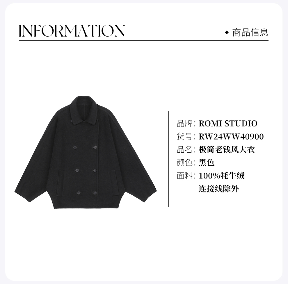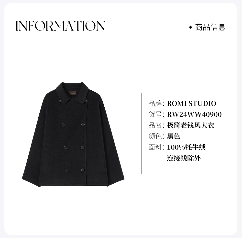 ROMI STUDIO“棕标甄选”牦牛绒双排扣蓬松软糯短款大衣RW24WW40900