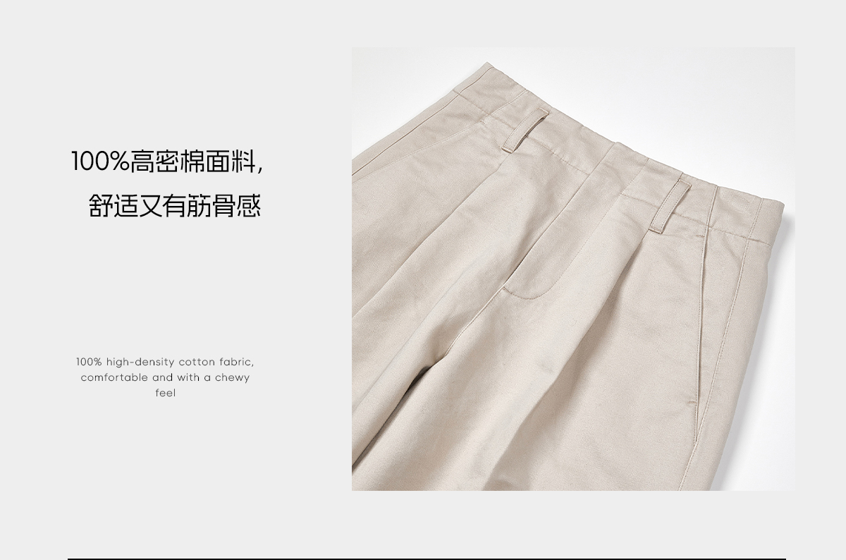 ROMI STUDIO“舒适自然”立体单褶高腰休闲百搭棉质阔腿裤431K2049