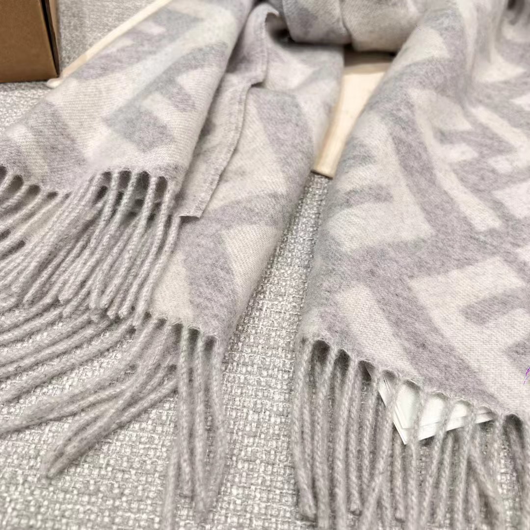 FENDI芬迪 FF 羊绒 绒线围巾 披肩 男女同款情侣款 白色(CB)