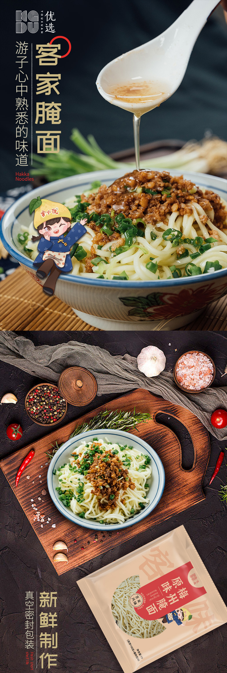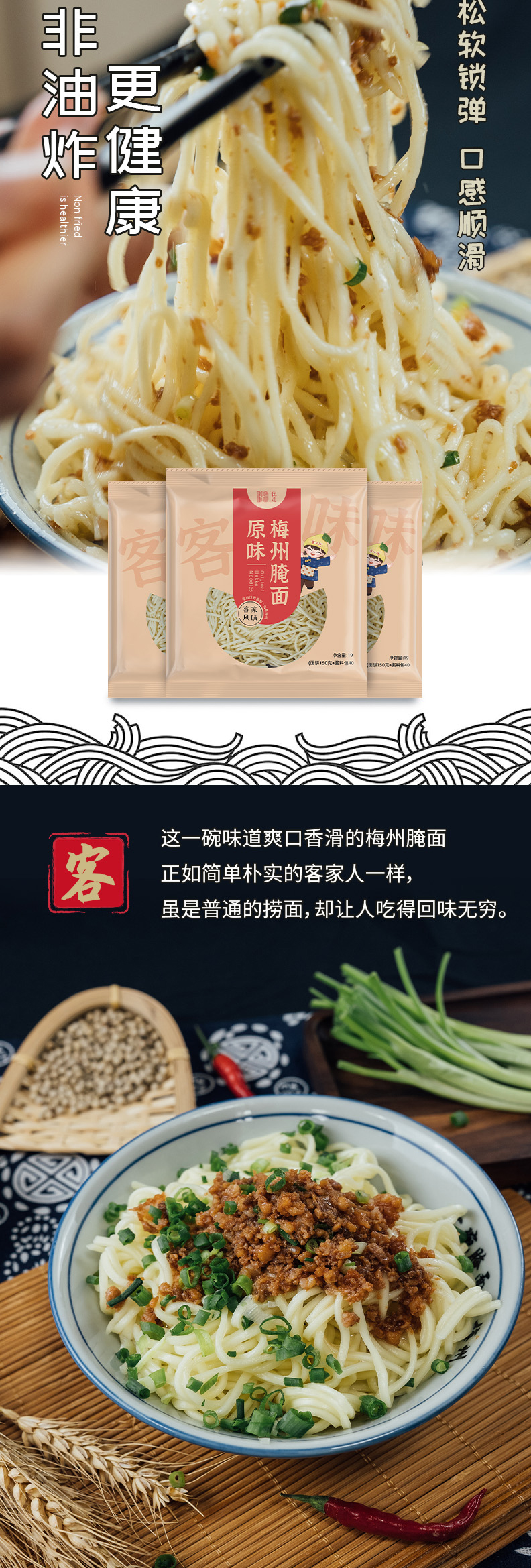 广东梅州客小优优选梅州腌面190克/袋*5(含酱料包)