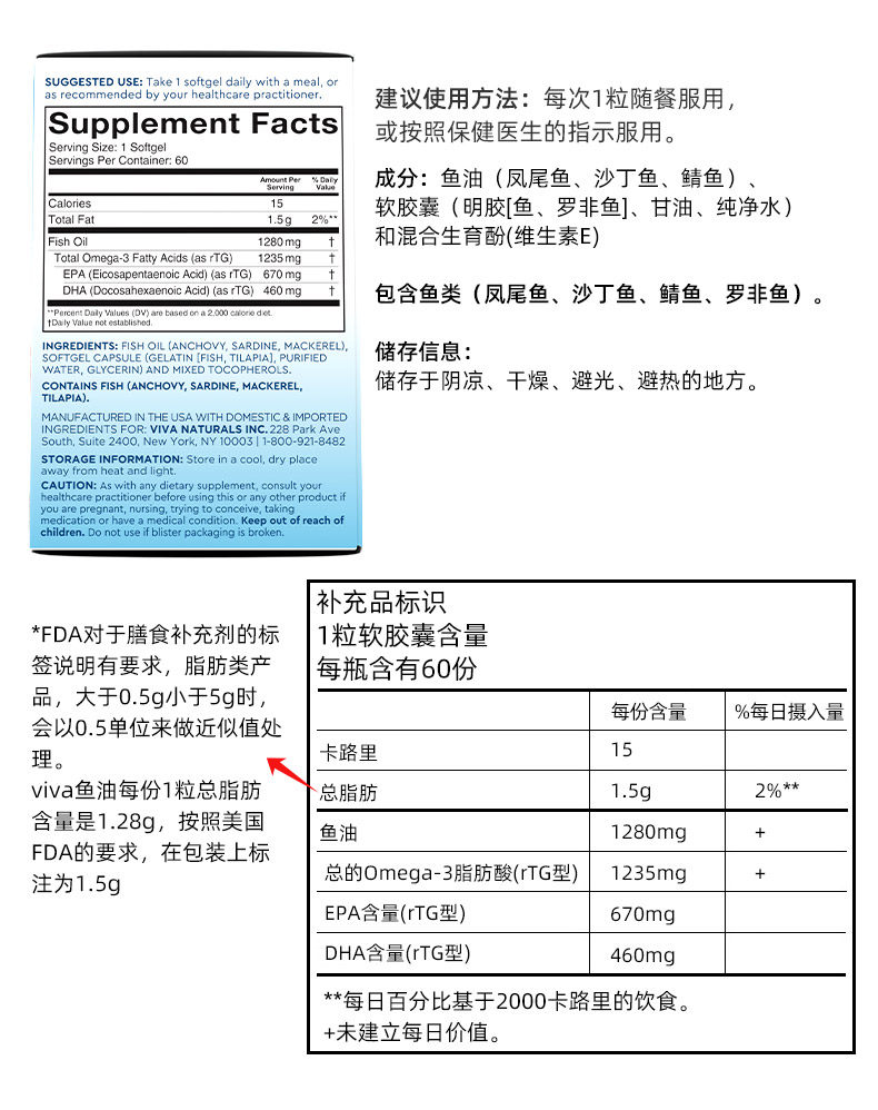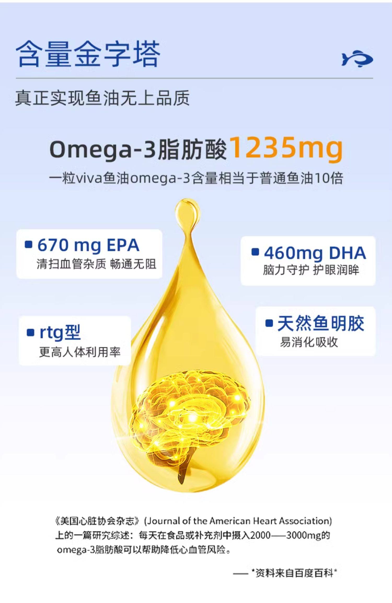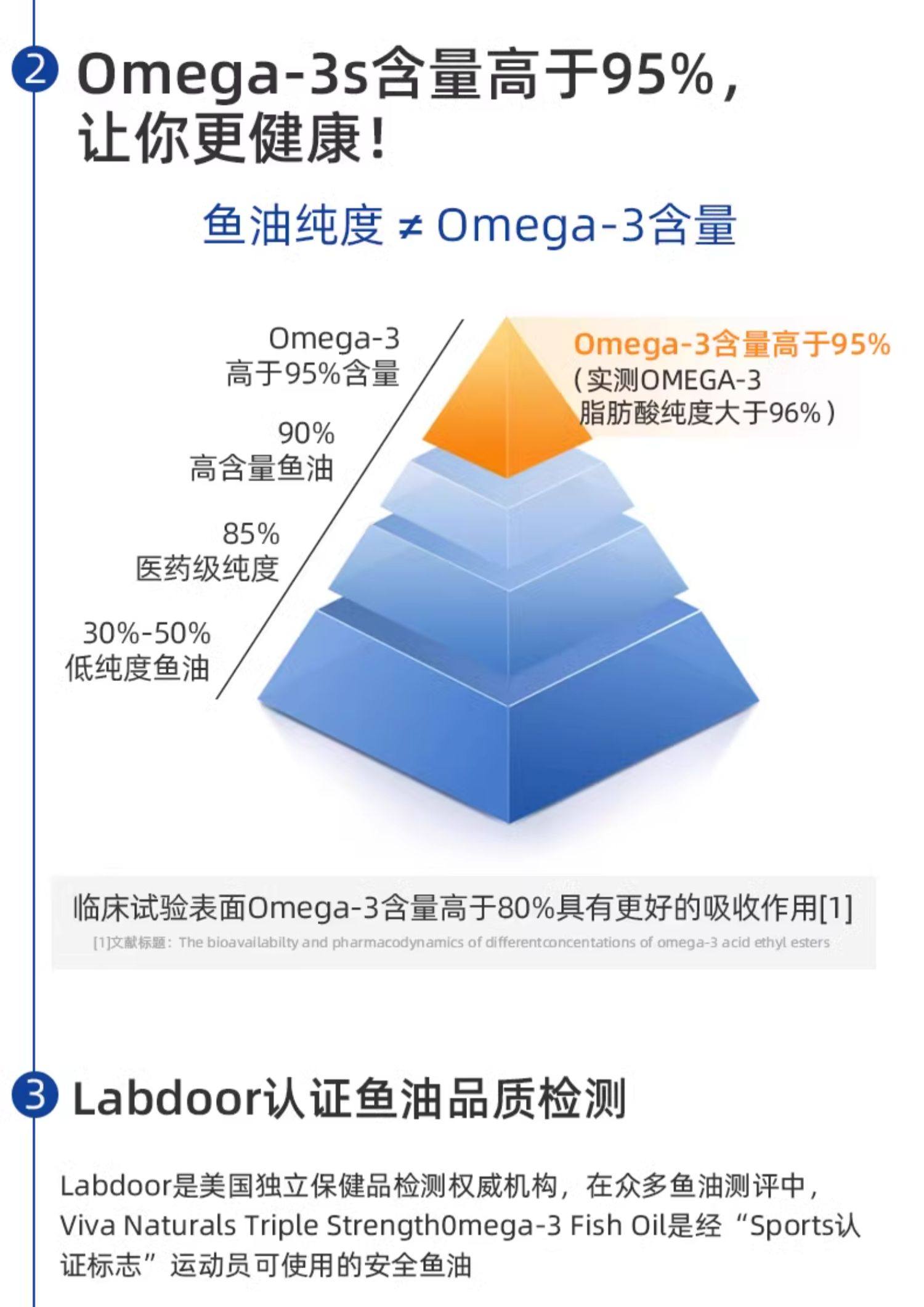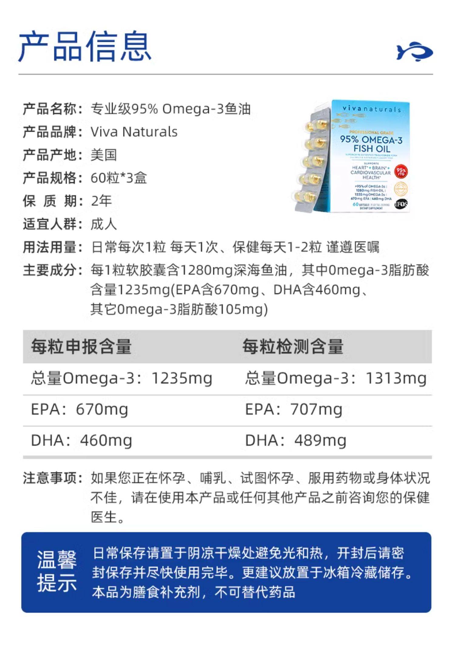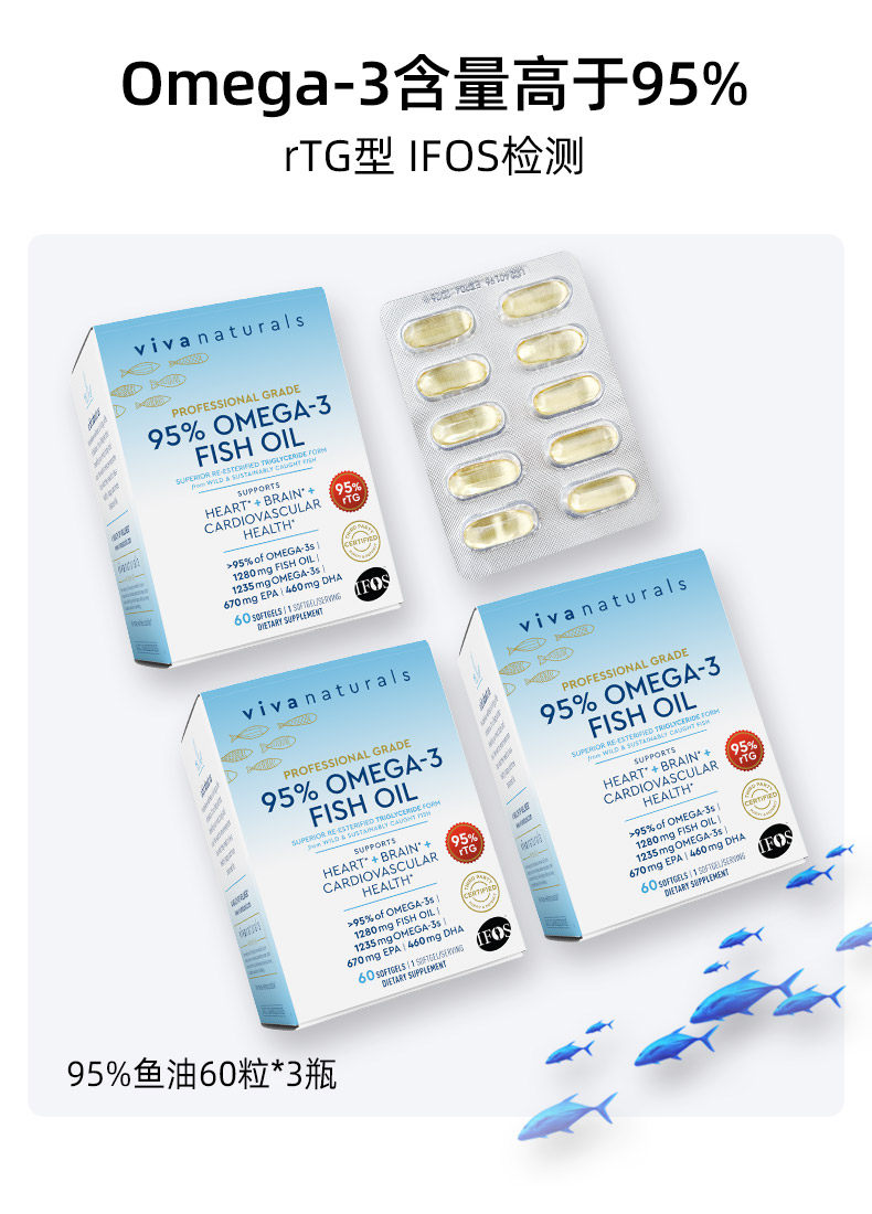 Viva美国进口Omega3高纯度95深海鱼油欧米伽3软胶囊60粒3组合装