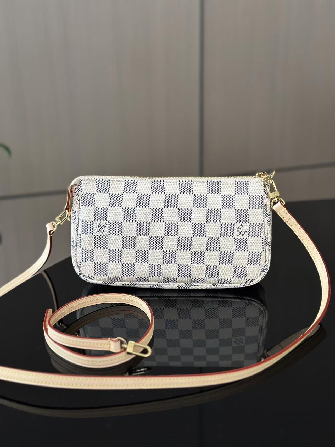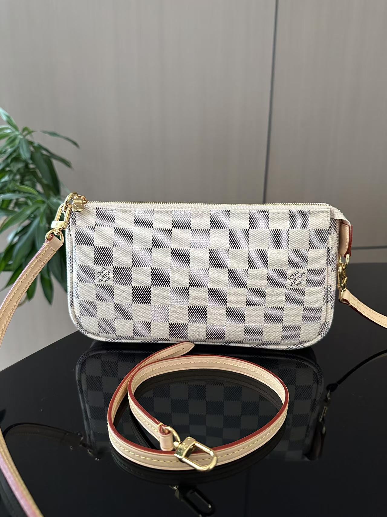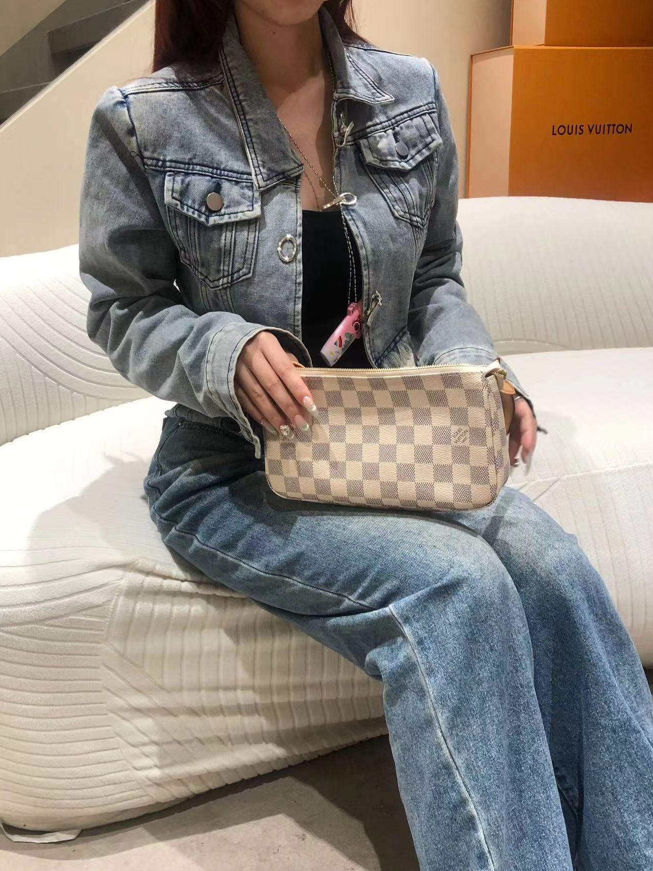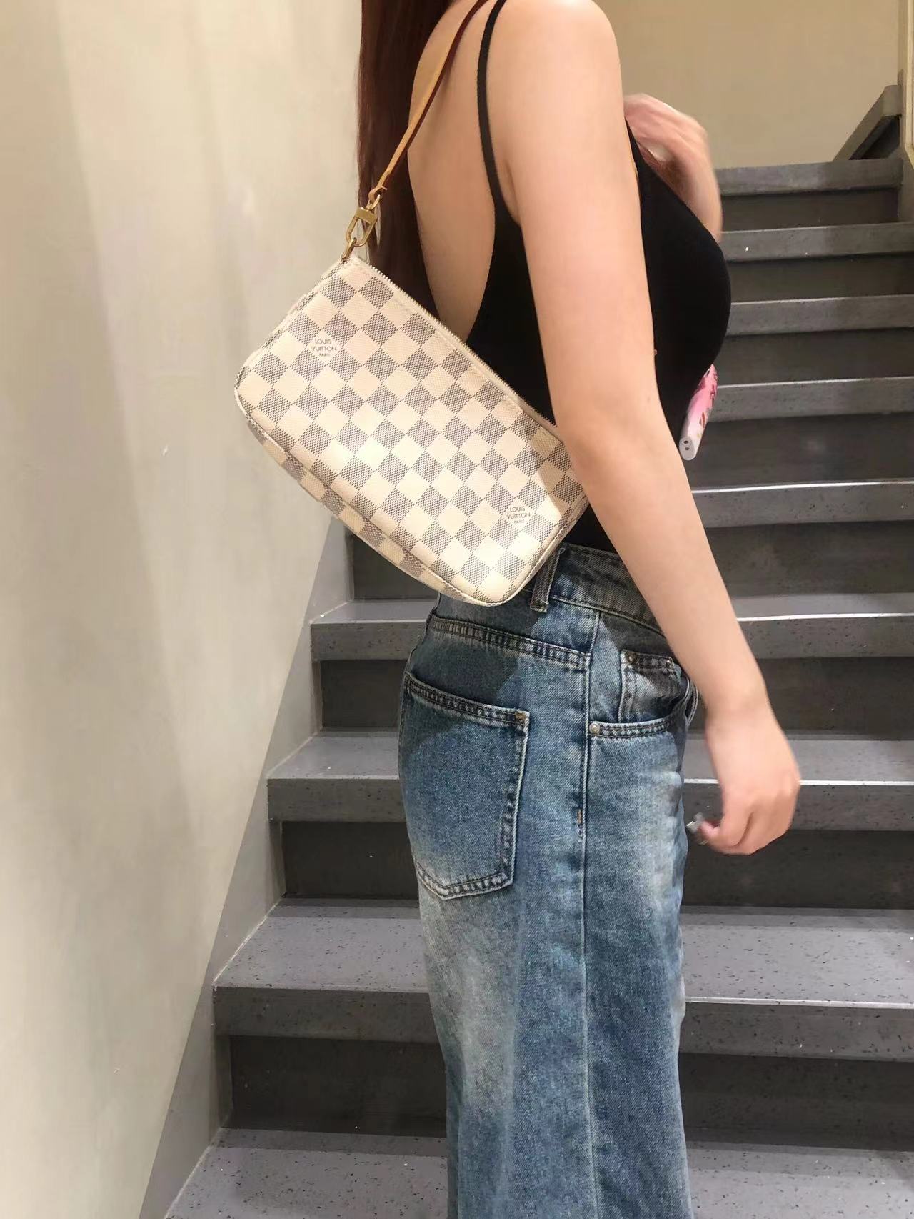 驴家棋盘格 Damier Azu帆布 帆布包麻将包配饰包腋下包单肩包