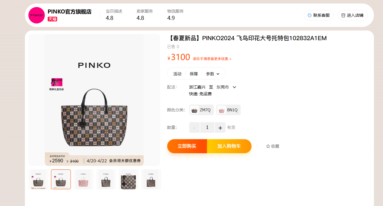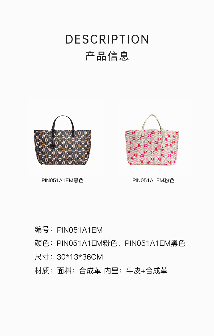 PINO经典老花撞色大容量手提托特包PIN051A1EM