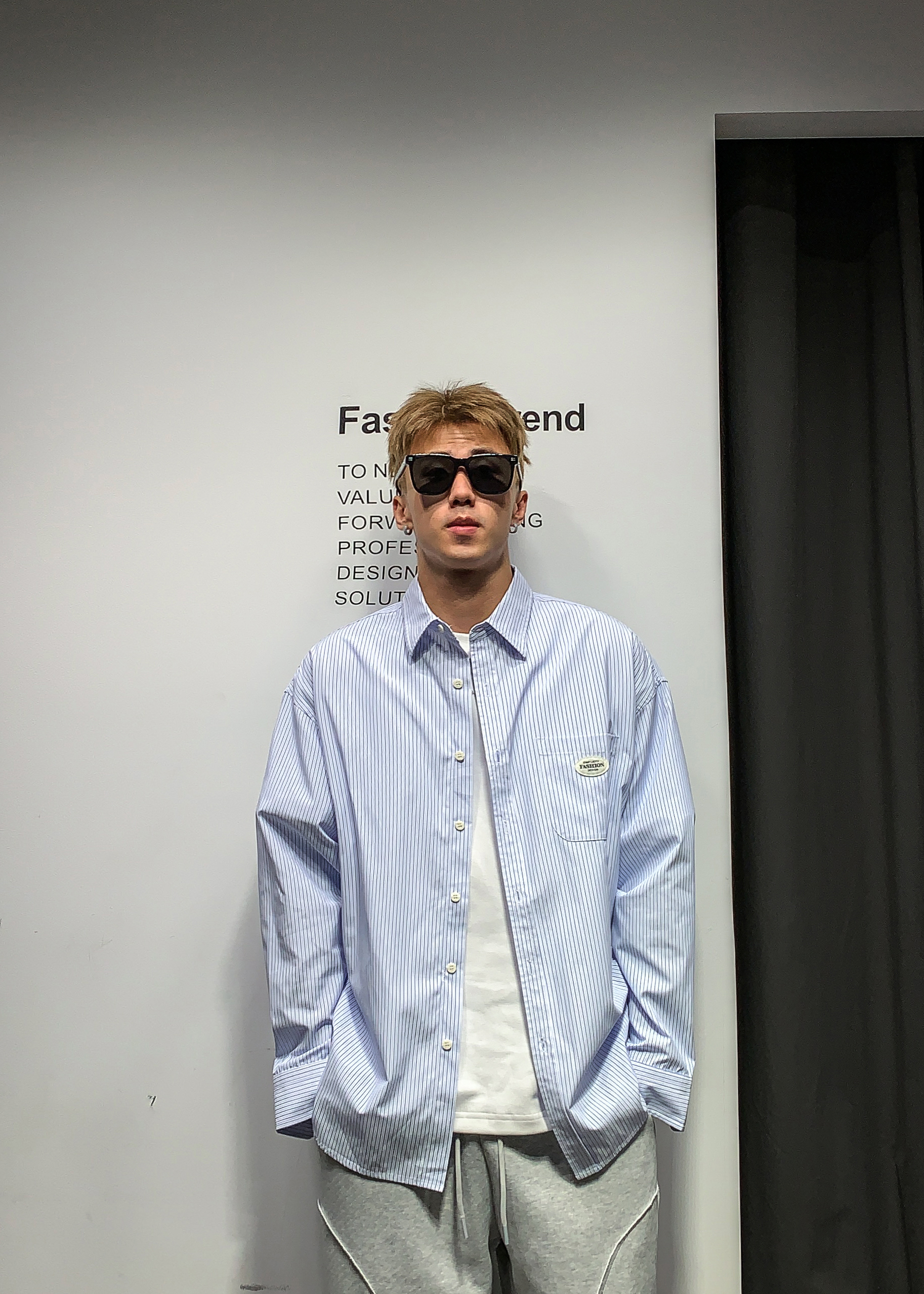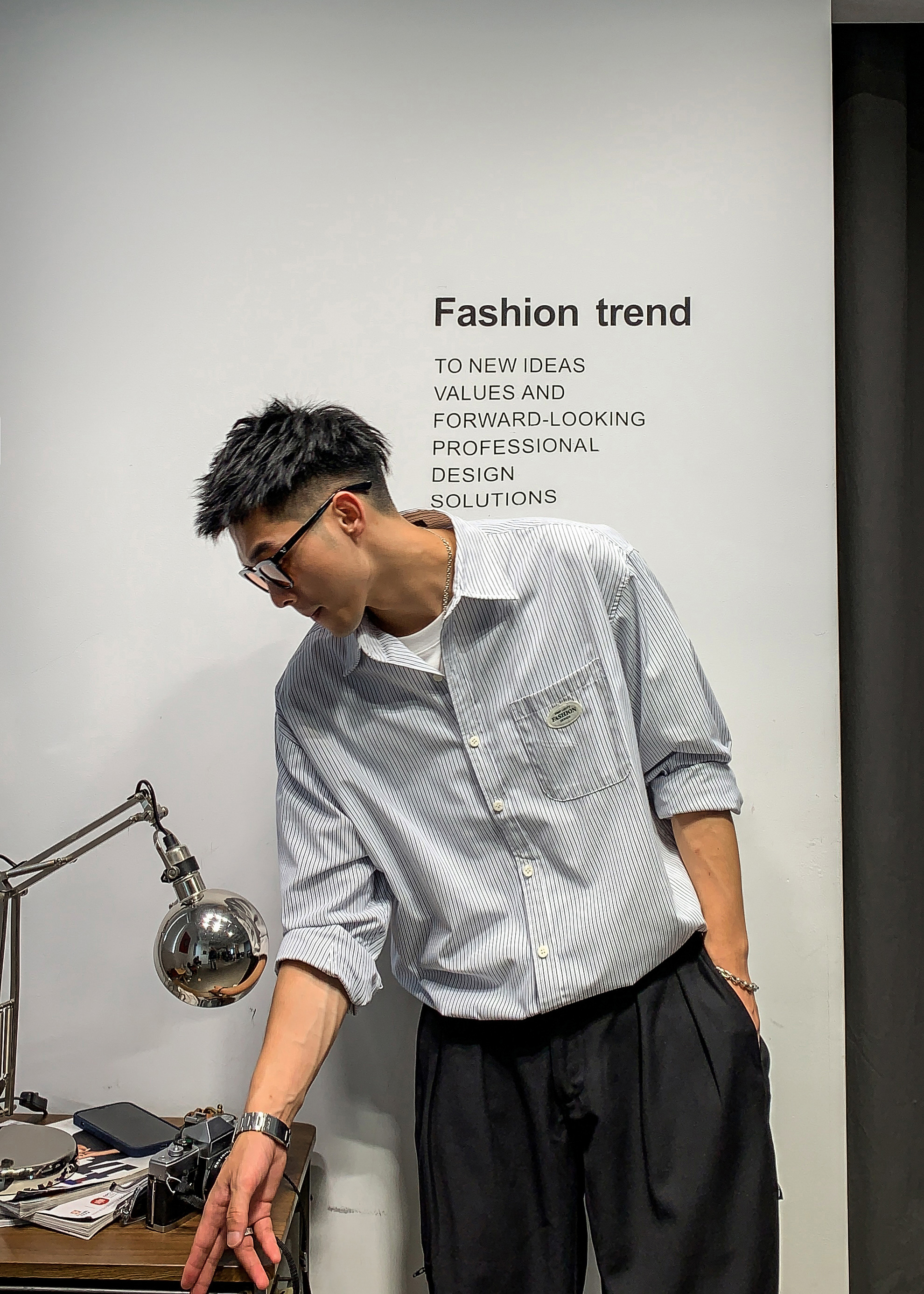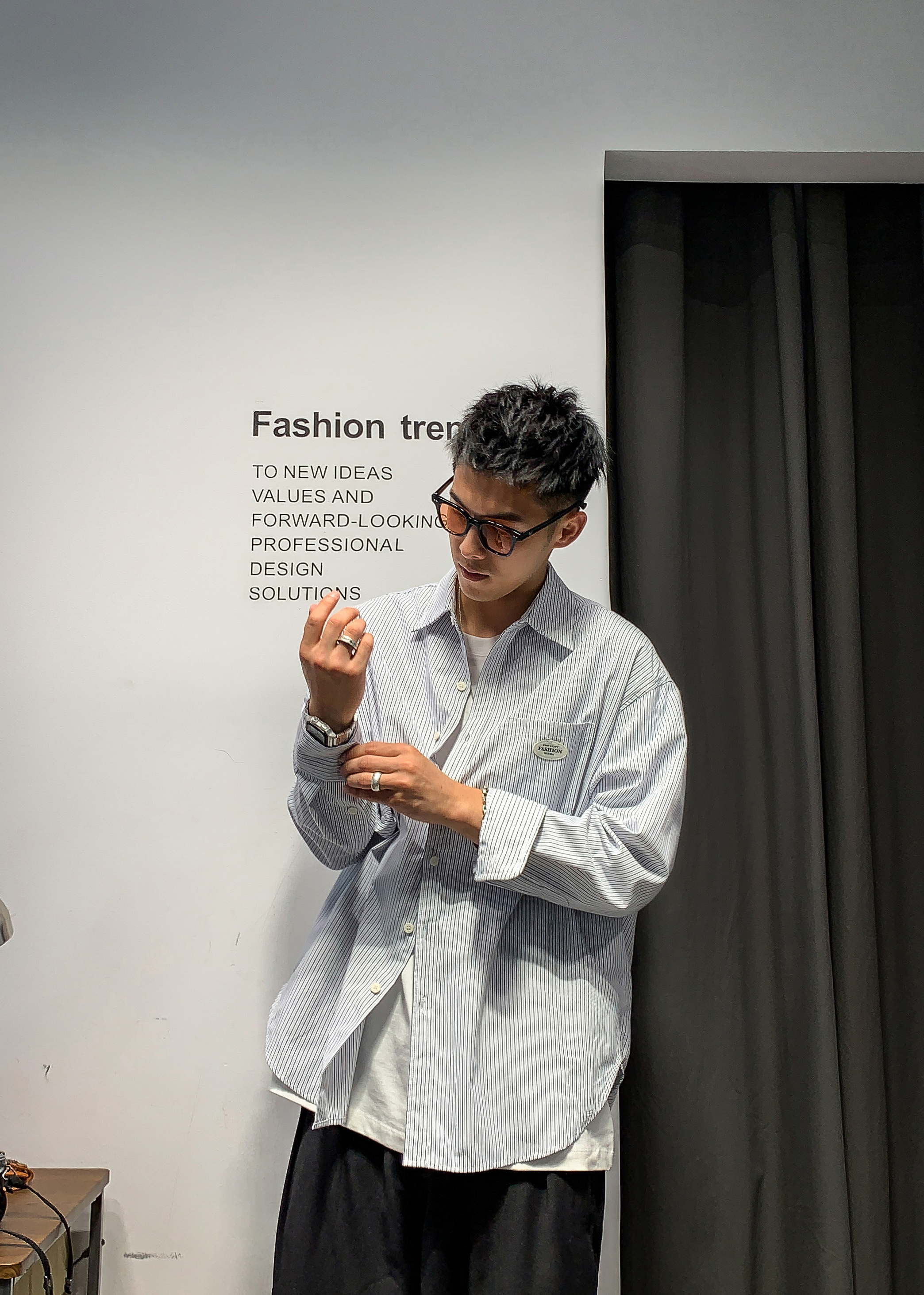徐太浪高级感轻奢条纹衬衫男春秋轻熟风长袖衬衣盐系男友风外套