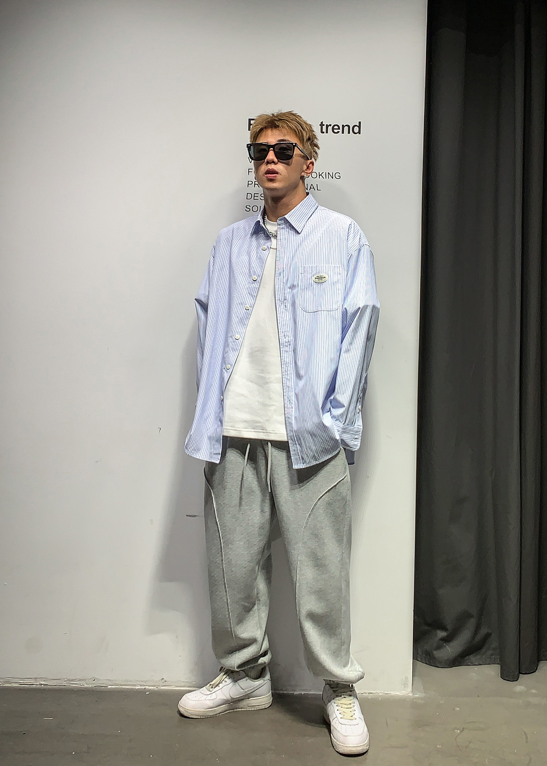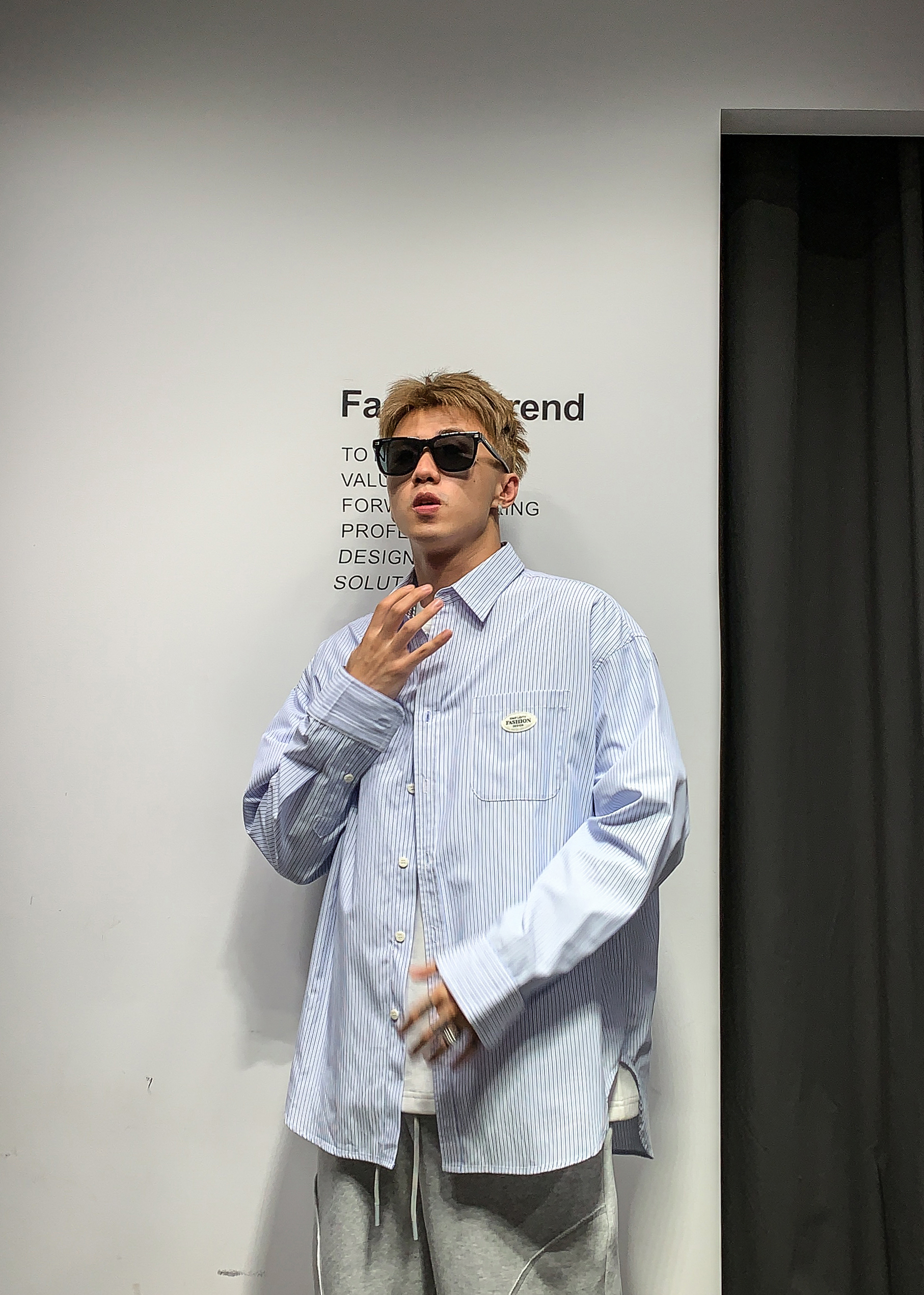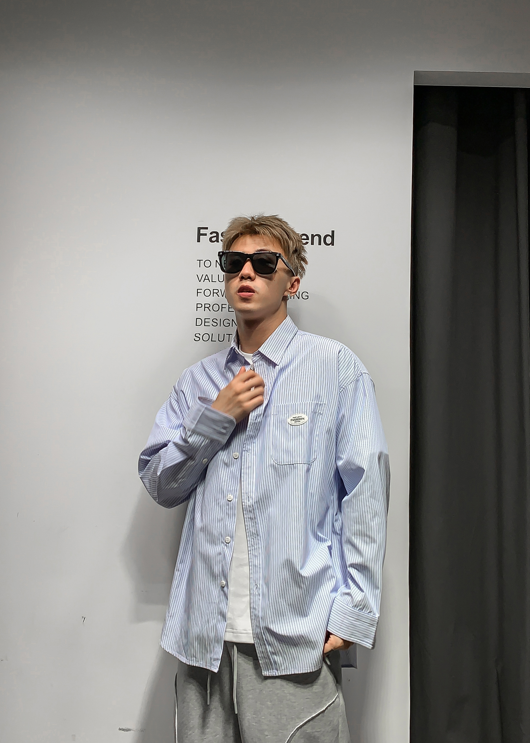 徐太浪高级感轻奢条纹衬衫男春秋轻熟风长袖衬衣盐系男友风外套