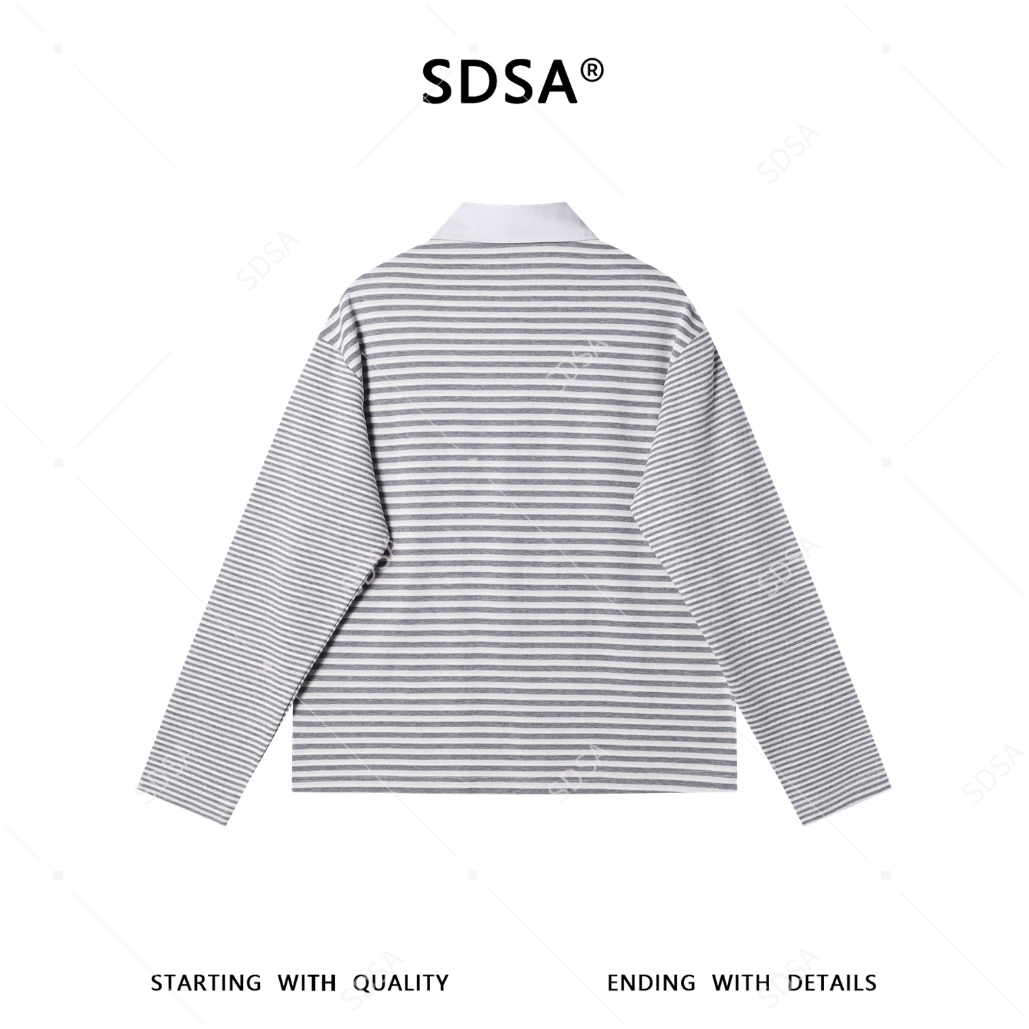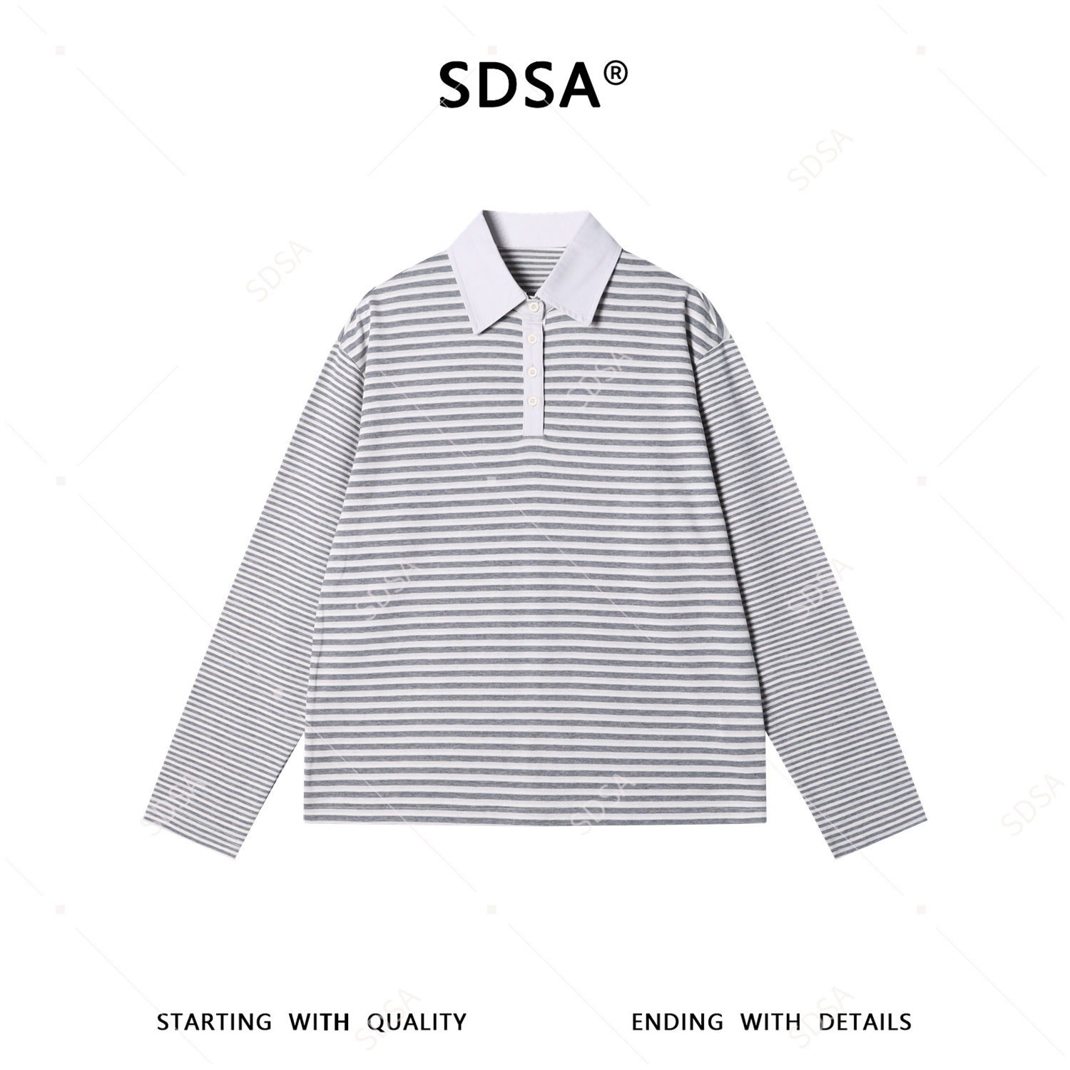 SDSA男装2026新款高贵轻奢韩版复古拼色翻领条纹长袖T恤时尚上衣