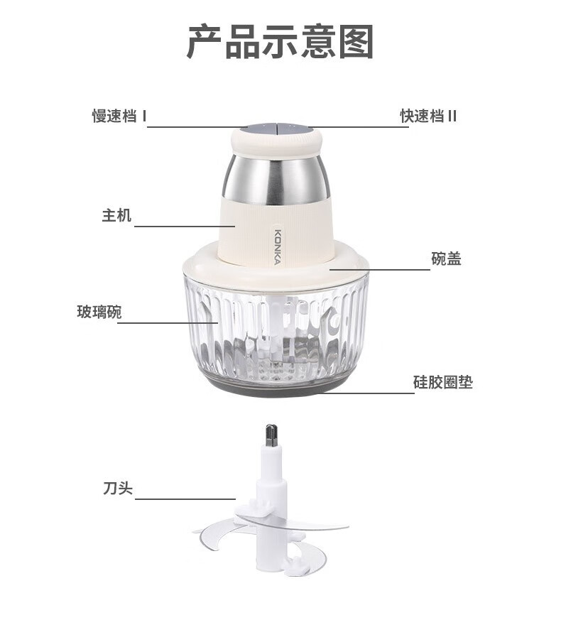 康佳(KONKA)绞肉机多功能家用双档辅食碎肉机KJRJ-1839-M