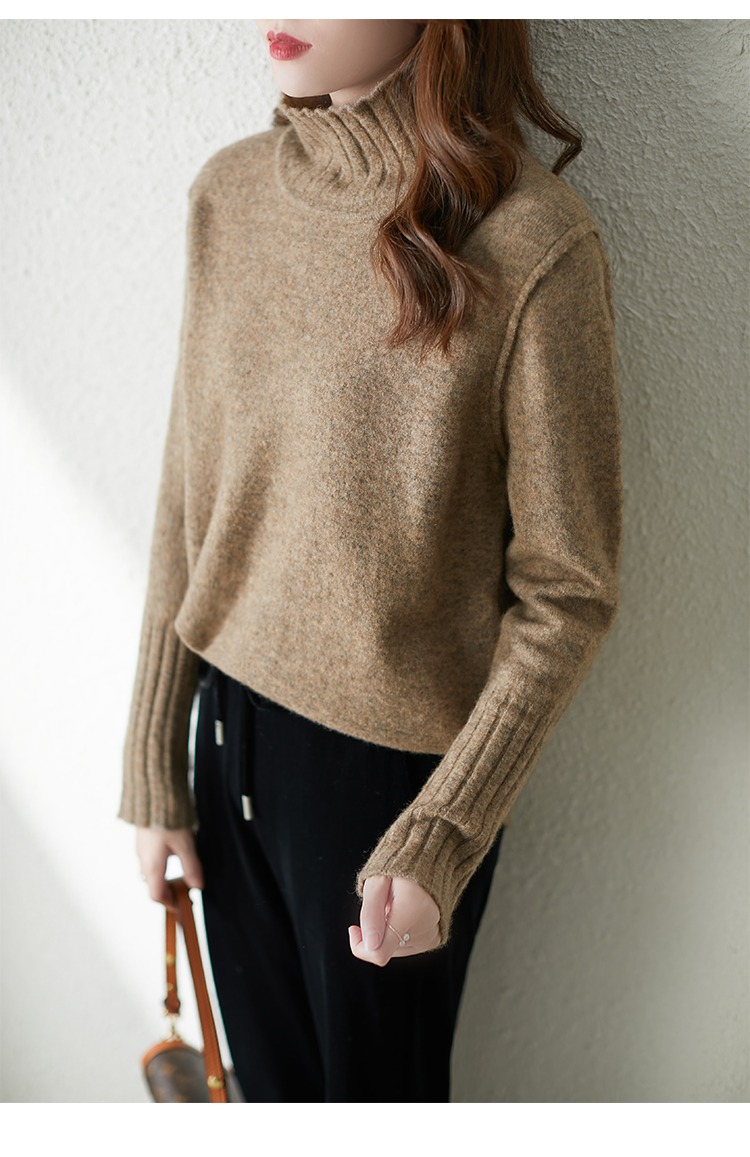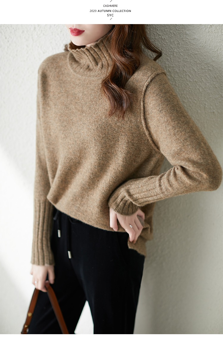 【现货7天】高定羊绒针织衫 轻盈软糯!高领宽松外穿2023早春套头毛衣女