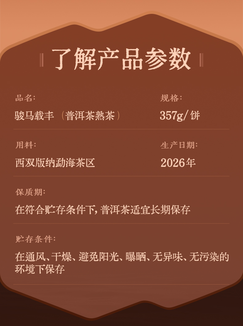 【马年生肖茶】陈升号 2026年骏马载丰357g(熟茶)