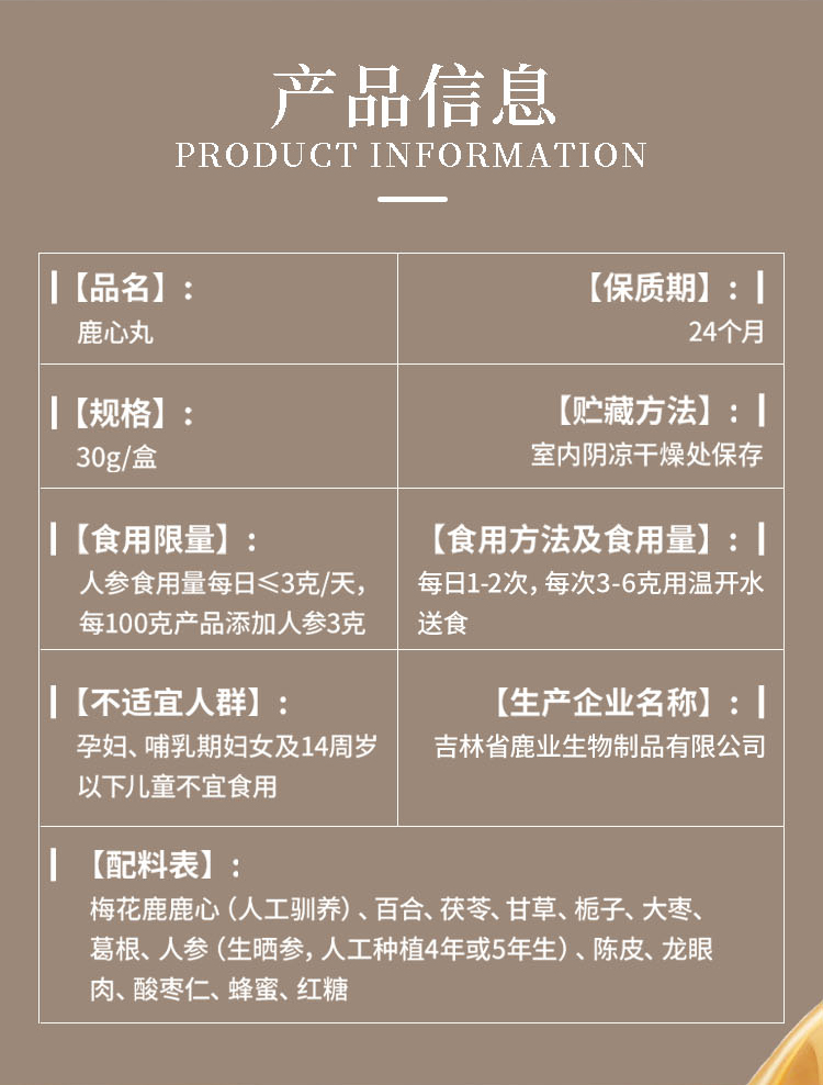 【吉林老字号】鹿心丸长白山梅花鹿多元滋补营养健康送礼心选