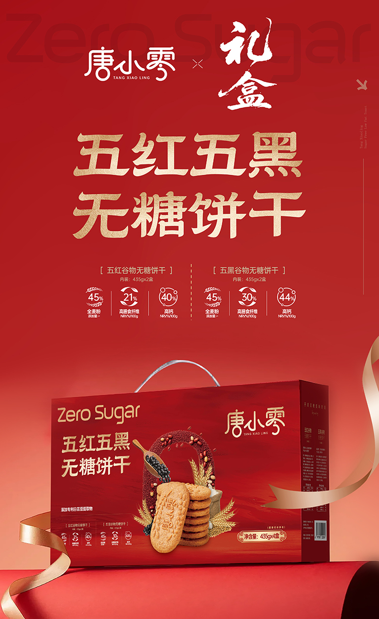 唐小零五红谷物+五黑谷物饼干养生零食0添加蔗糖节日礼盒装