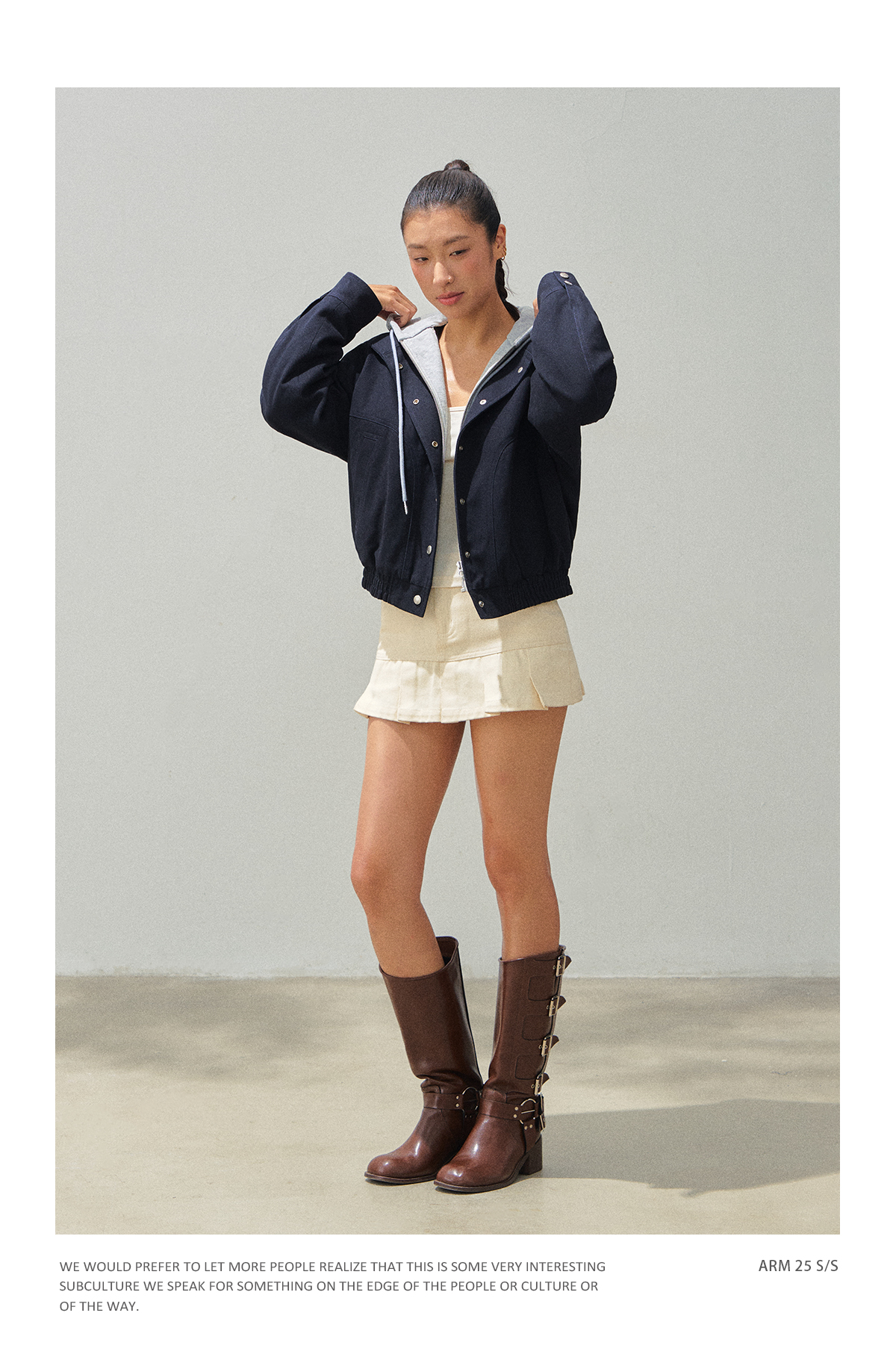 Ariseism 美式复古设计感可脱卸连帽棉服外套女冬季新款修身棉衣