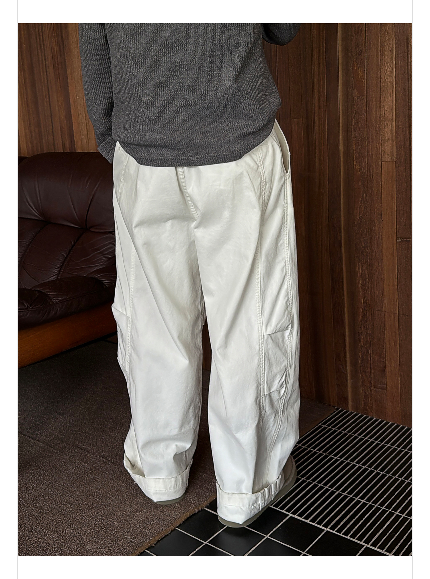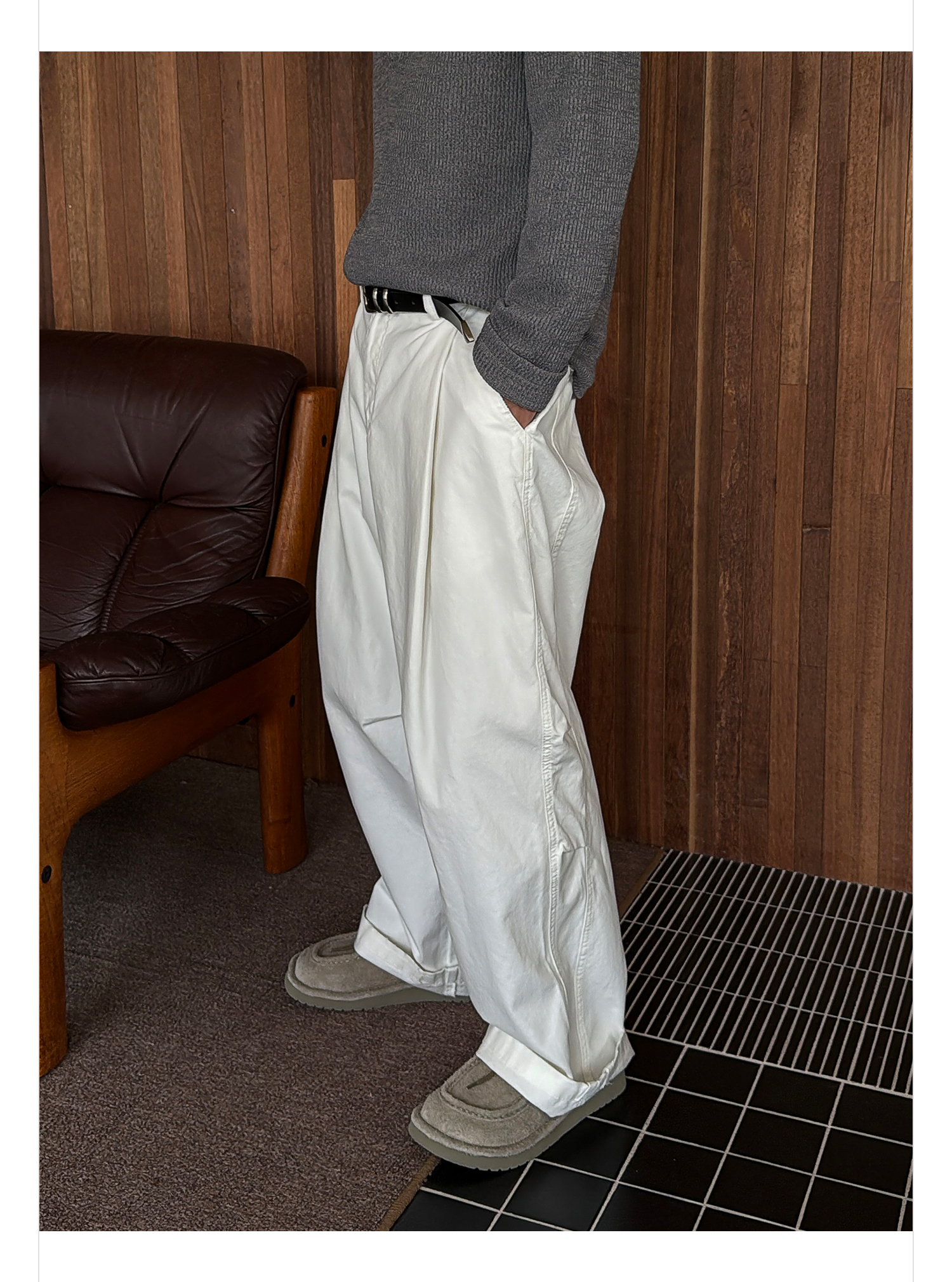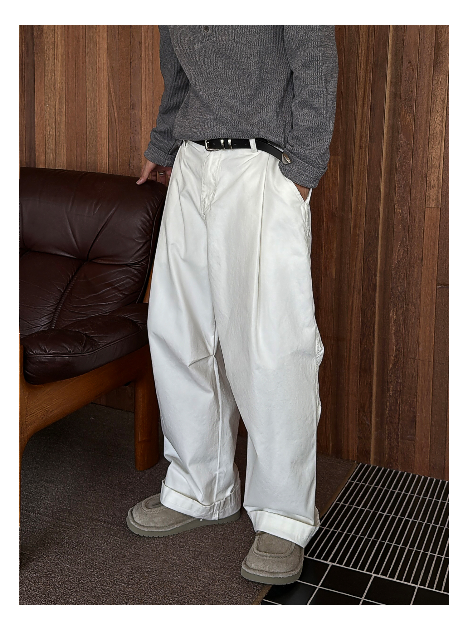 徐太浪410g百搭白色裤子男士2025新款透气纯棉直筒褶皱休闲裤长裤