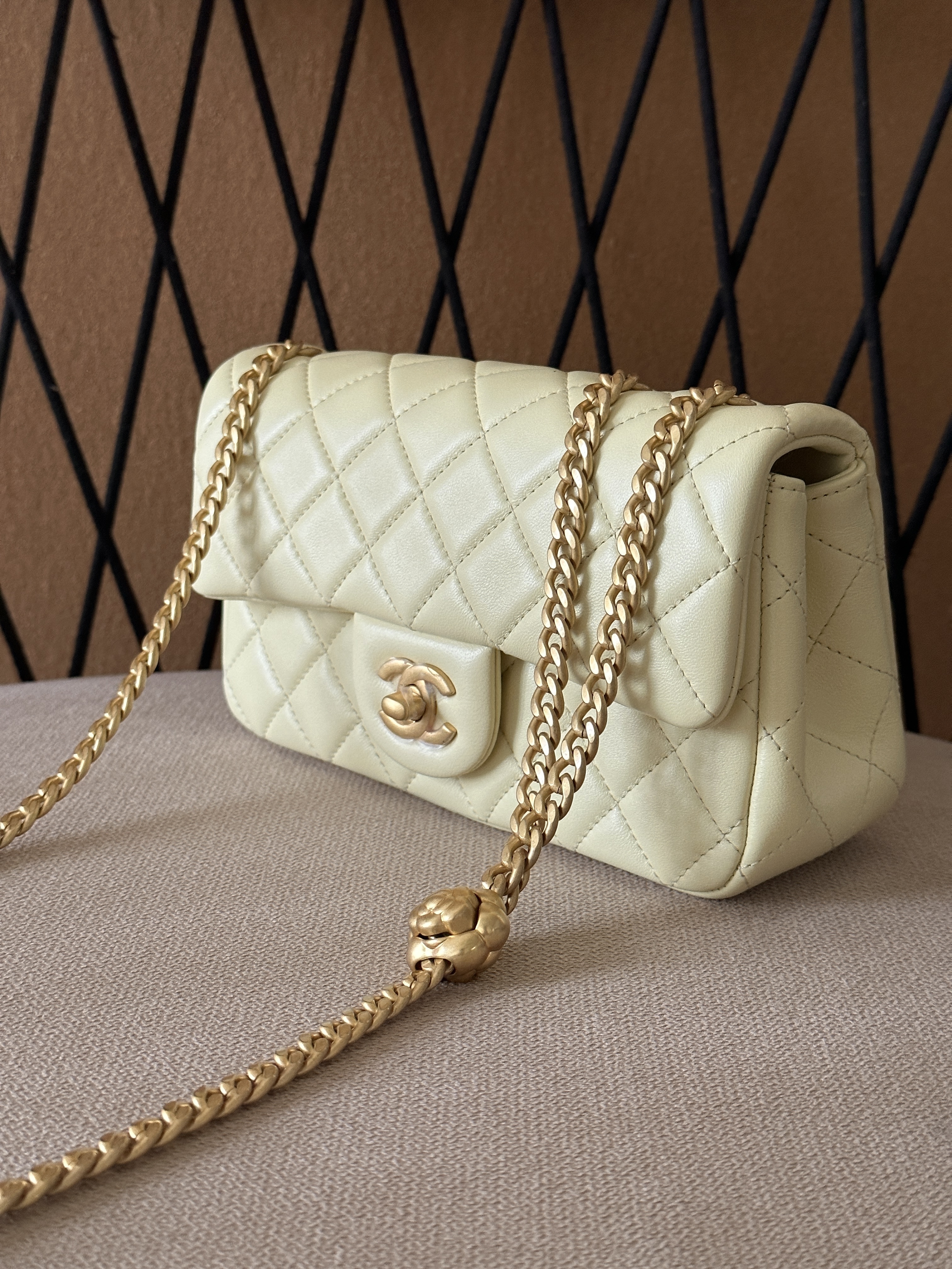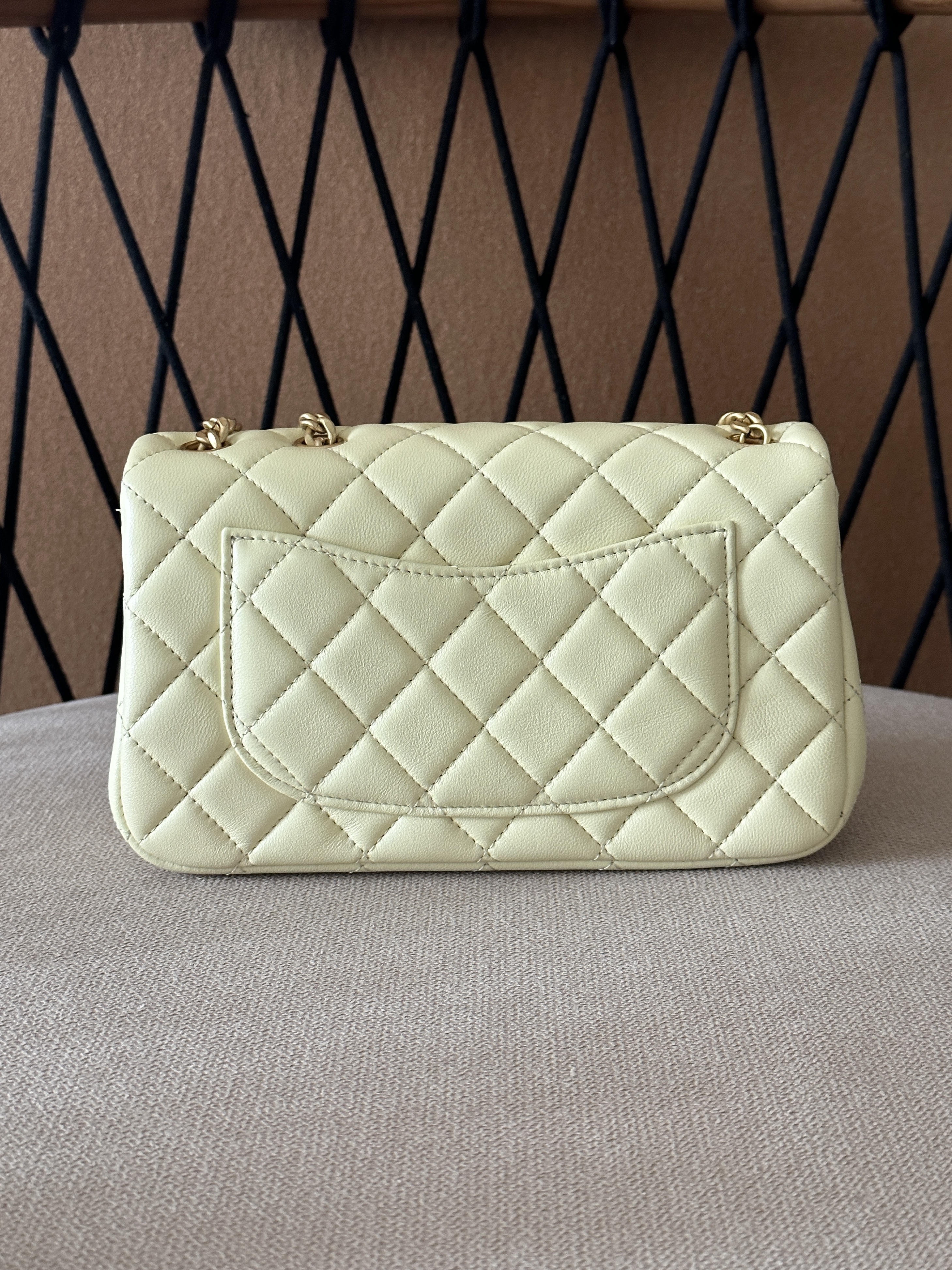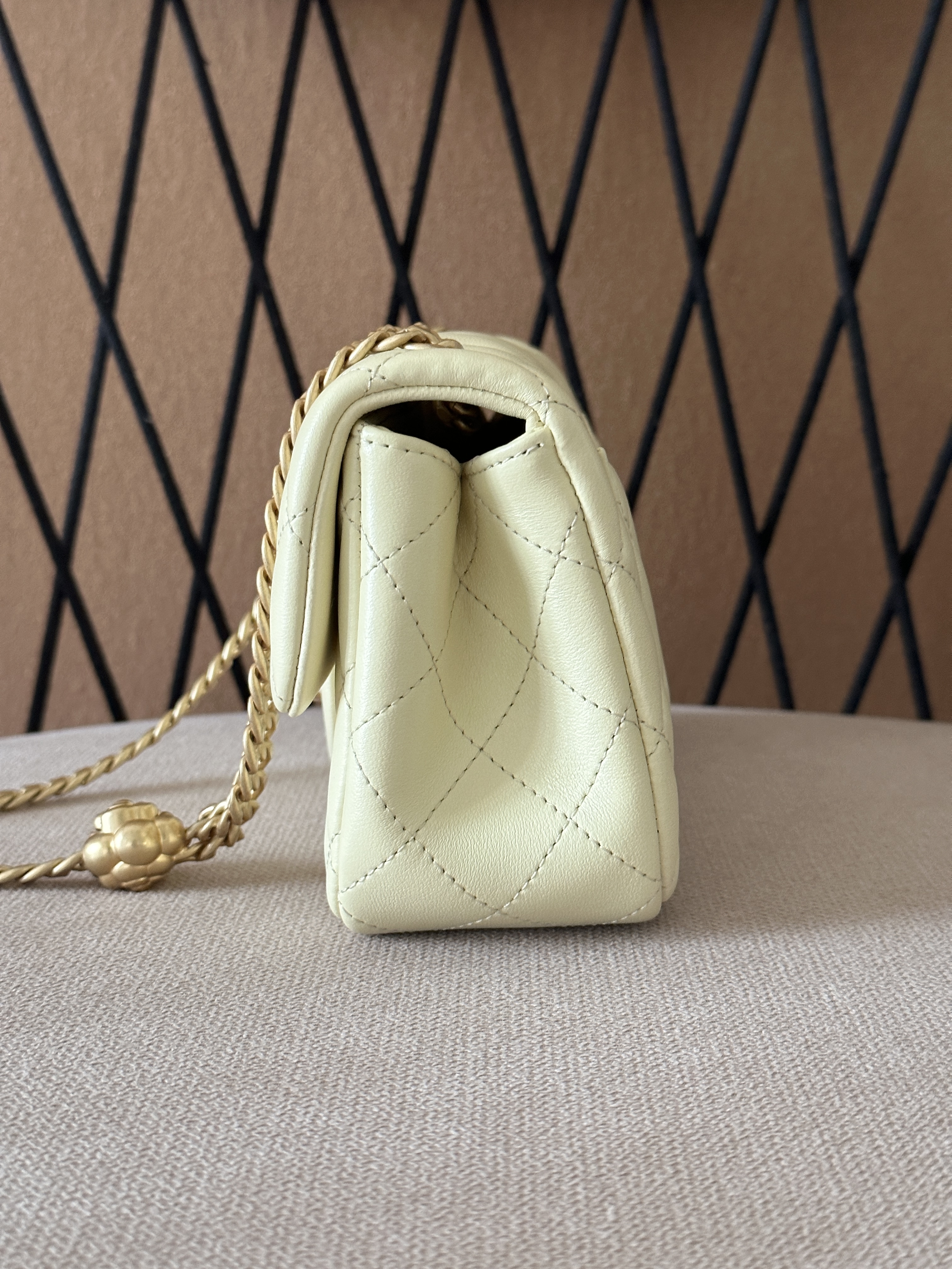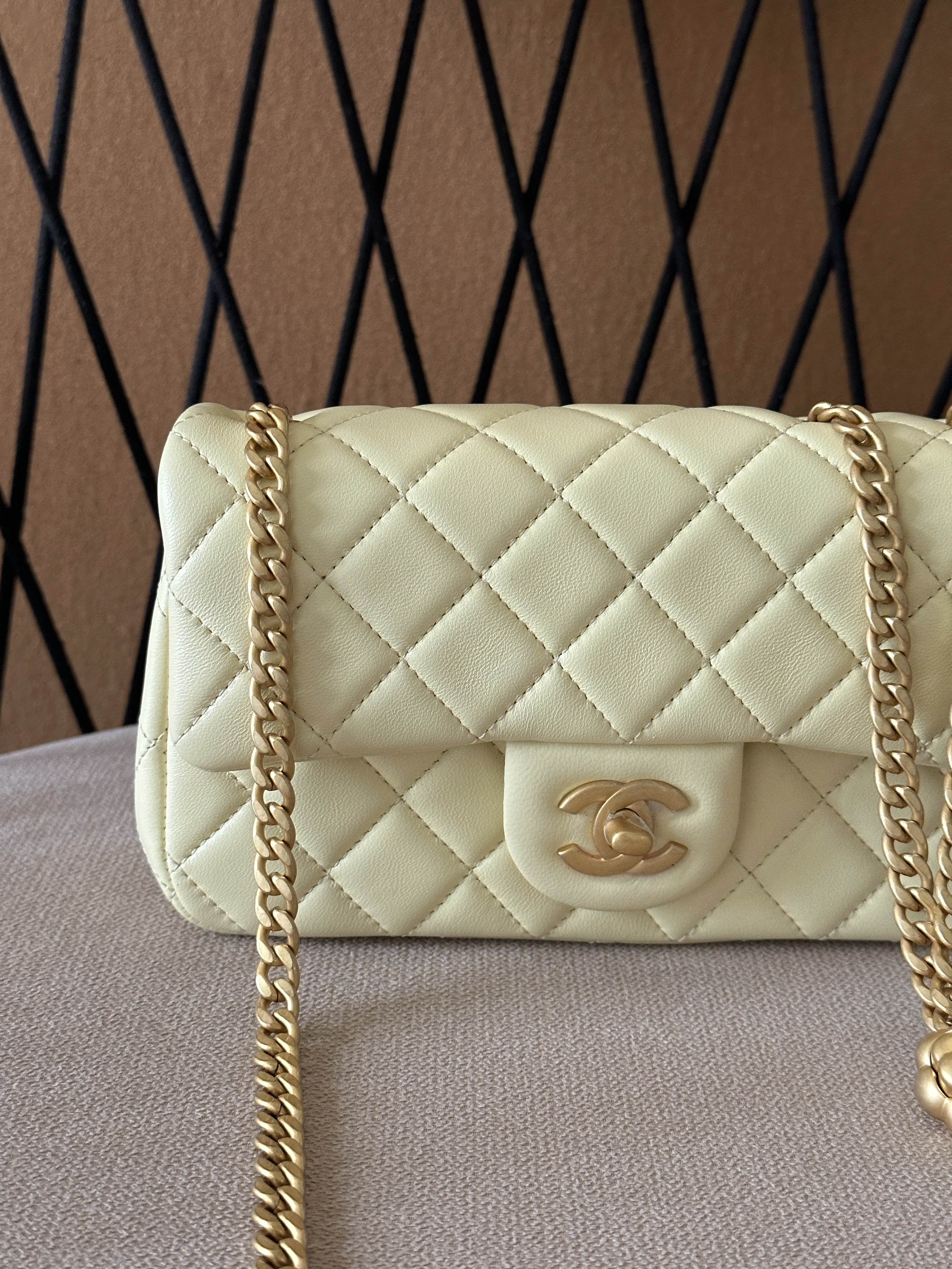 香奈儿 23S CF大mini 羊皮链条包 淡黄色