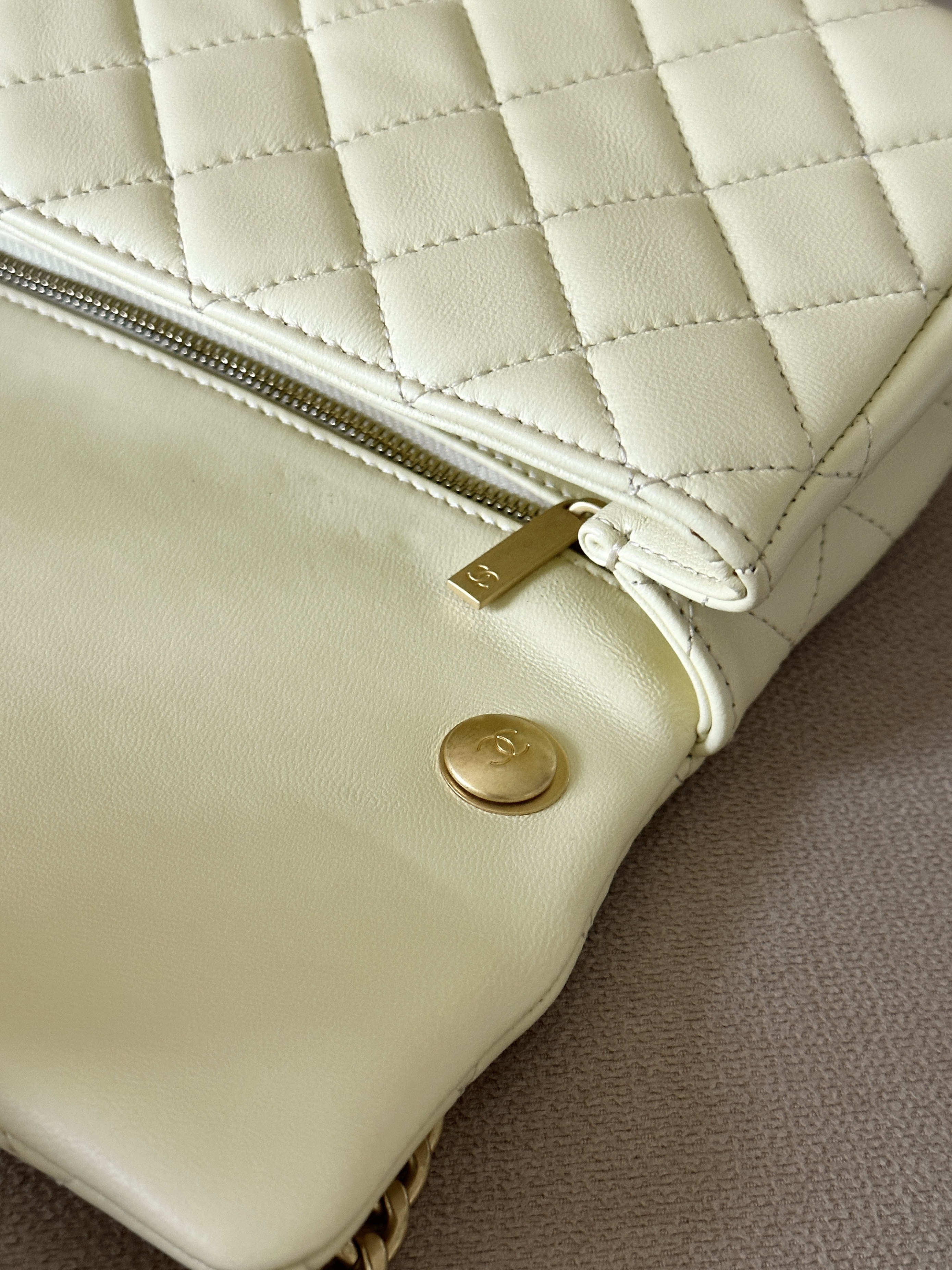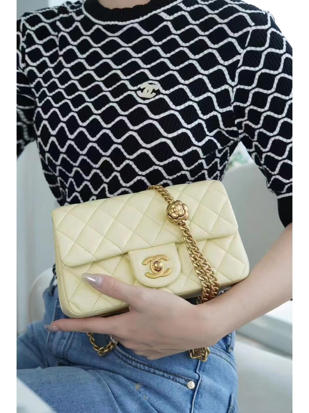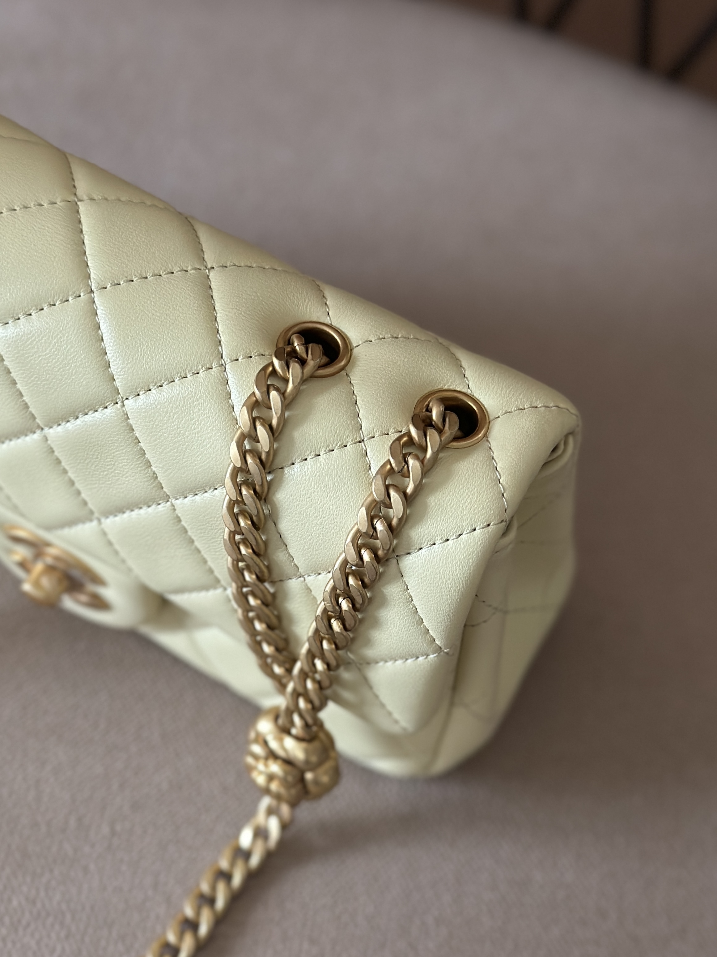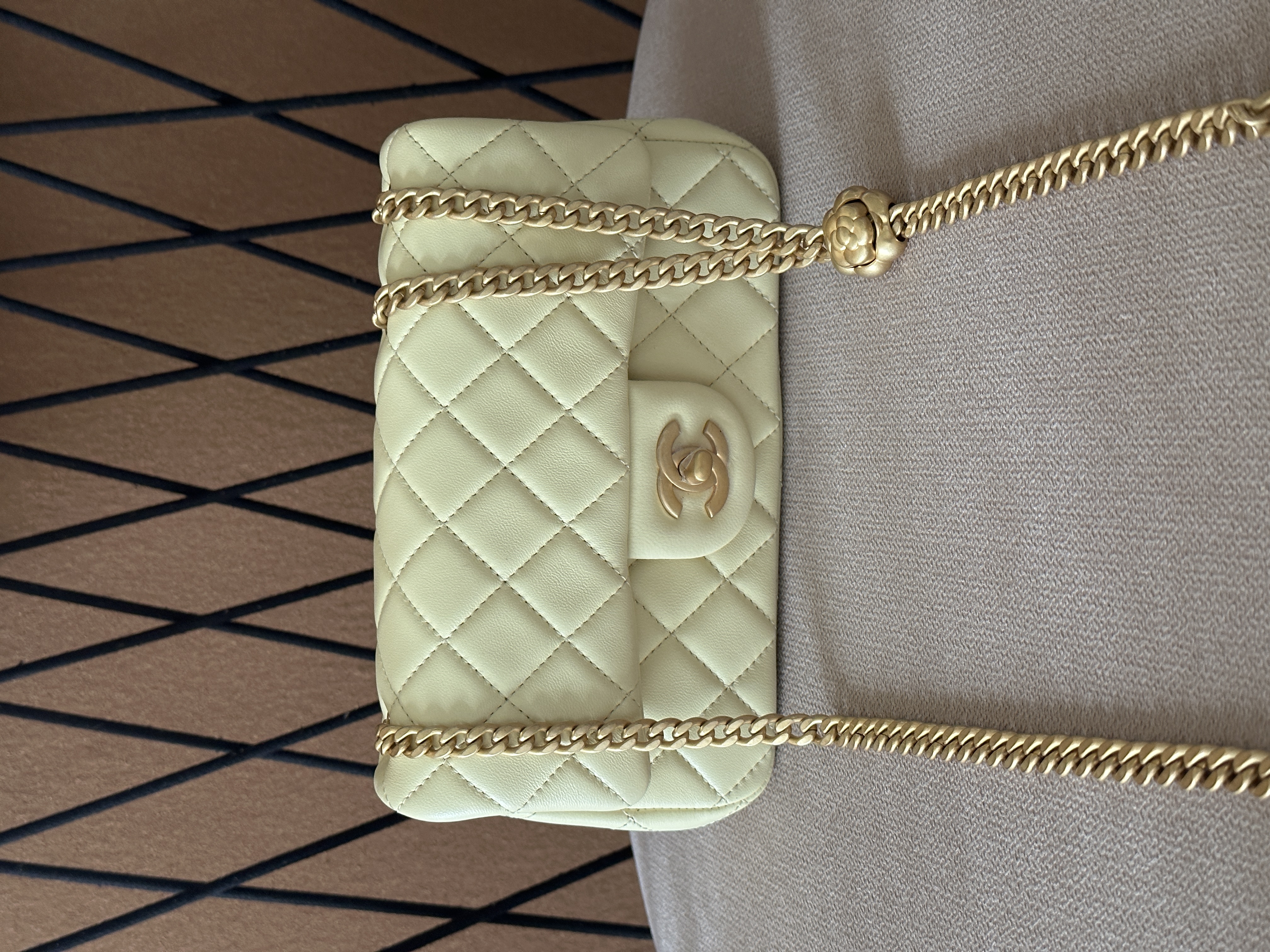 香奈儿 23S CF大mini 羊皮链条包 淡黄色