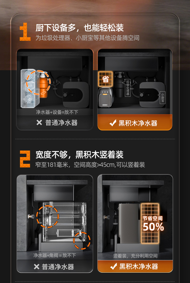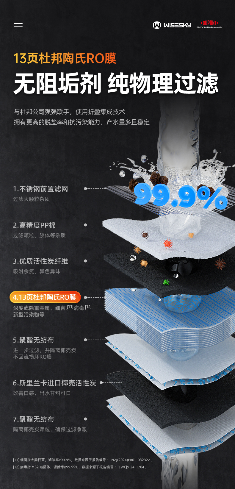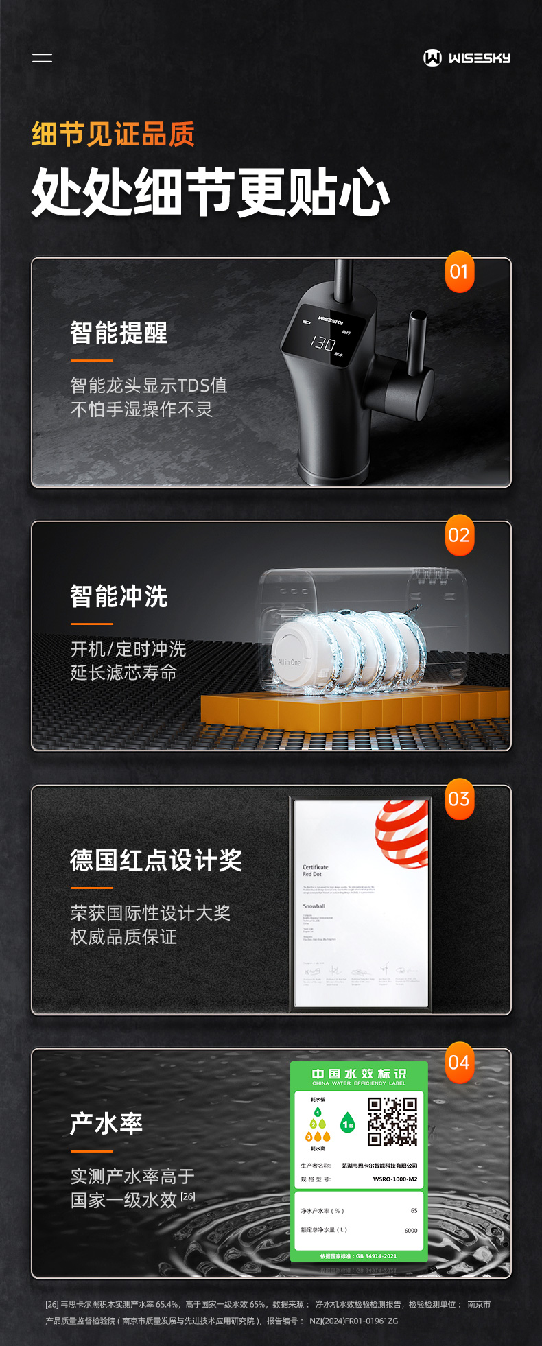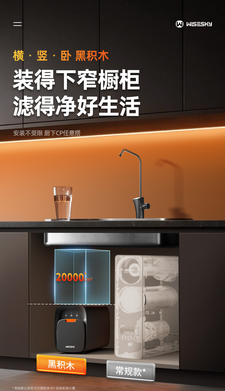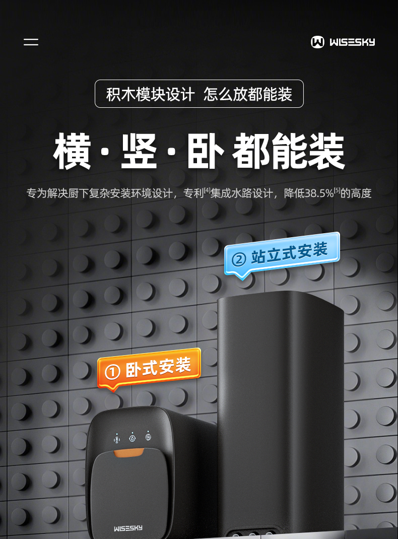 韦思卡尔WSRO-1000-M2黑积木ro反渗透净水器直饮自来水净水机