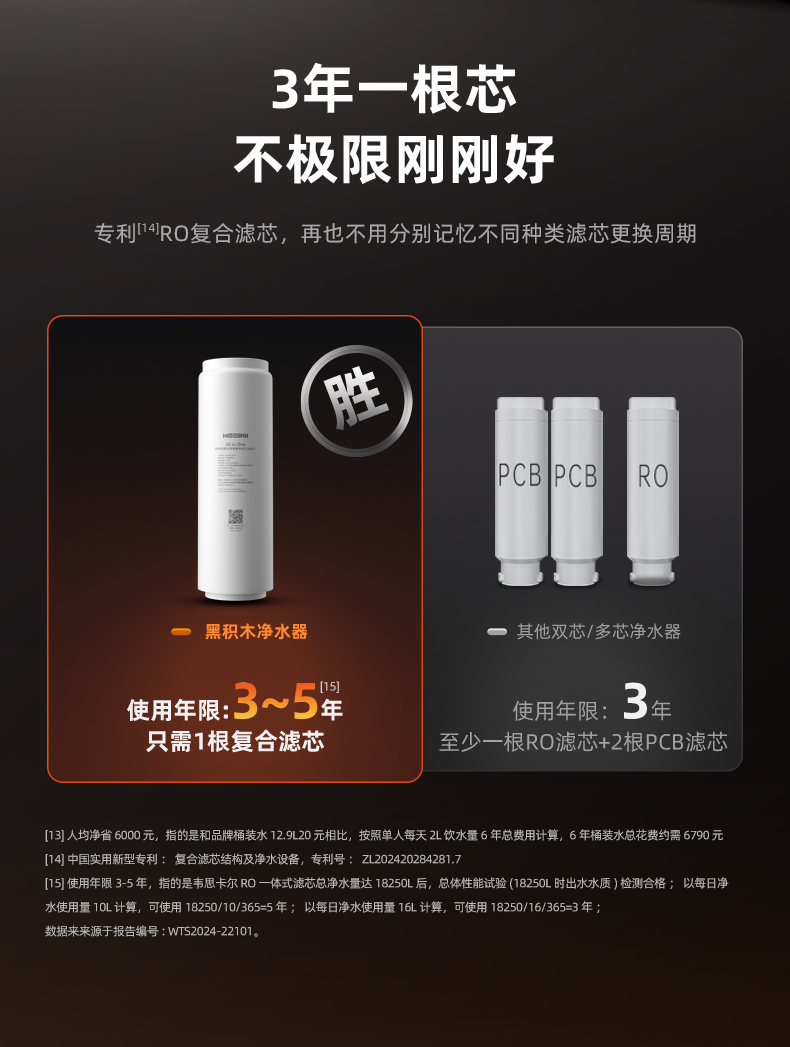 WISESKY黑积木C2全厨盒子原装活性炭净水机一体式炭纤维复合滤芯WSKP-100-C