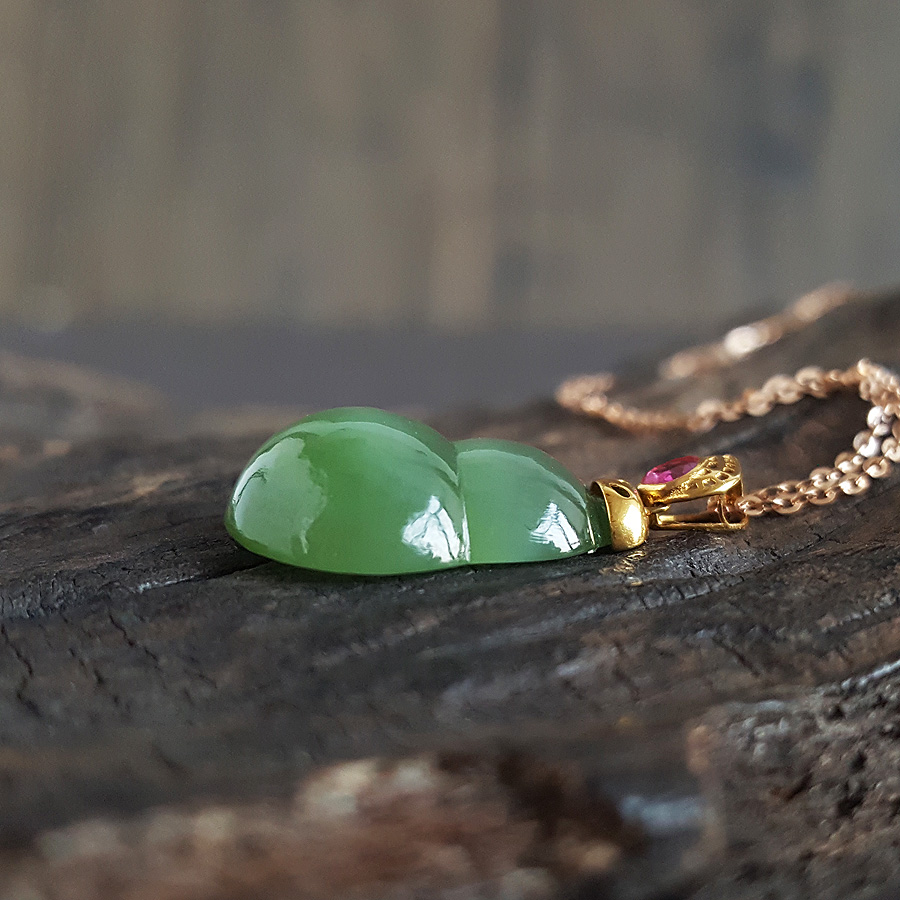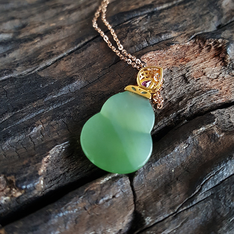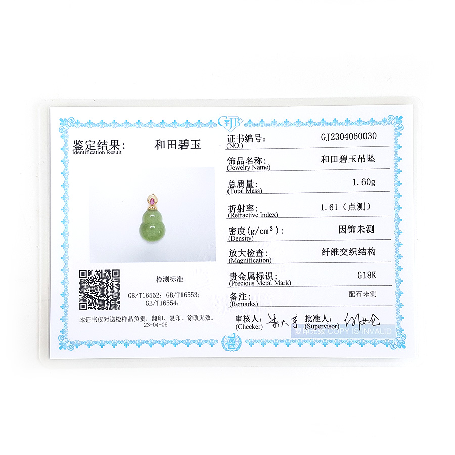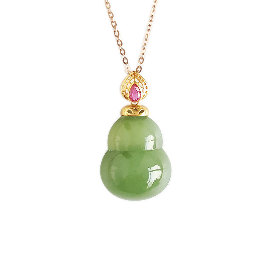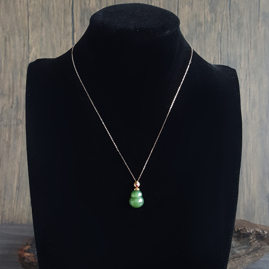 【天然正品】天然葫芦造型和田玉碧玉AU750黄金吊坠项链22.5*12.4*5.0MM(皆取最大值) 040124XY03特价