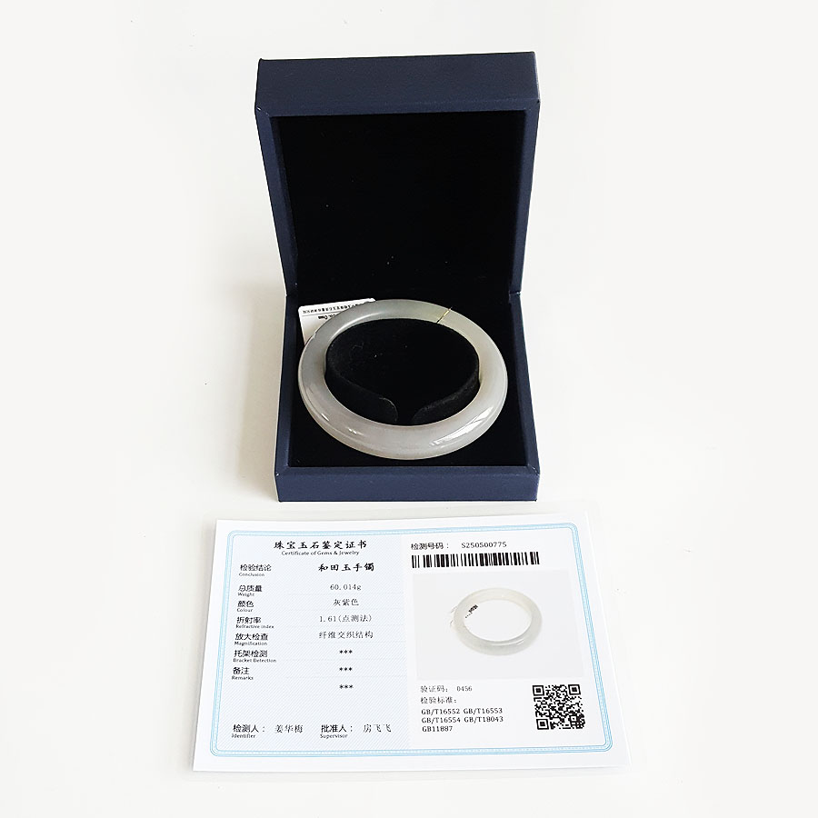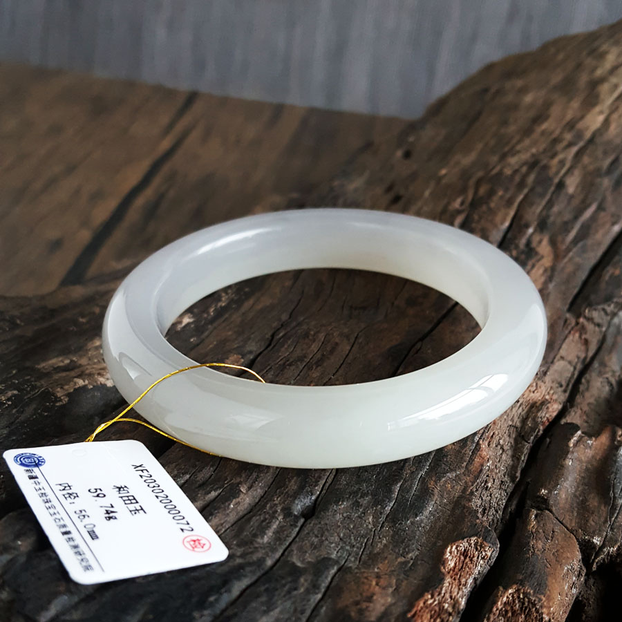 名称 | 天然无杂裂青海料烟紫56号和田玉手镯 |