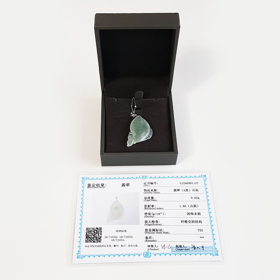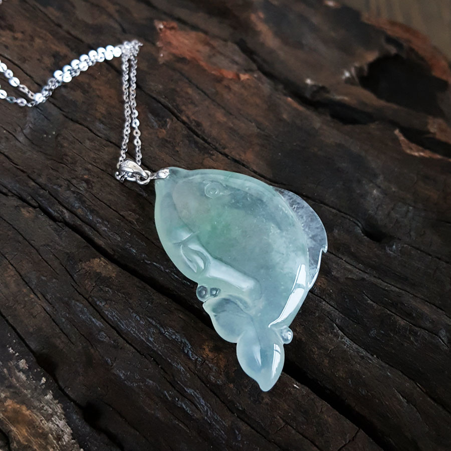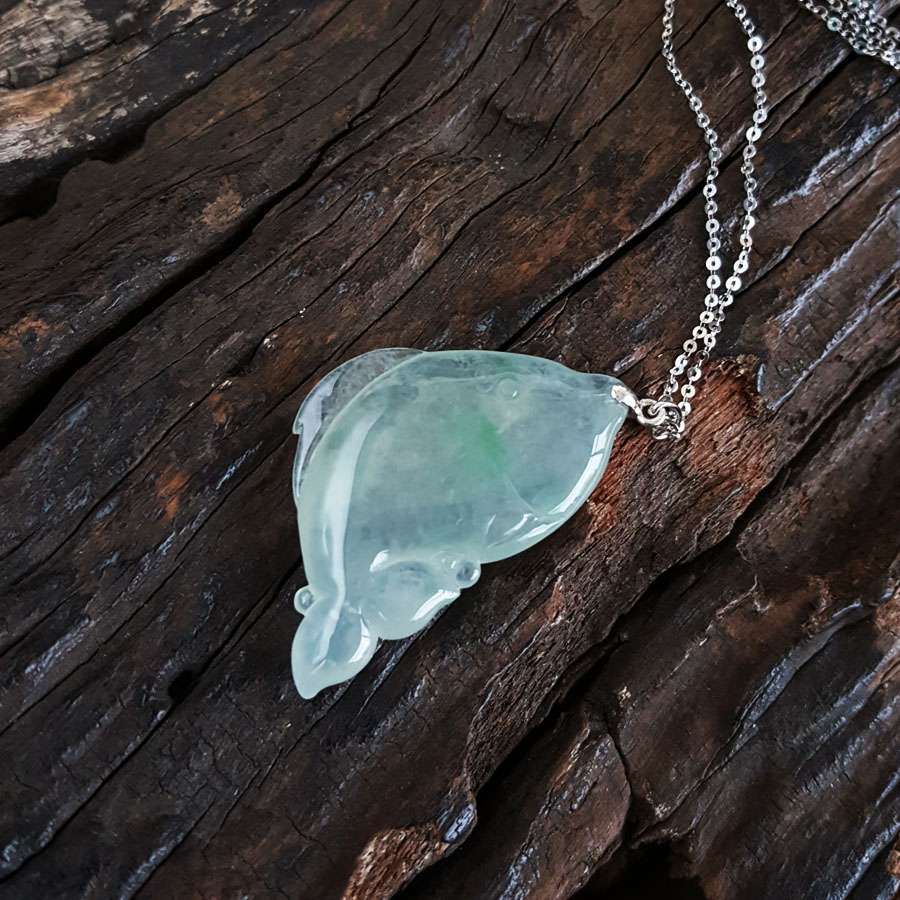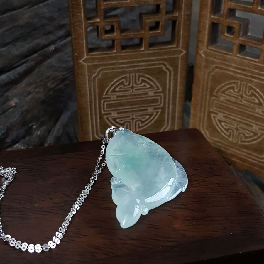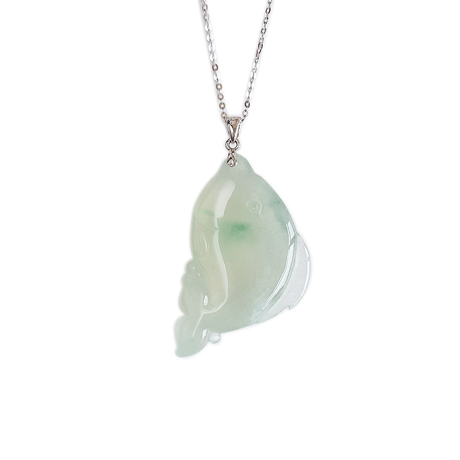名称 | AU750精品白金镶天然高冰种鱼(连年有余)翡翠吊坠项链 |