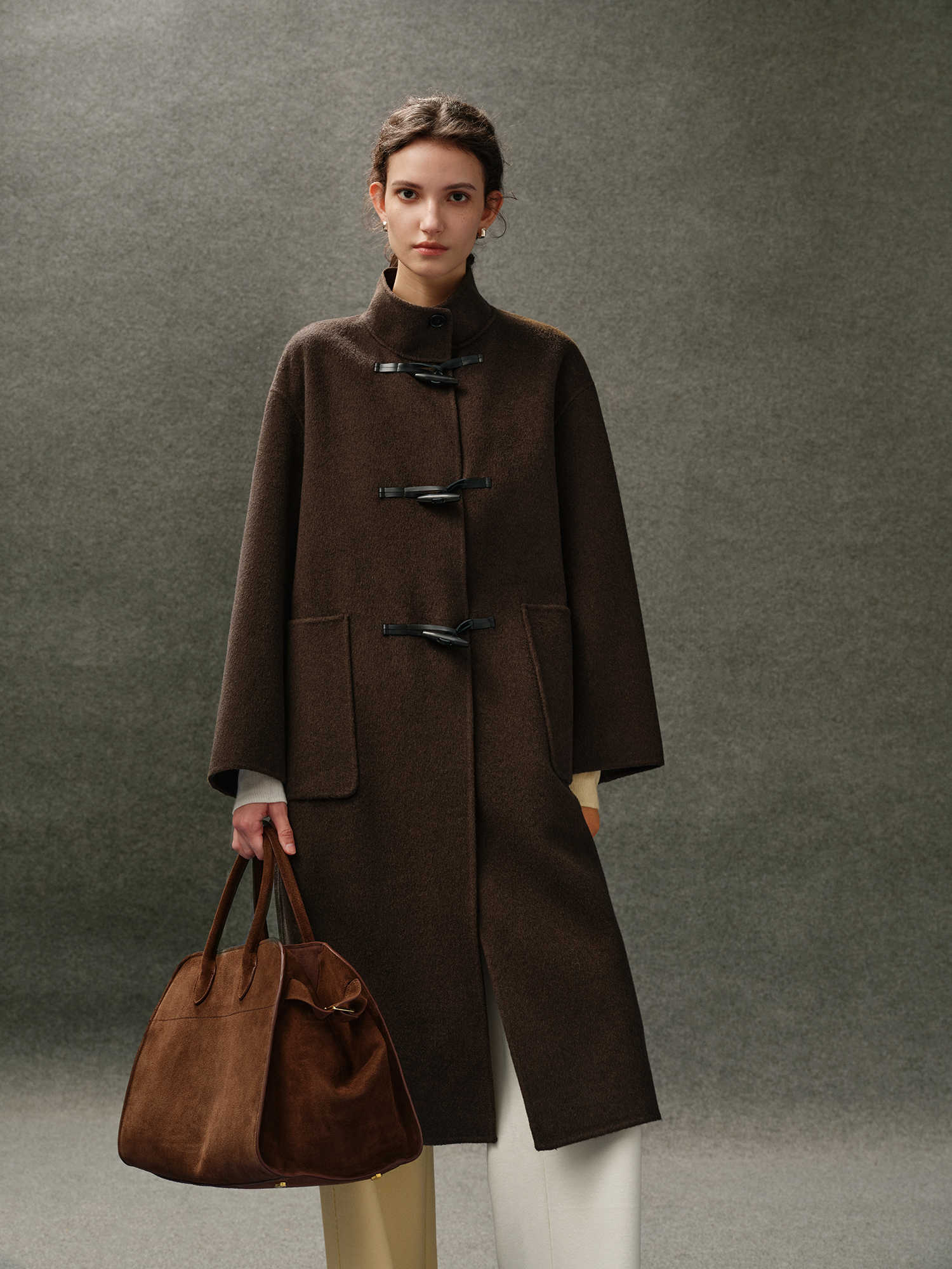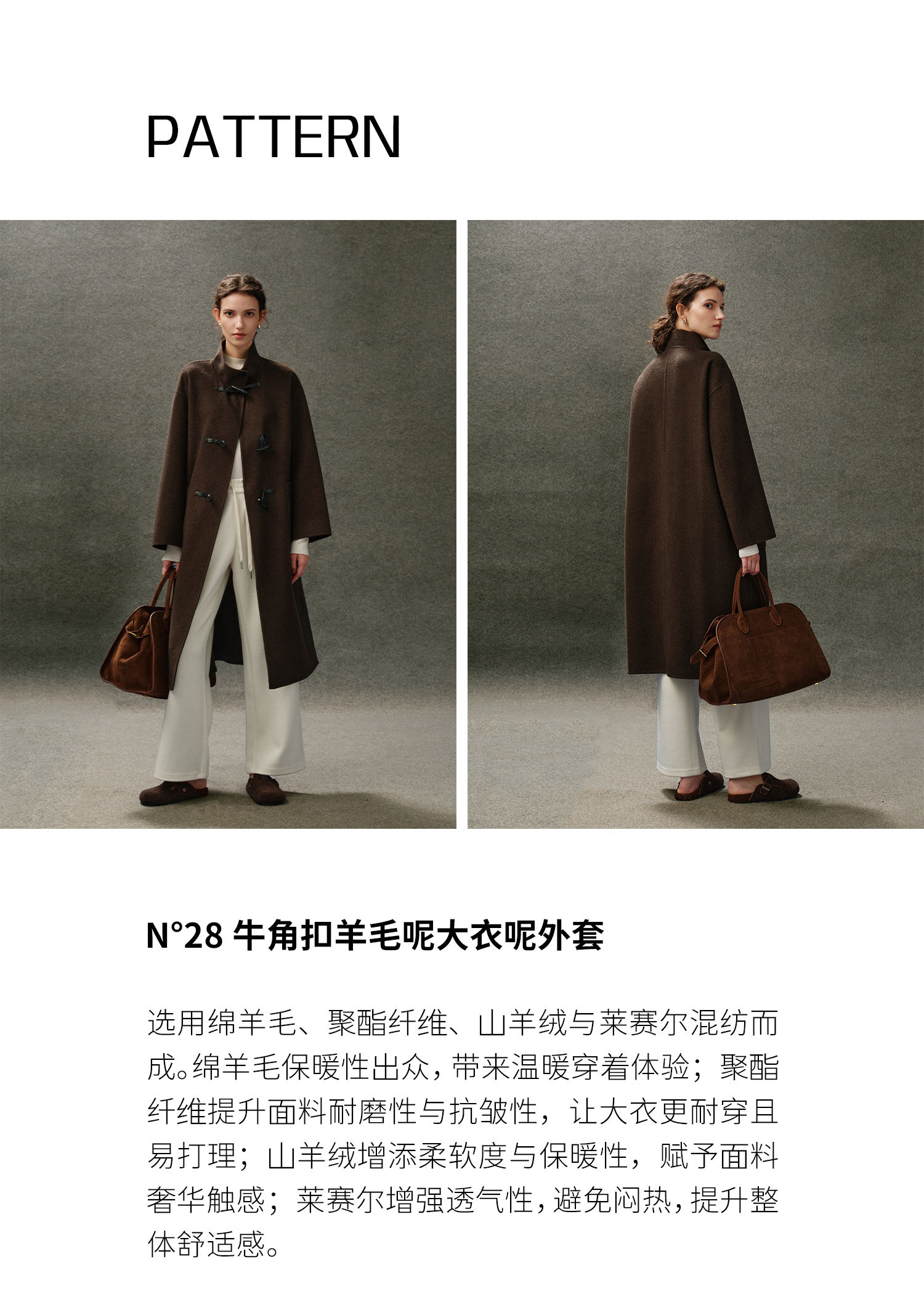 N°28【情书大衣】女秋冬长款/短款皮质牛角扣高级毛呢外套 8855A1D522/8855A1D525 -12.14直播