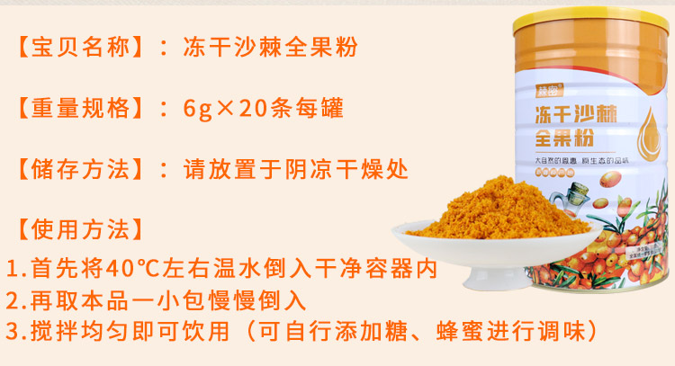 棘密 新疆沙棘冻干果粉 大果沙棘纯 全果粉不添加 新果鲜做 120g(6g*20袋)/1罐AWJM