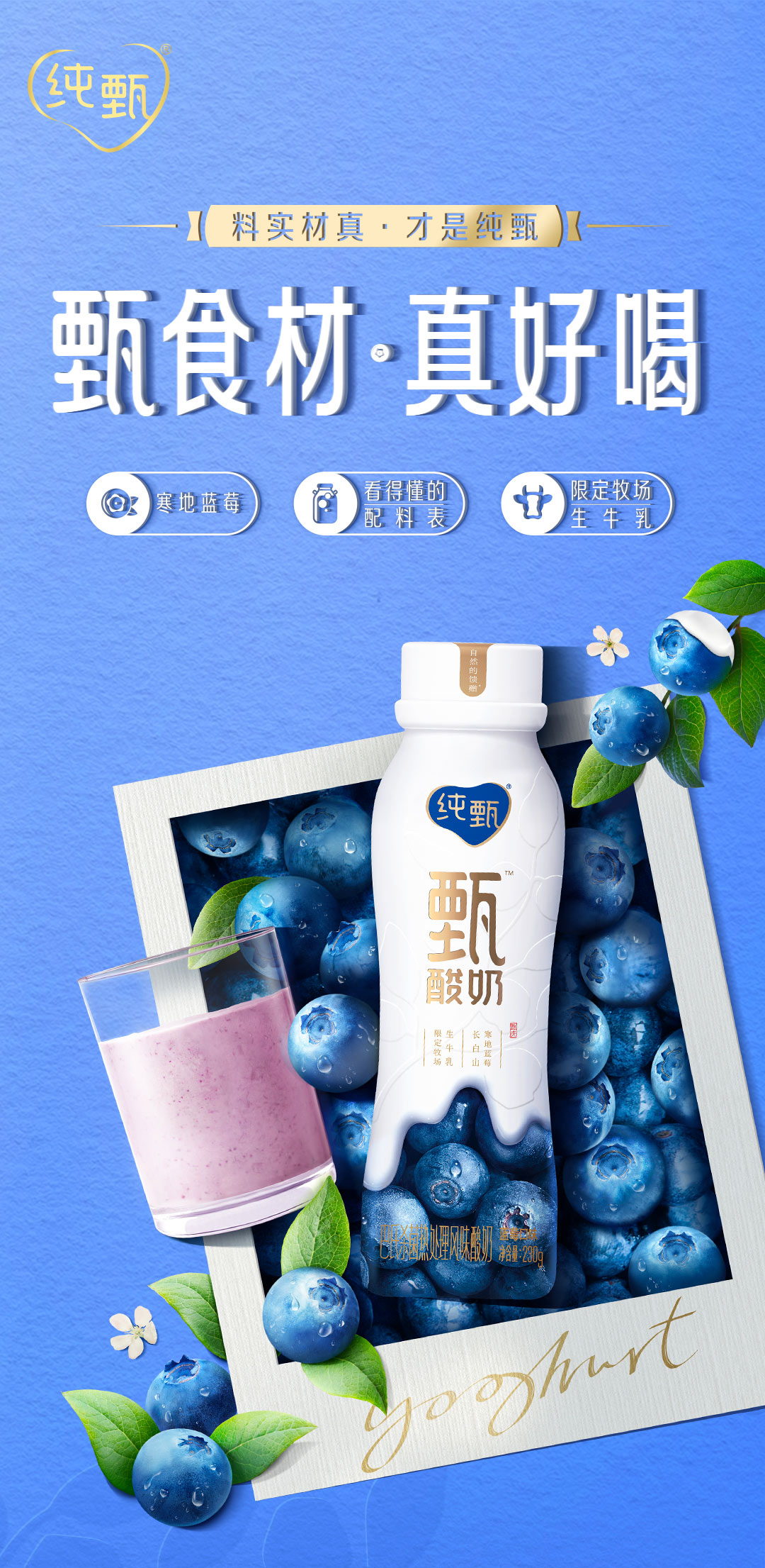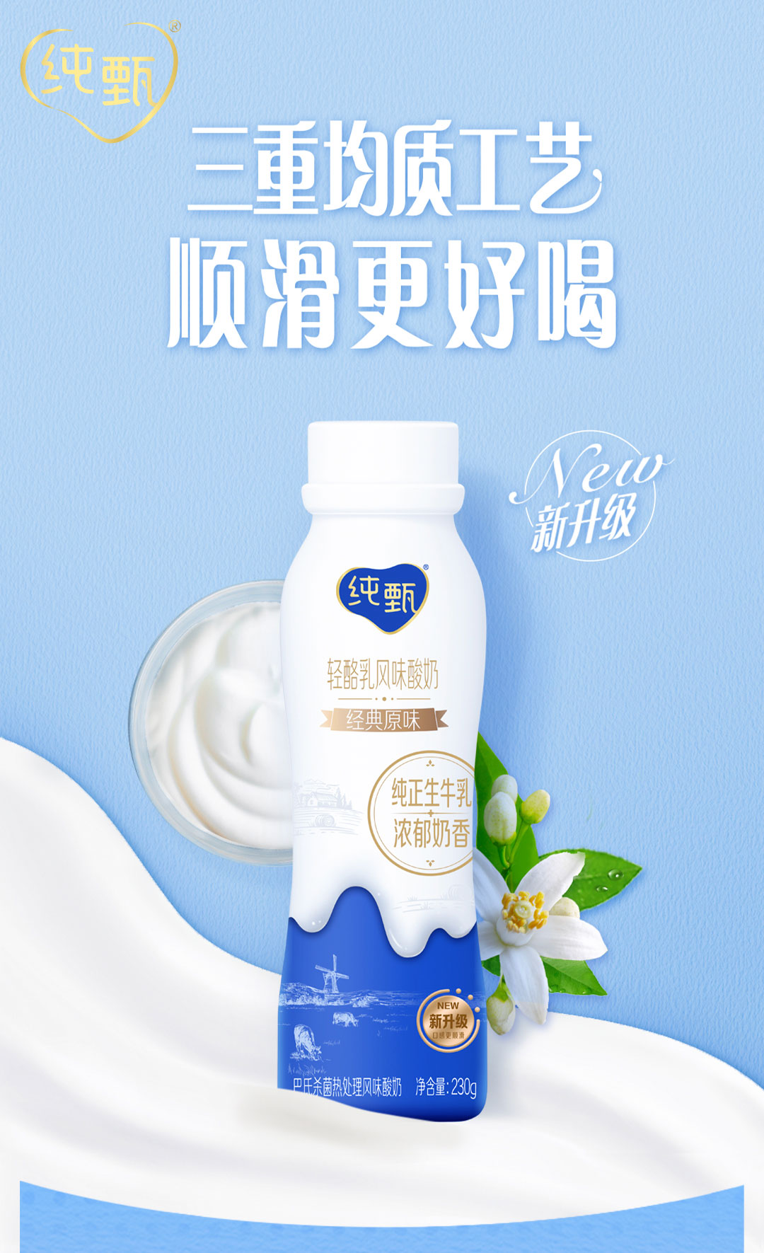 纯甄原味轻酪乳/甄酸奶蓝莓味风味酸牛乳 230g×10瓶 (新老包装随机发货) 生产日期:2025/1/13