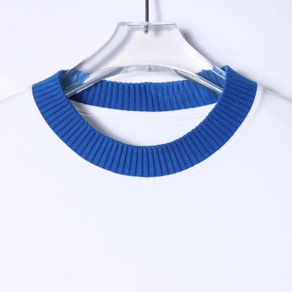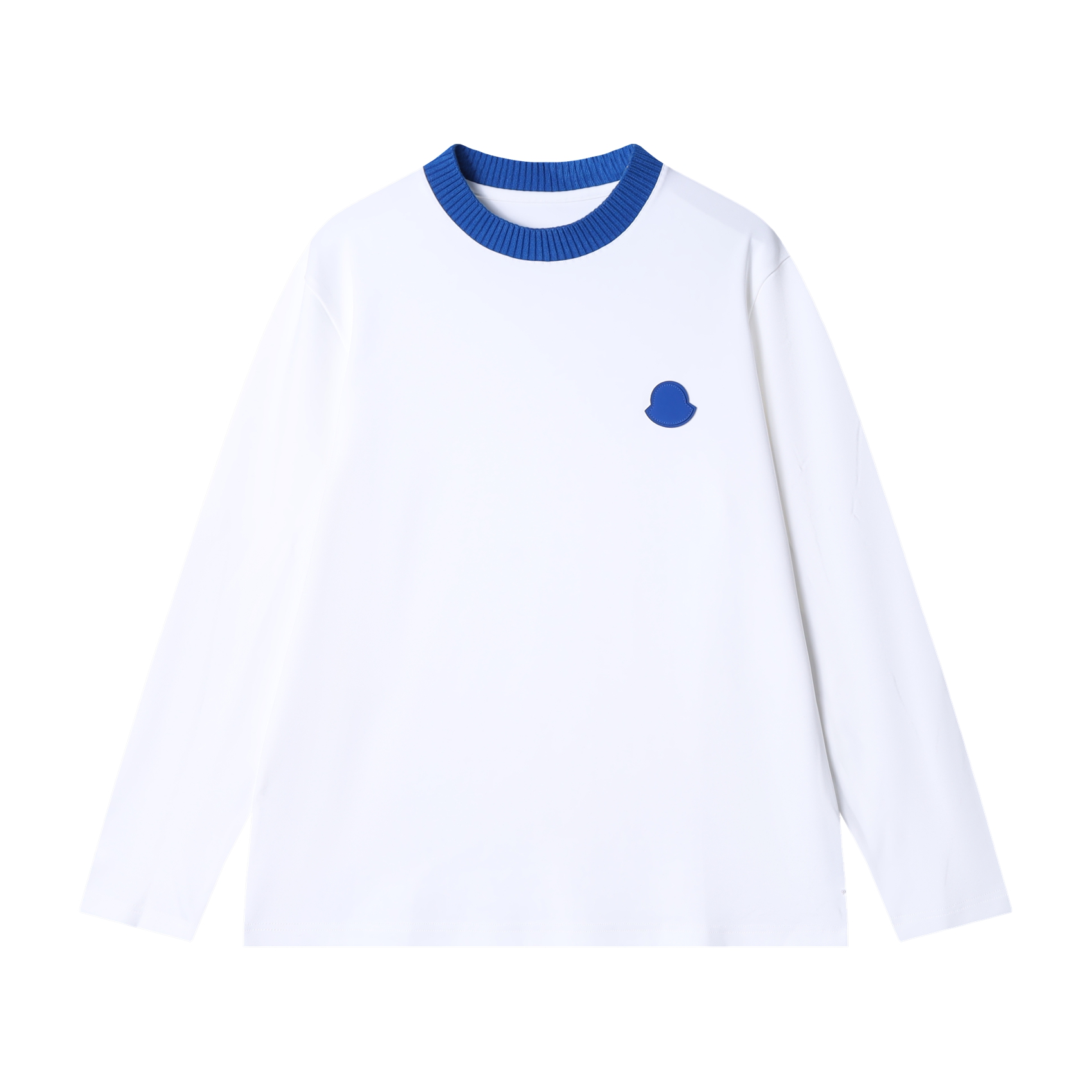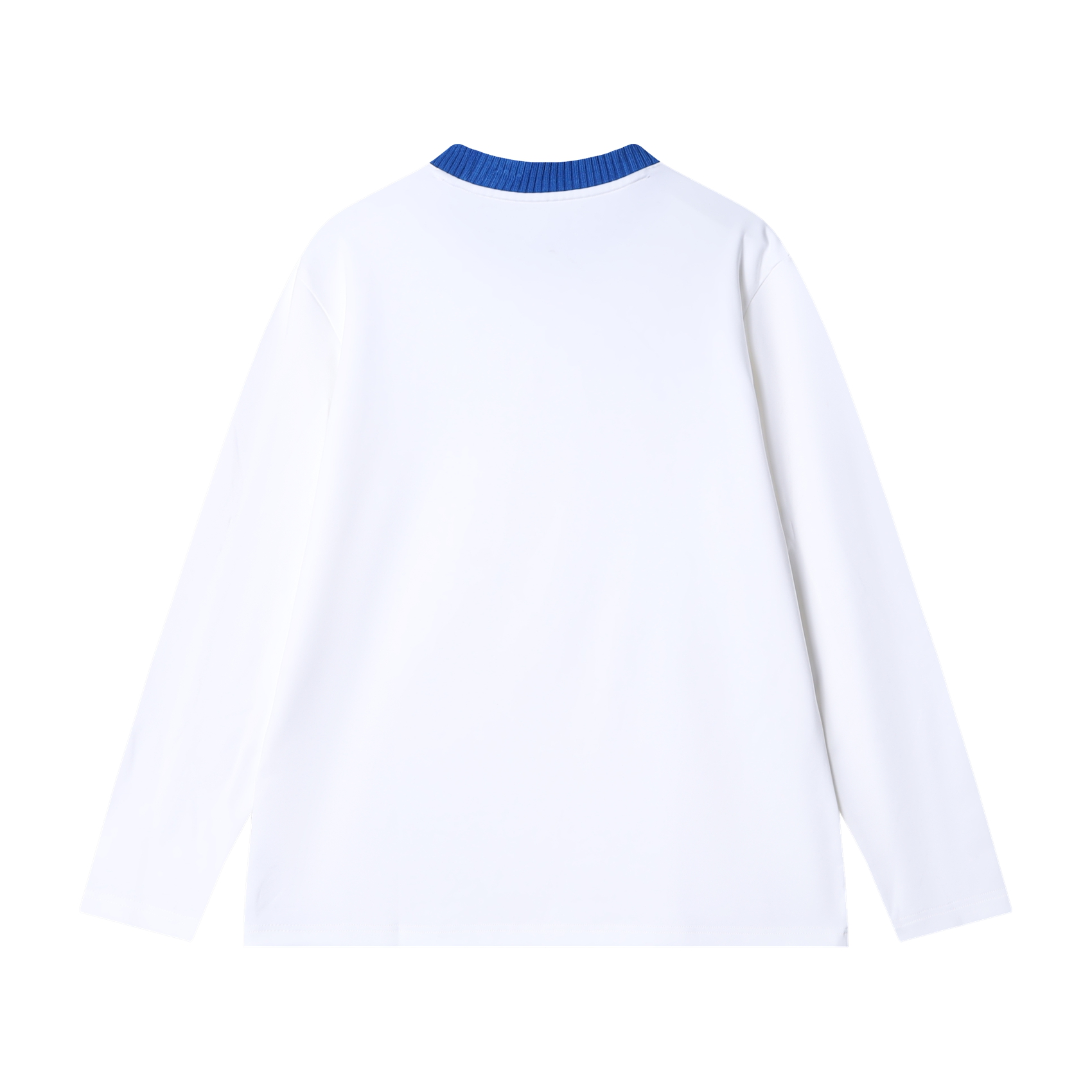 T2250春夏新款时尚个性韩版蓝白撞色圆领长袖T恤百搭潮流套头打底衫