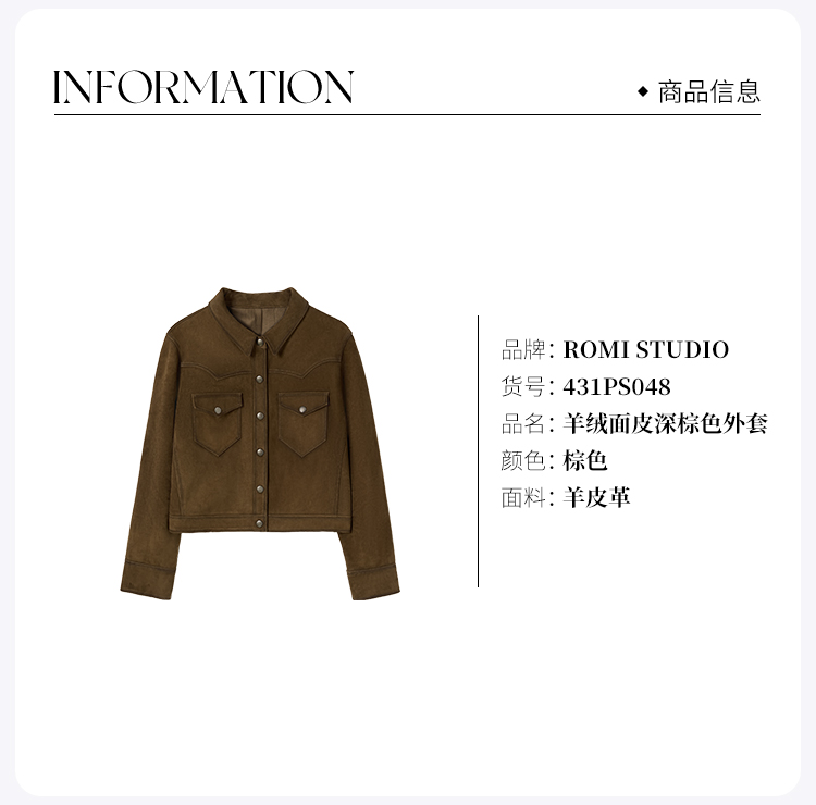 ROMI STUDIO“棕标甄选” 沙特进口绒面羊皮复古短款皮衣 431PS048