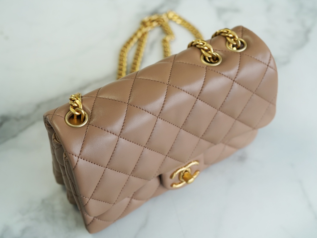 本季的大爆款 ,新链条口盖包,经典的????包型搭配可调节金珠扣,双C ????????浮雕设计,五金配以简单的素金链,打破了经典的链条设计,既有浓郁的秋冬韵味,又是满满的复古感,经典又与众不同,你心动了吗??
