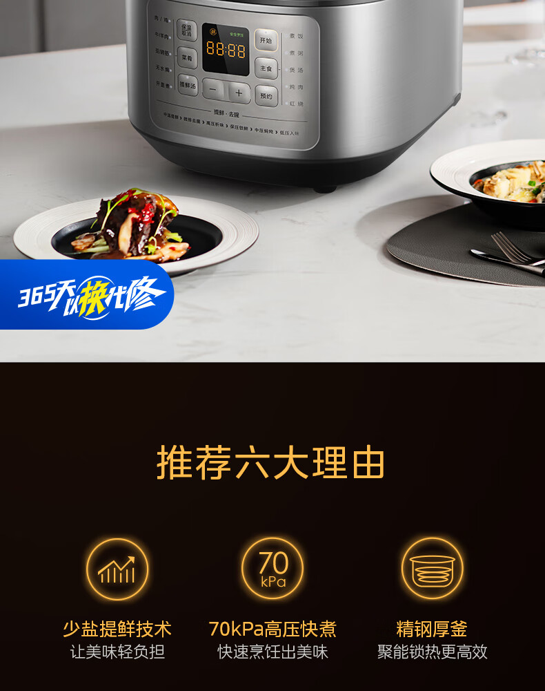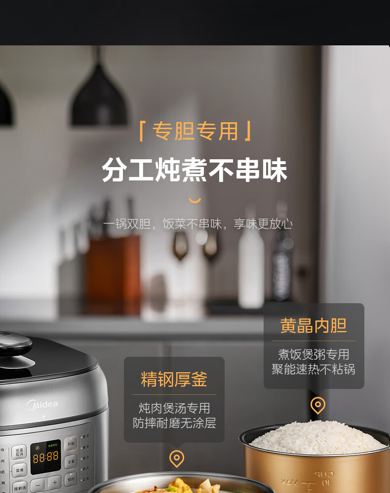 美的(Midea) 少盐提鲜压力锅电压力锅高压力锅不锈钢/不粘内胆智能调压一锅双胆WiFi互联 线下同款 MY-C543G(5L不锈钢+不粘内胆)