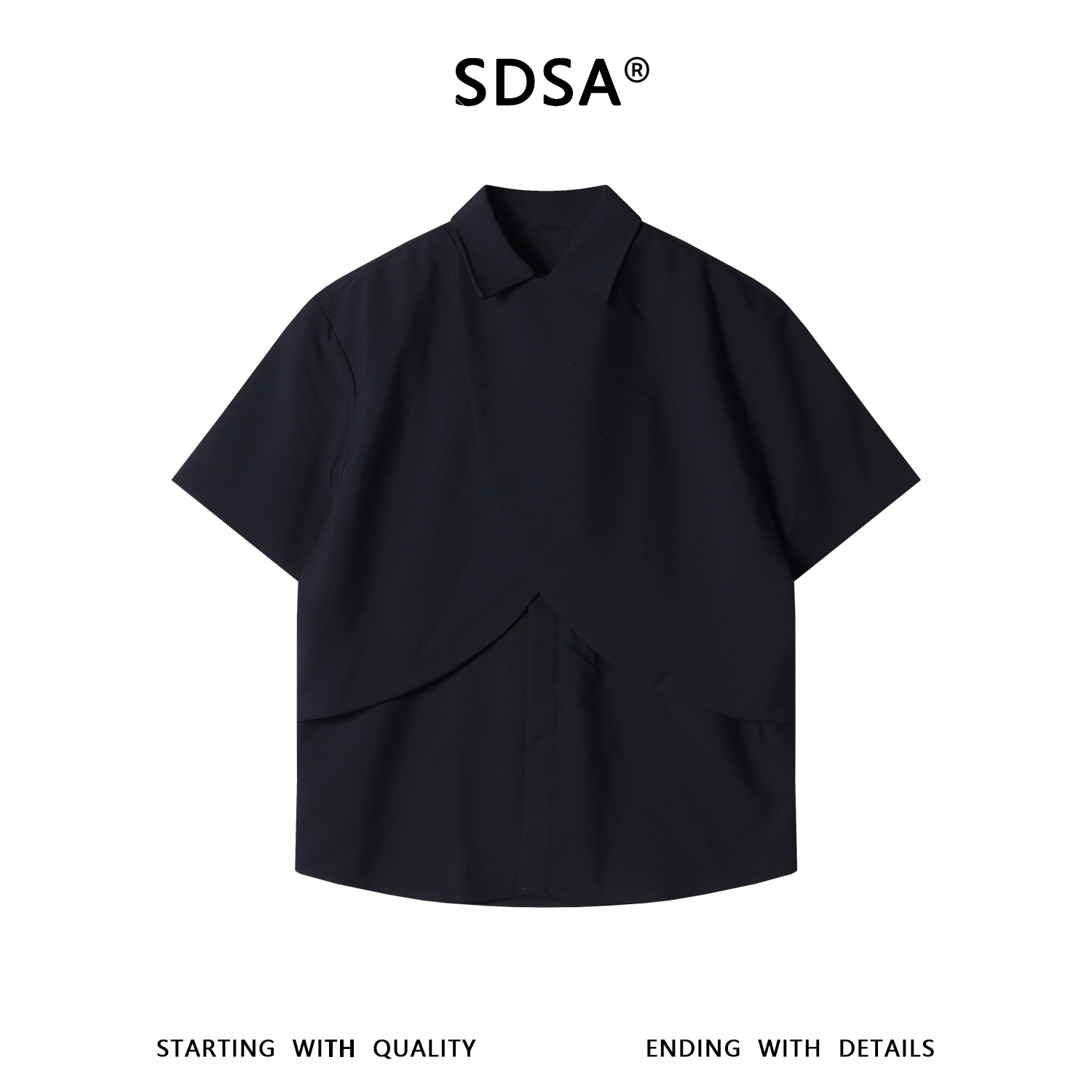 SDSA男装2026新款轻奢时尚假两件短袖衬衫不规则剪裁衬衣百搭