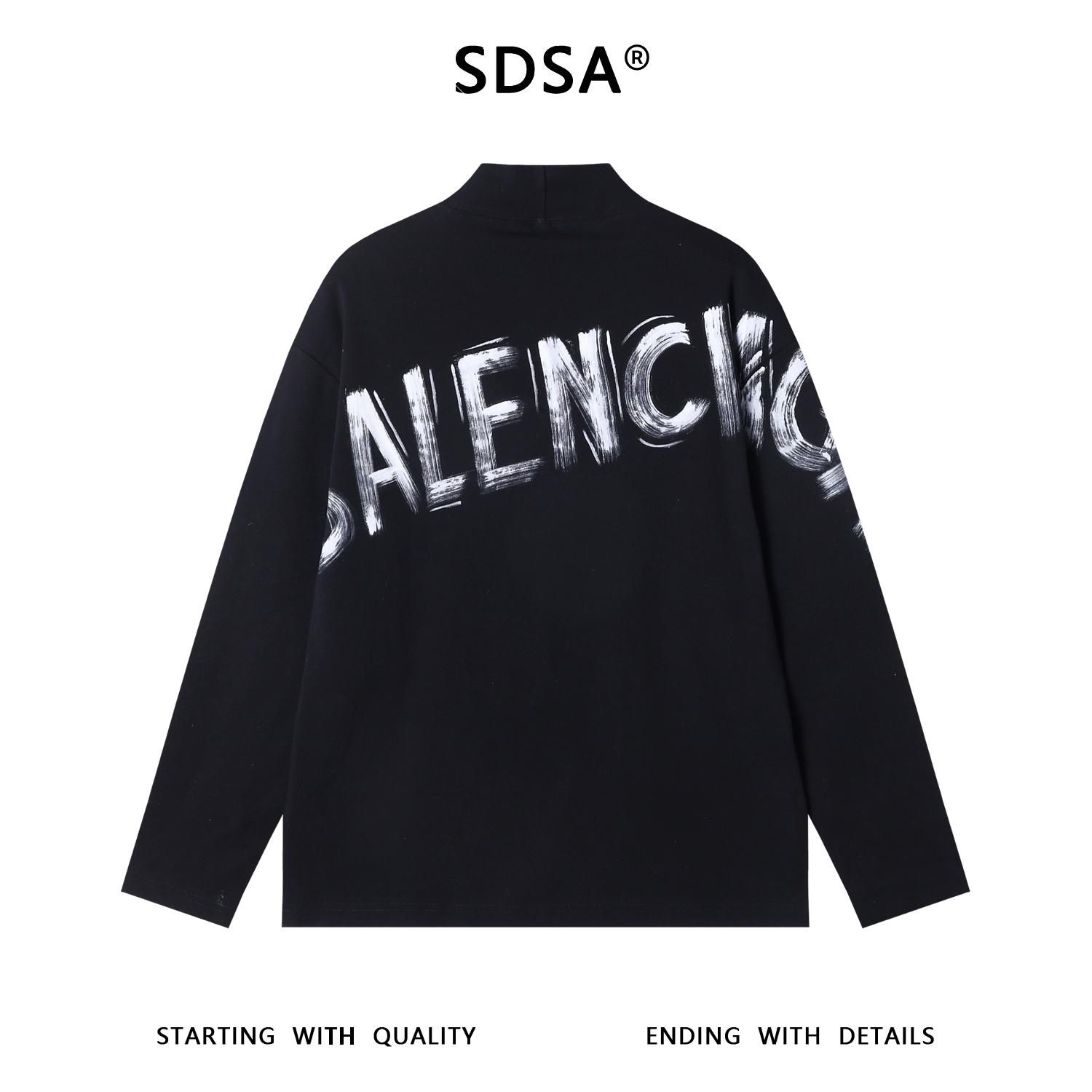 SDSA秋冬新款痞帅男装时尚手绘字母印花半高领长袖T恤百搭时尚