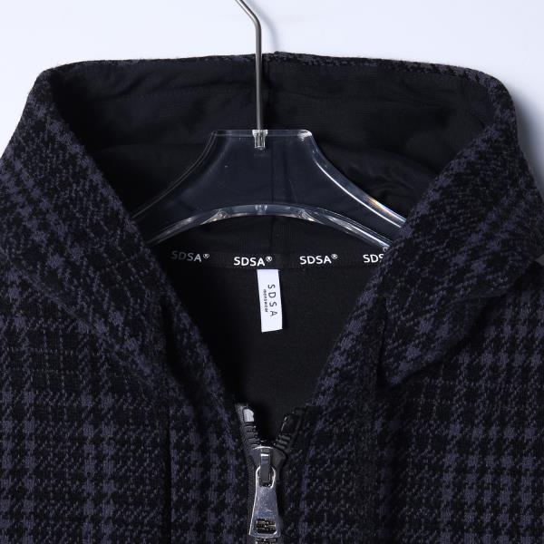 SDSA男士秋冬新款痞帅男装时尚潮牌撞色格子拉链连帽卫衣百搭情侣