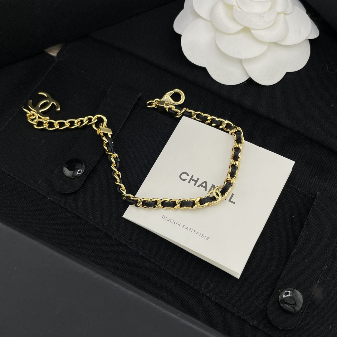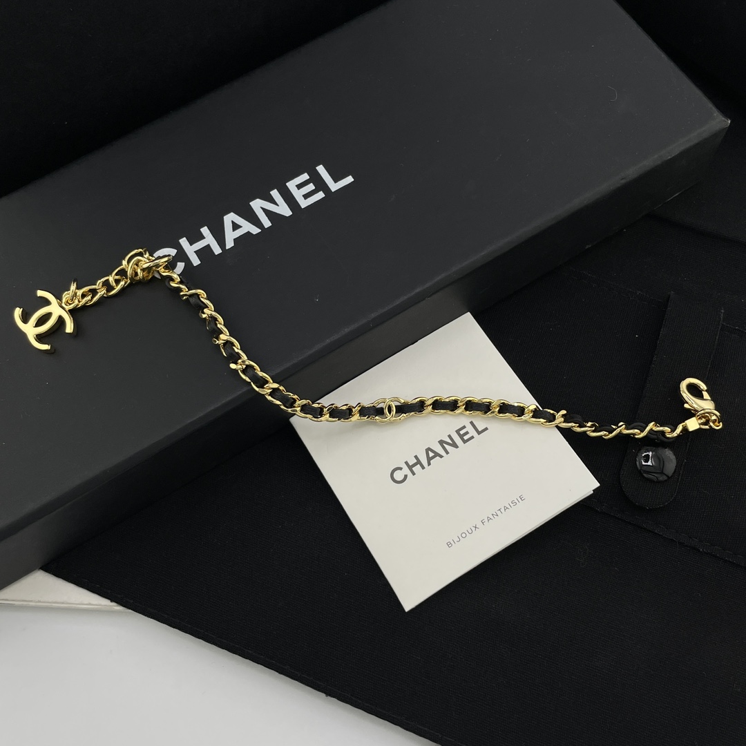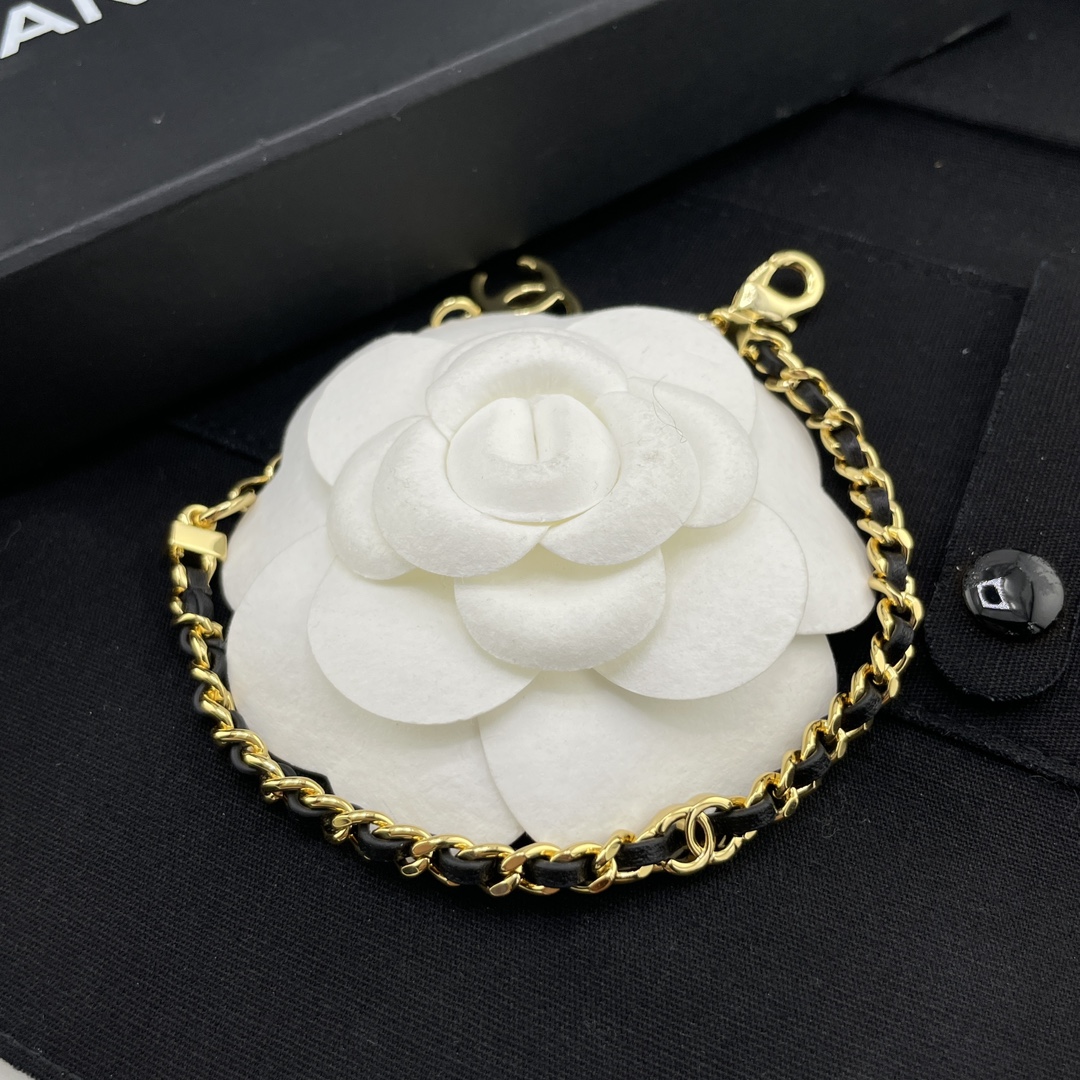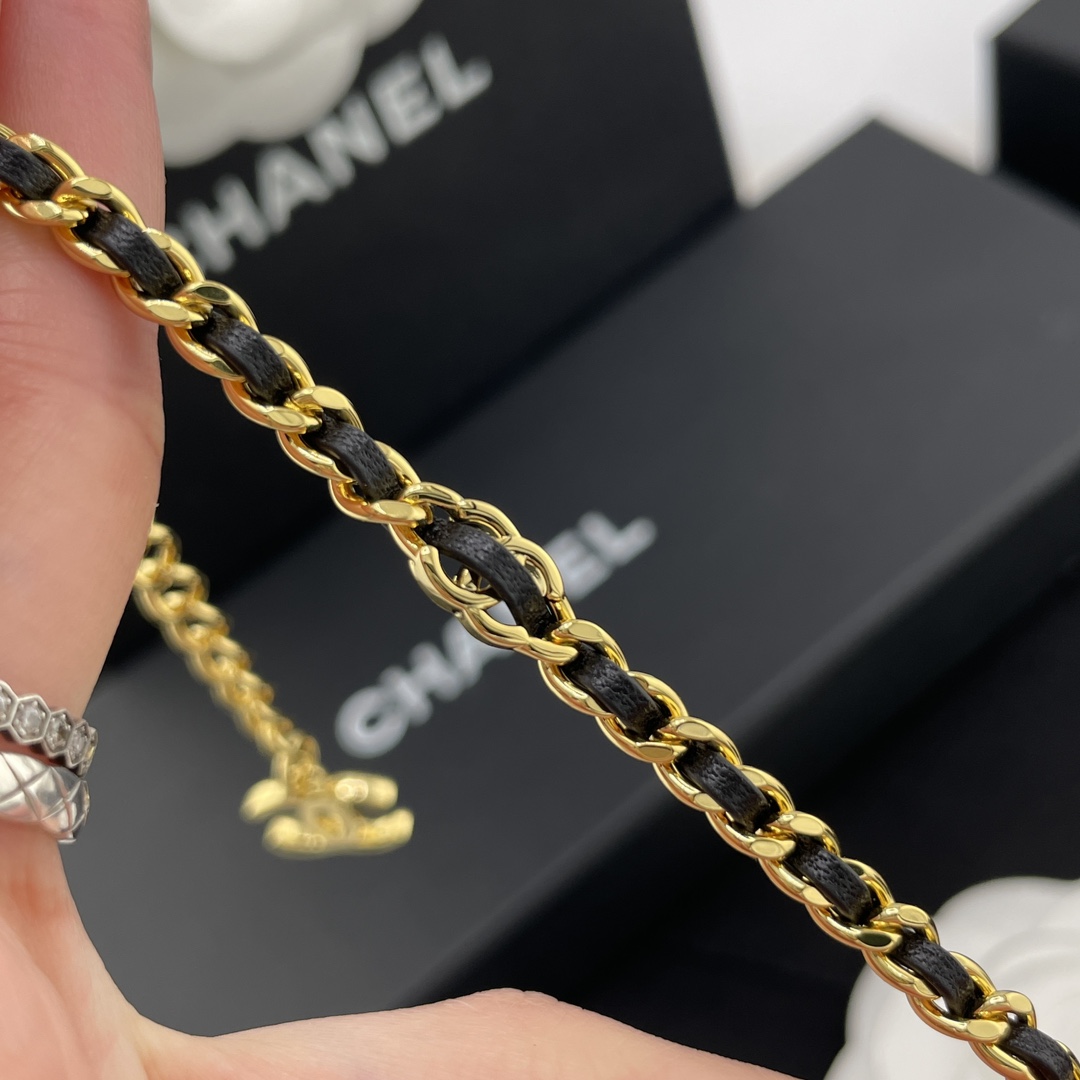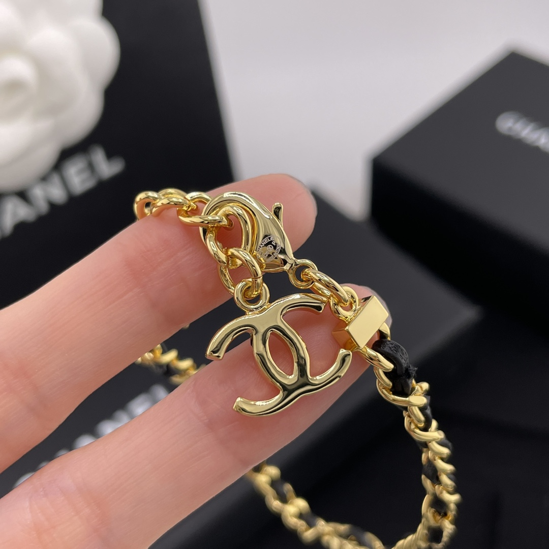 【小香穿皮链小c手链】Z 5700,量大咨询客服!26春夏最新款!现货!老规矩先到先得!按下单顺序发货!!最最最经典的穿皮设计,每季必入的CC系列🤩酷帅不羁中带着复古的经典😍皮穿链➕金色!偏细尺寸,上身更精致时尚!黄金尺寸!延长链可调节长短!简约又有点存在感💗上身简单干练,经典百搭❗️日常通勤必入👍🏻