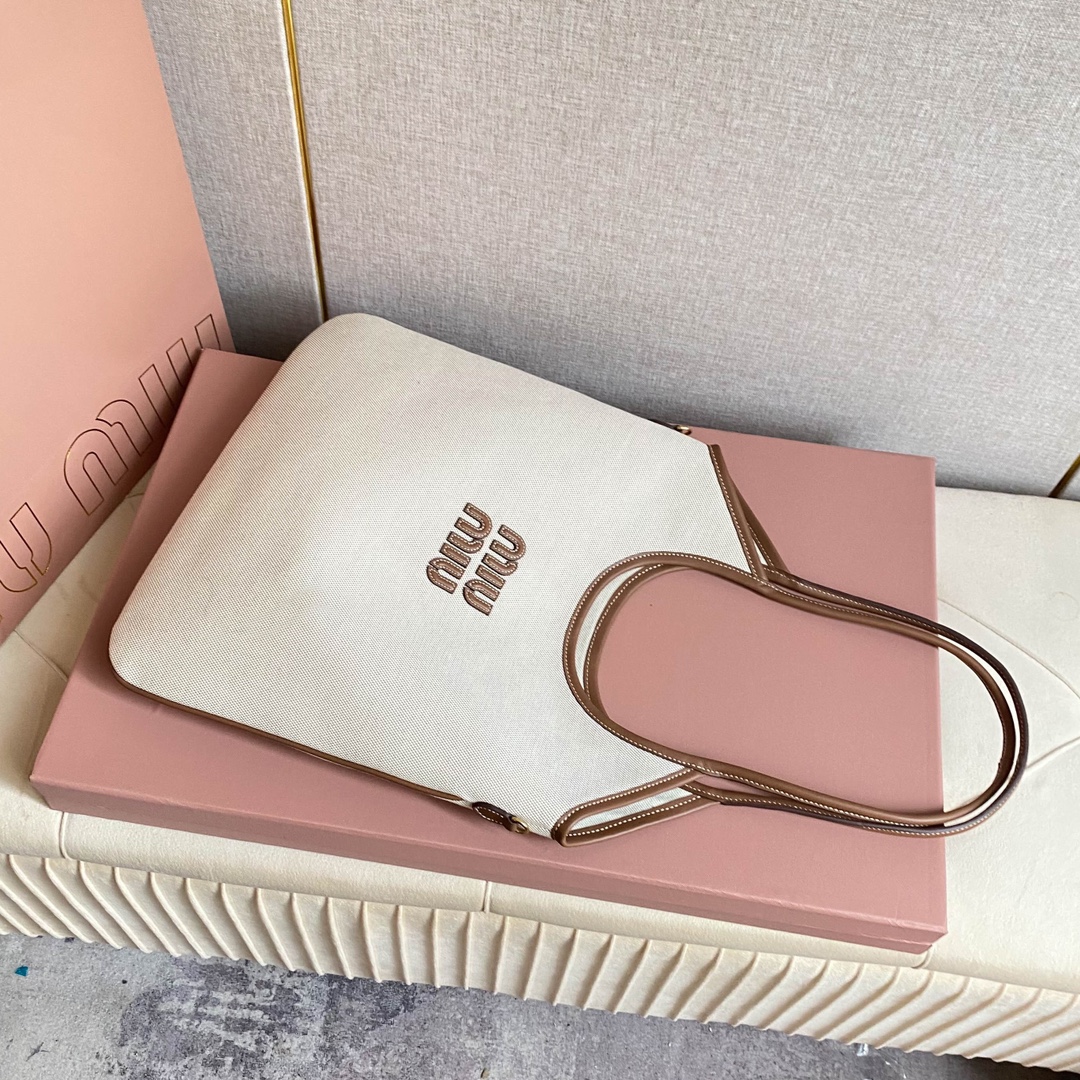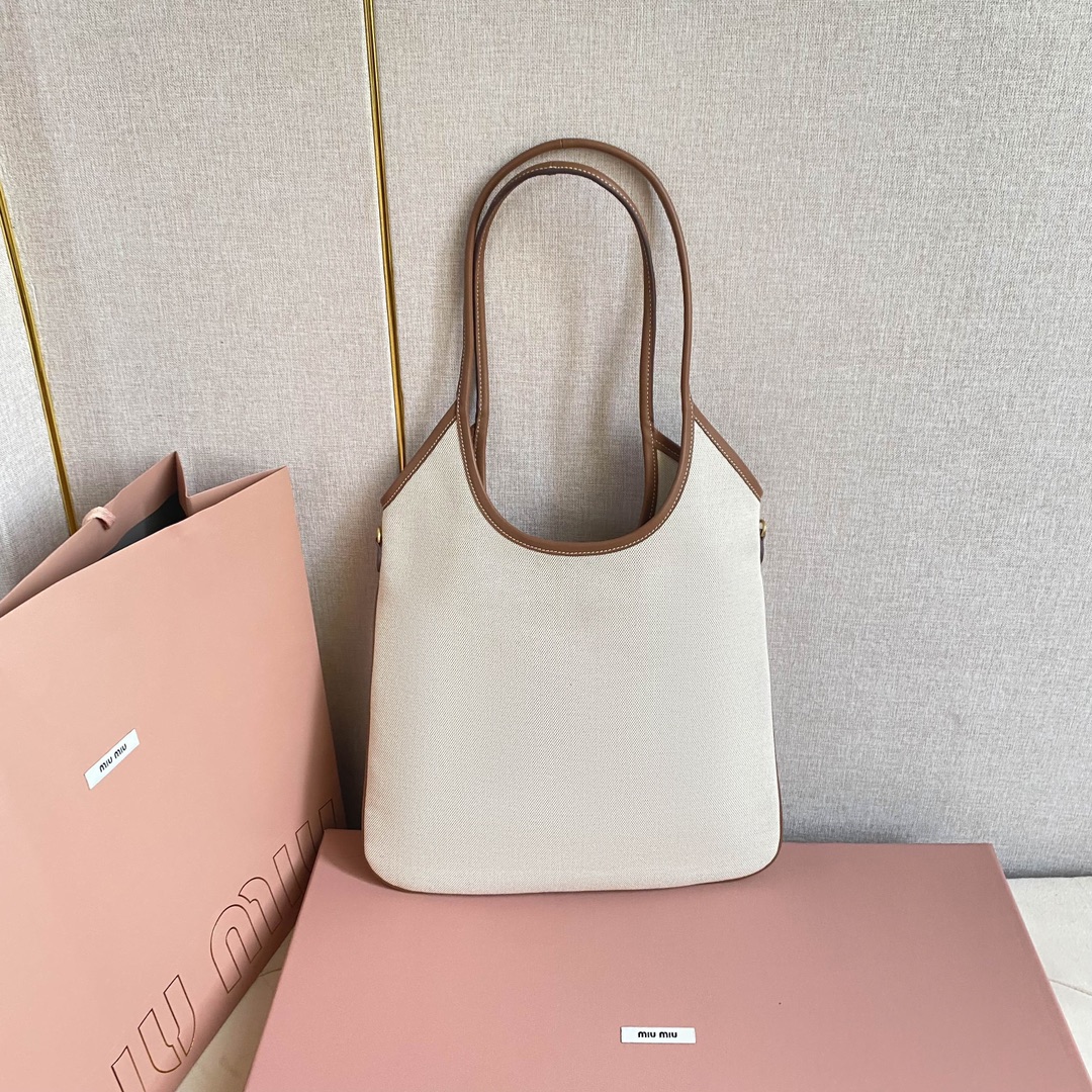 Miu家新款伊势丹限定托特包,官网主推,今年绝对爆🔥款式,顶级进口小牛皮,皮面细腻光滑柔软,质感高级,包身软而不塌,气质随性慵懒,容量超大,日常出街背它回头率百分百,手工缝制皮面Logo标志,内里全新麻布里,配拉链式口袋,尺寸35 X 40Cm,配原版全套包装