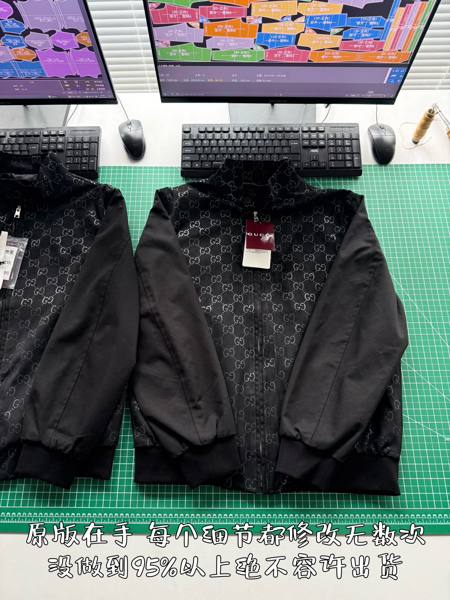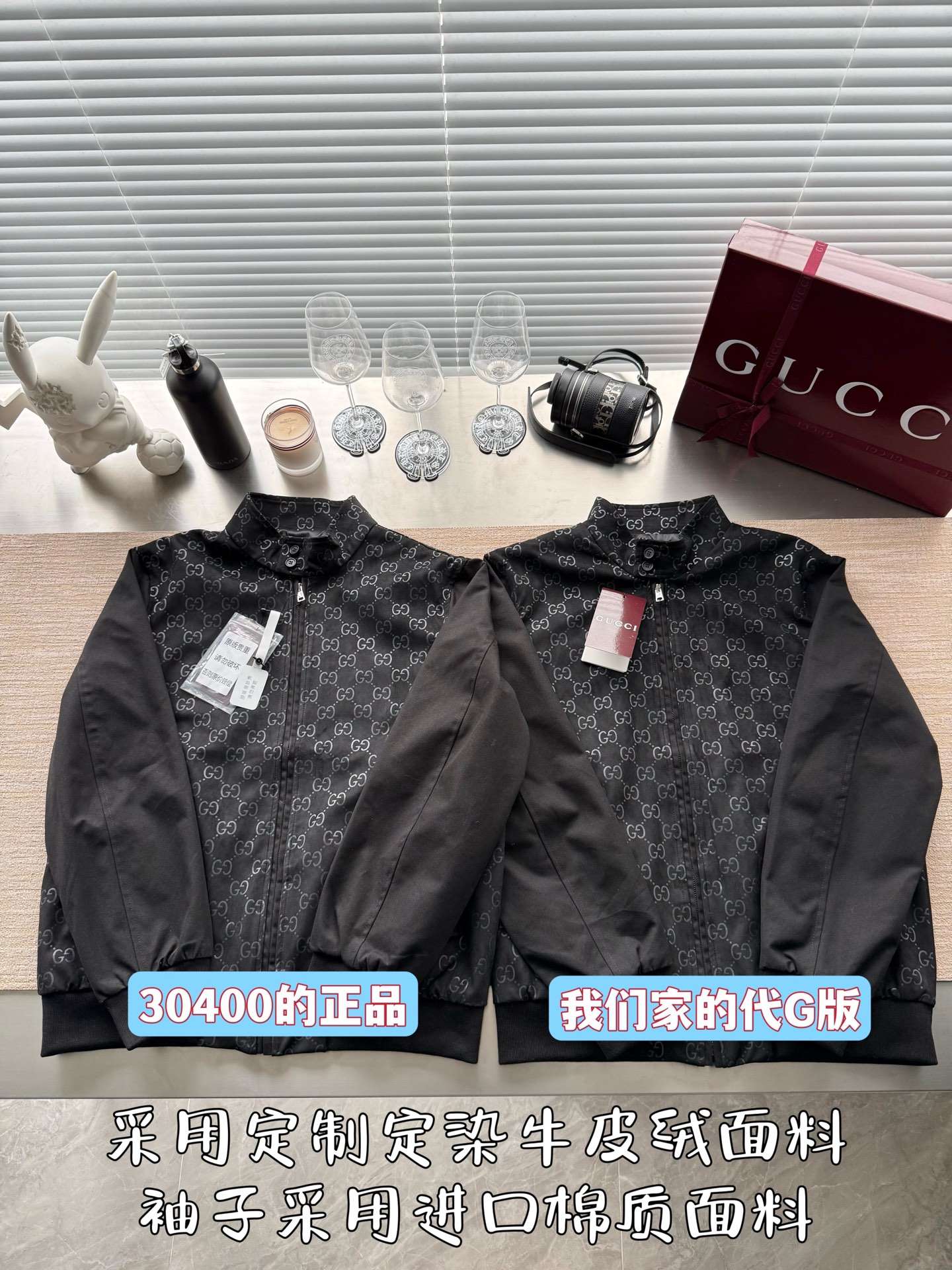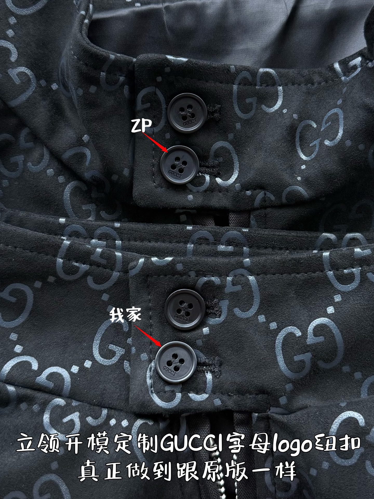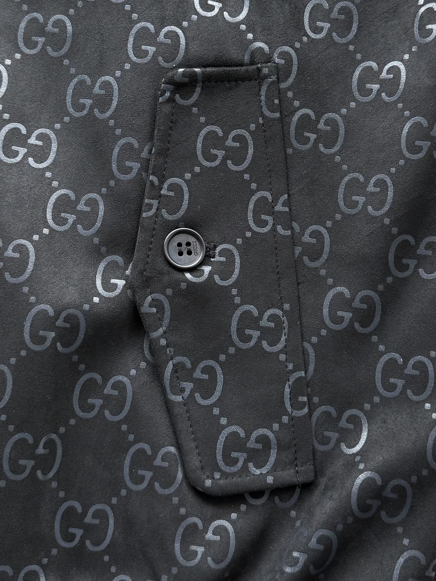 Gucci 2025 FW压花GG绒面革夹克外套‼️整件衣服30400购买Zp拆解打造,定制牛皮绒面料,前后幅饰以GG绒面提花,门襟开模定制GUCCI字母logo拉链,两边纽扣翻盖口袋,定织标志性罗纹袖口 下摆,超紧密度局部编织,真正做到1:1copy 闭眼入 码数:46 48 50 52