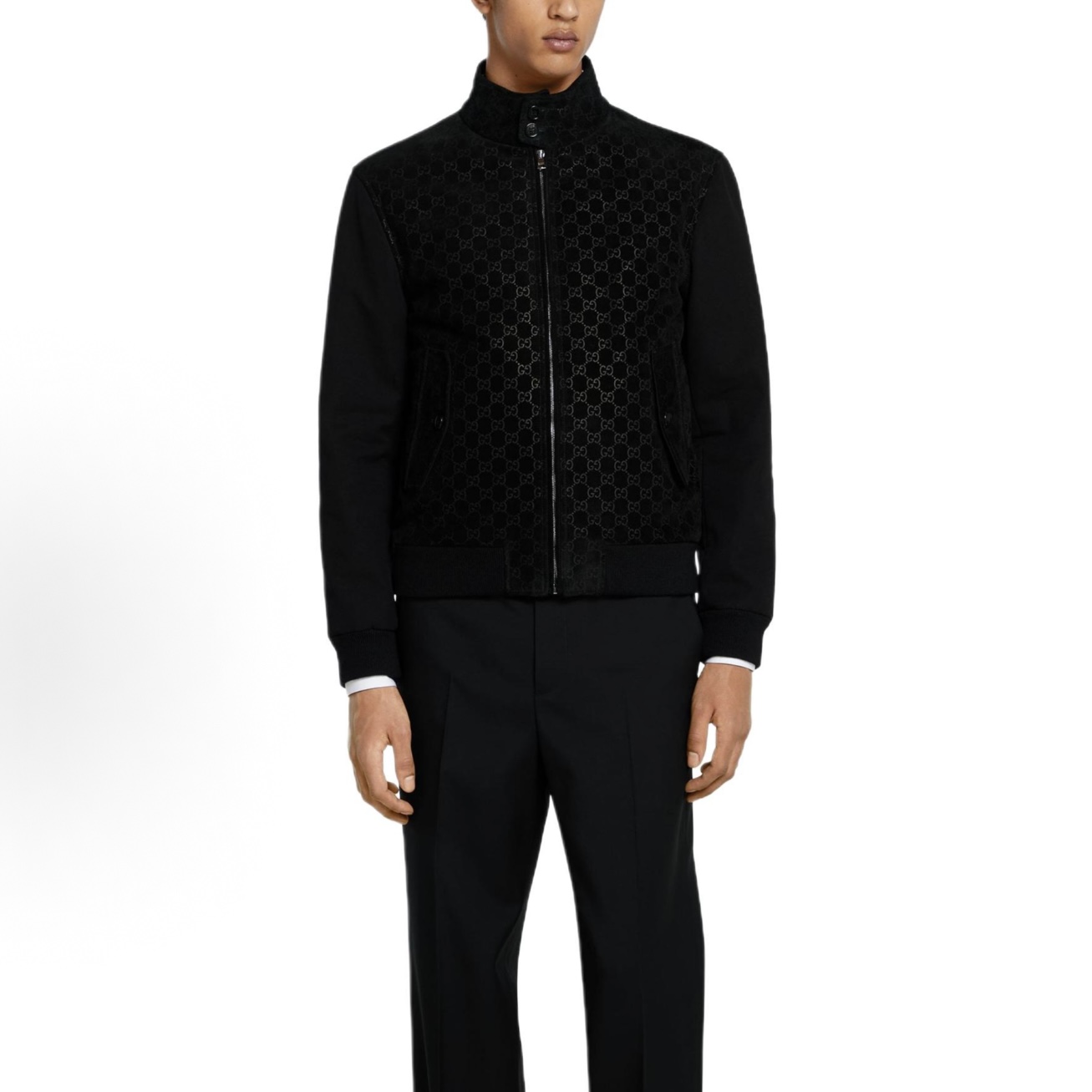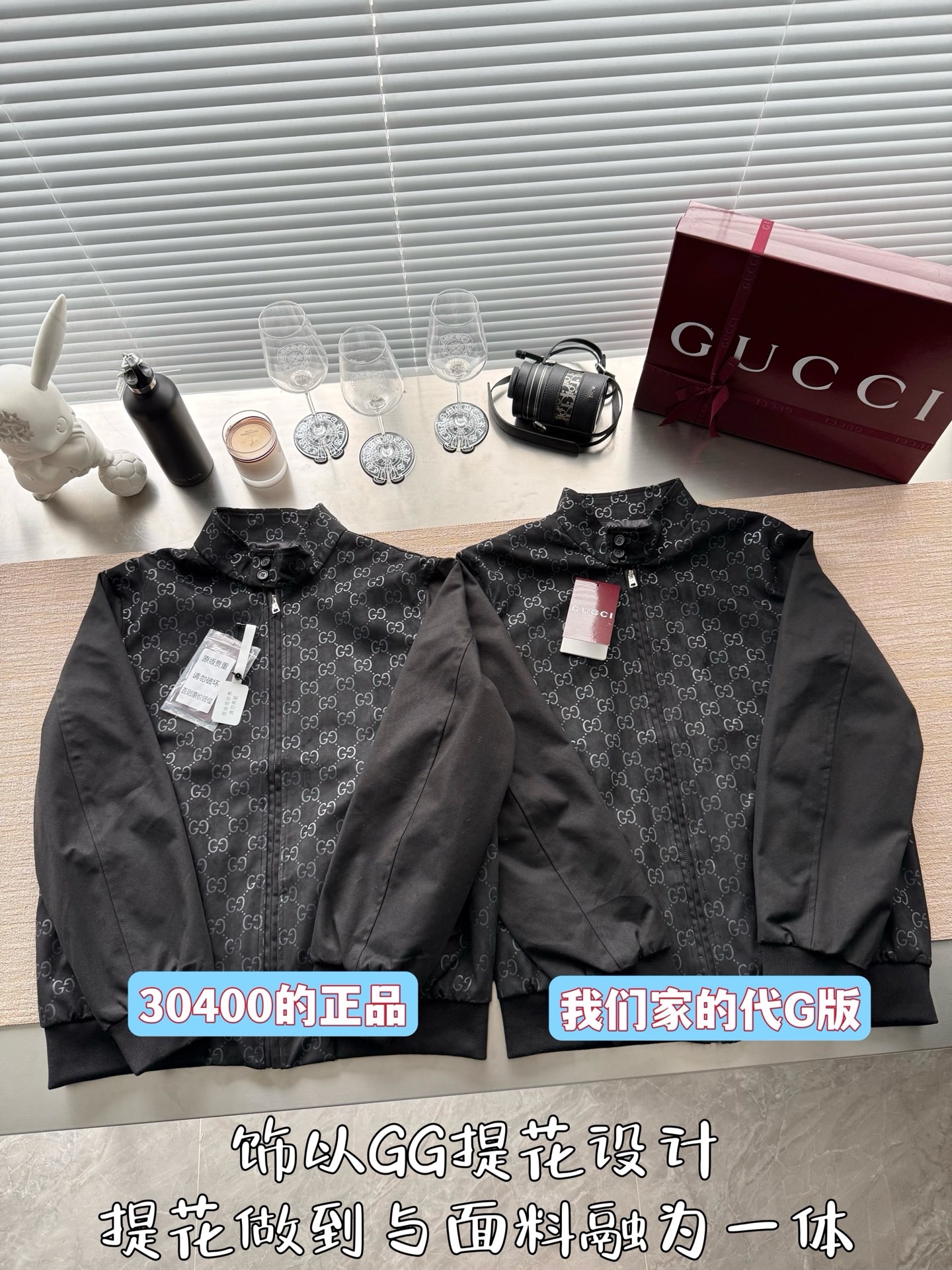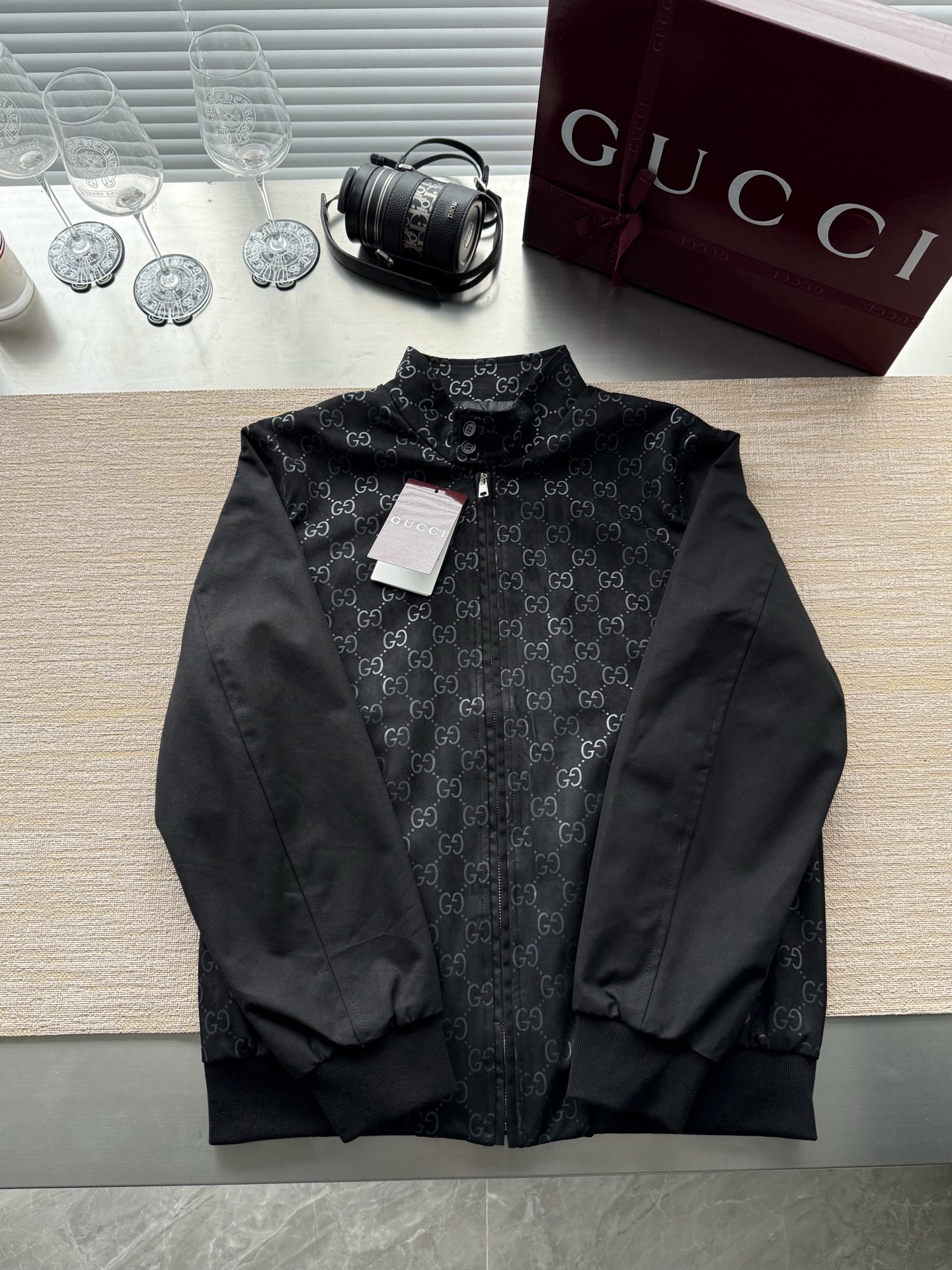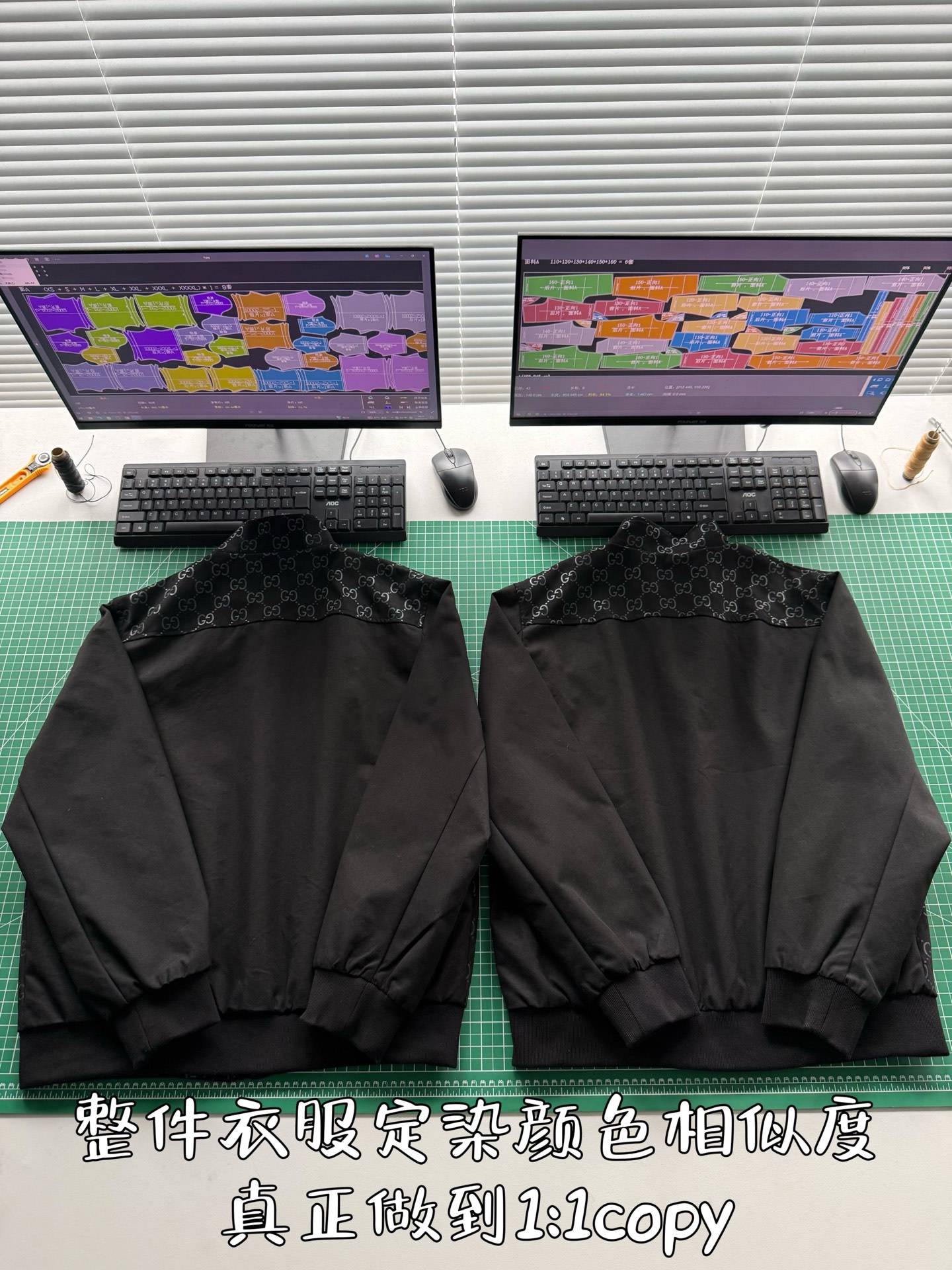 Gucci 2025 FW压花GG绒面革夹克外套‼️整件衣服30400购买Zp拆解打造,定制牛皮绒面料,前后幅饰以GG绒面提花,门襟开模定制GUCCI字母logo拉链,两边纽扣翻盖口袋,定织标志性罗纹袖口 下摆,超紧密度局部编织,真正做到1:1copy 闭眼入 码数:46 48 50 52