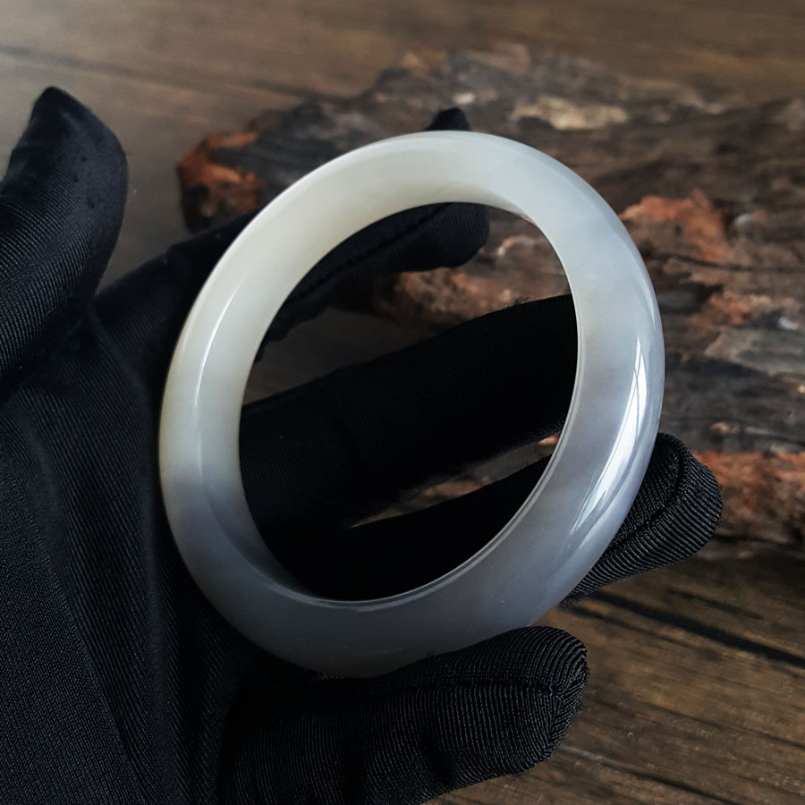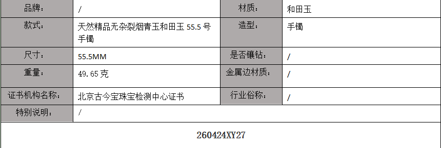 【天然正品】天然精品无杂裂烟青玉和田玉55.5号手镯55.5MM 260424XY27+